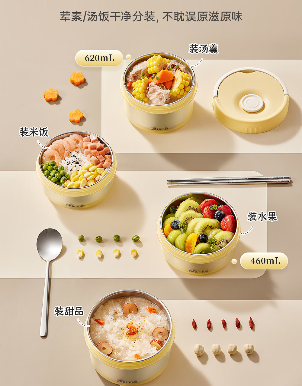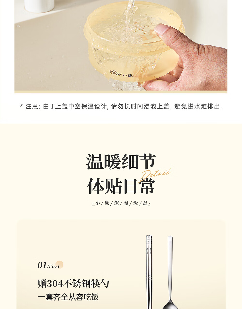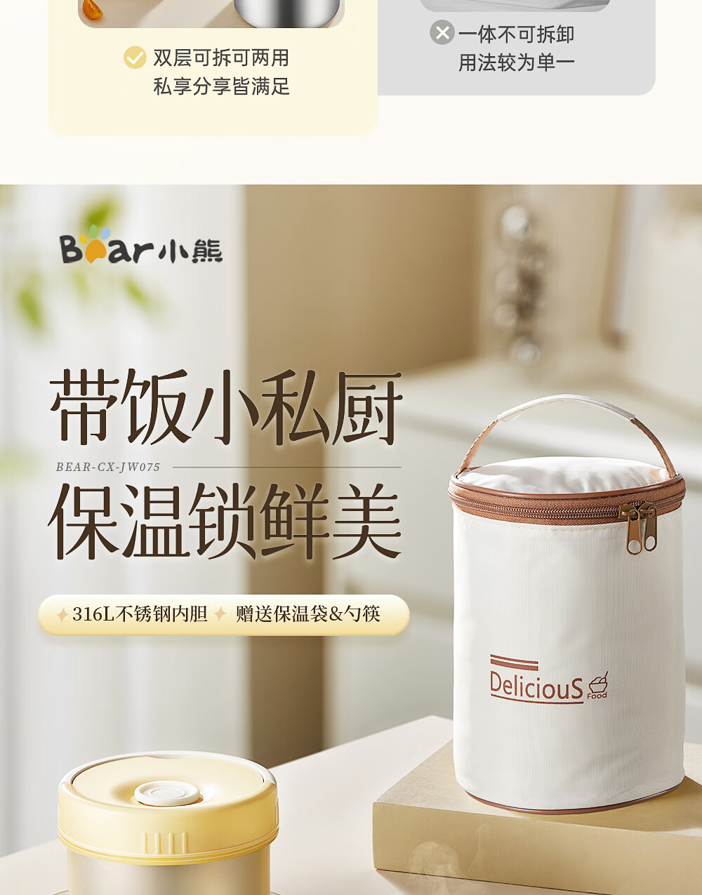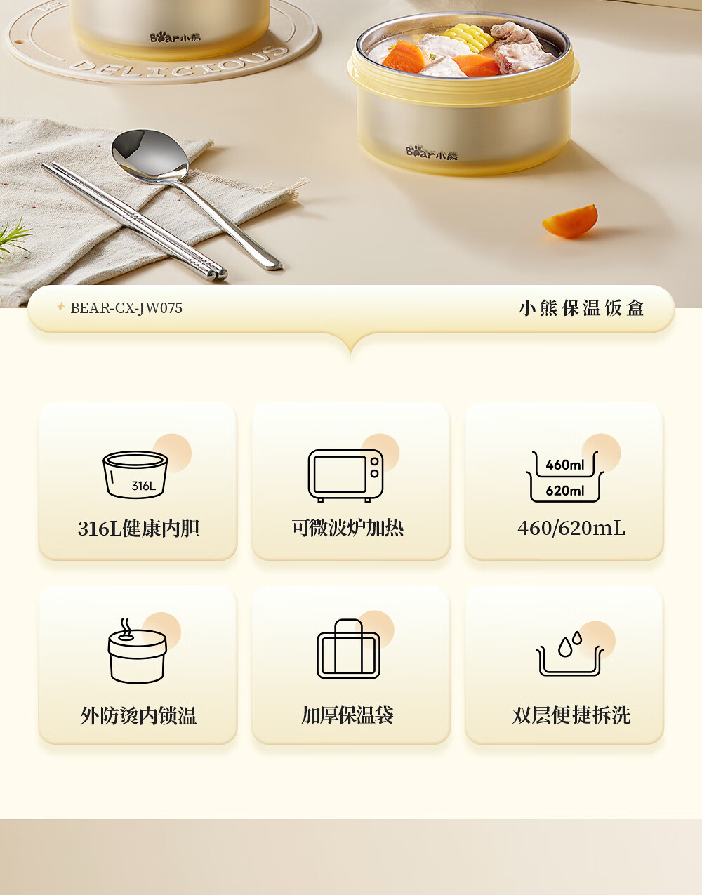 小熊(Bear)保温饭盒316不锈钢上班族可微波炉保温桶学生便当盒CX-JW075-P04
