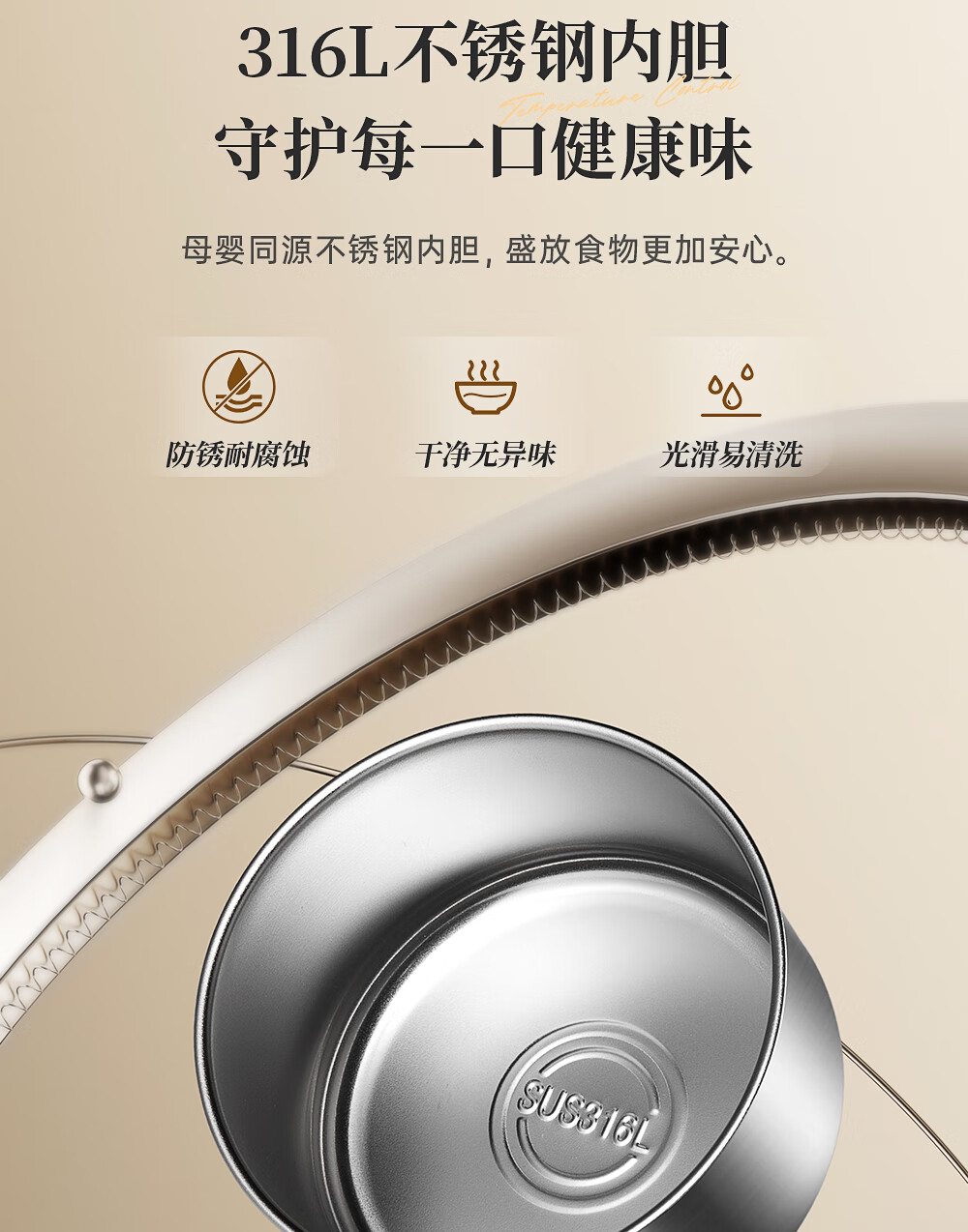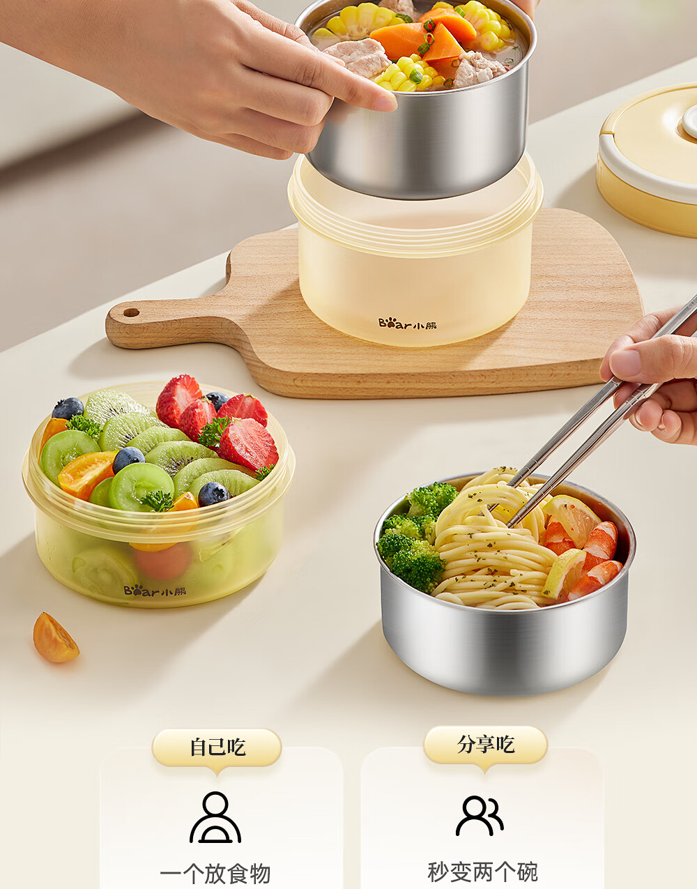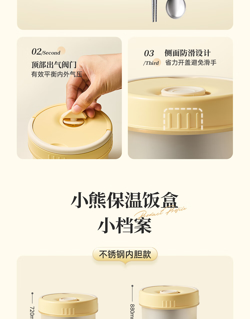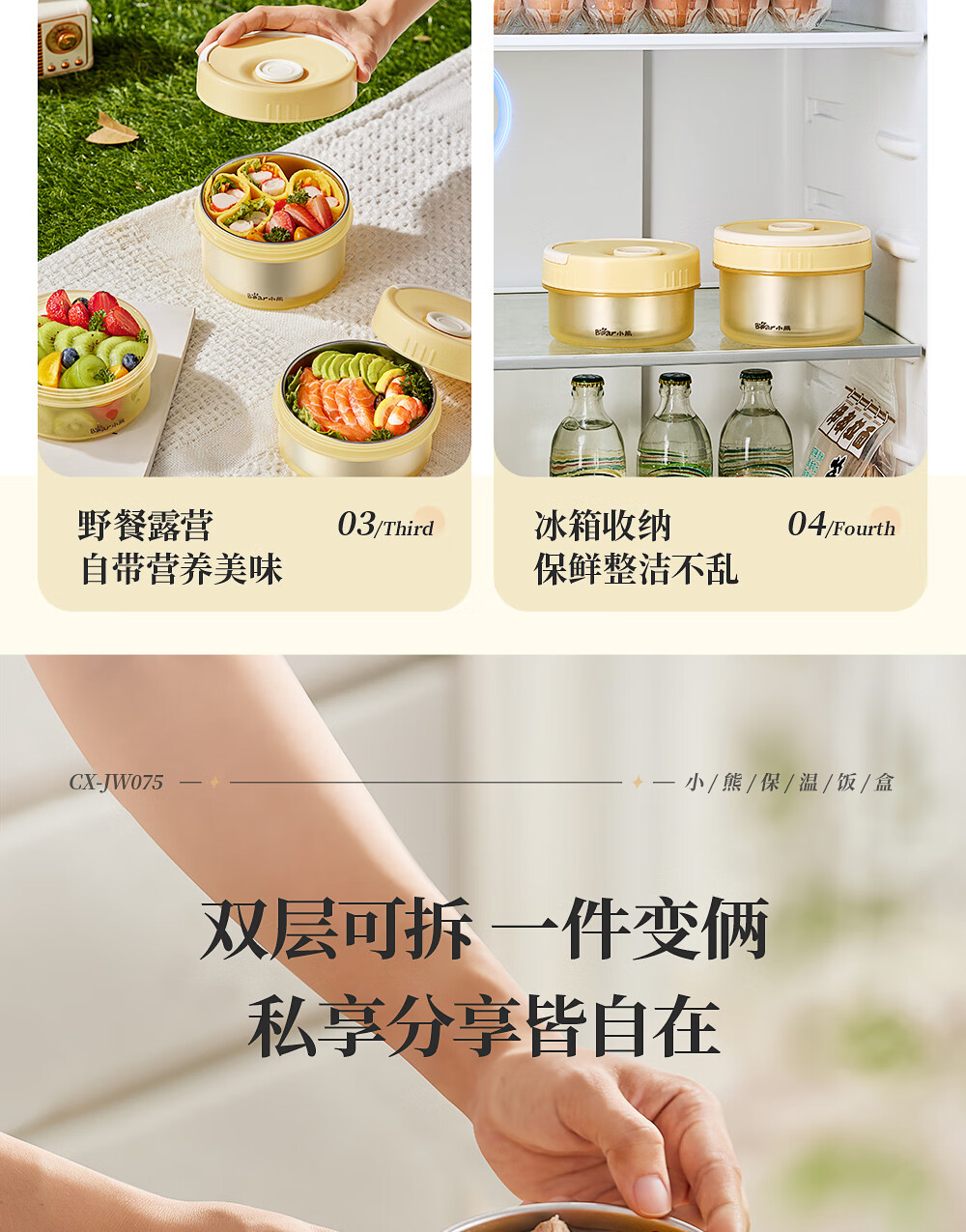 小熊(Bear)保温饭盒316不锈钢上班族可微波炉保温桶学生便当盒CX-JW075-P04