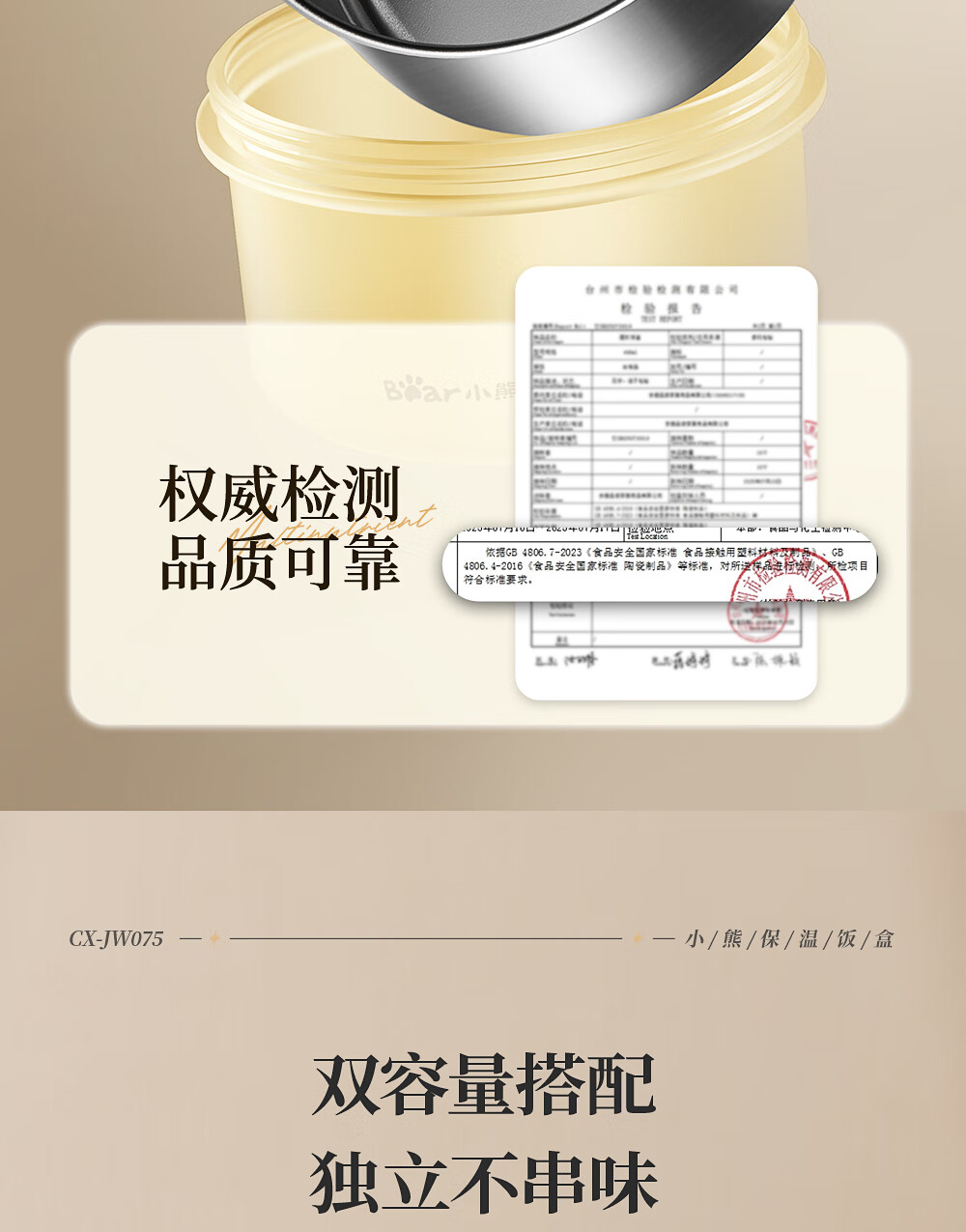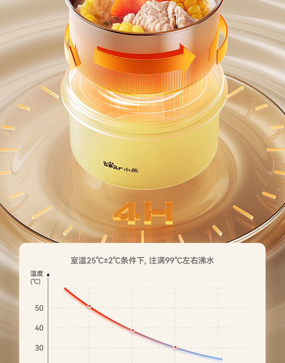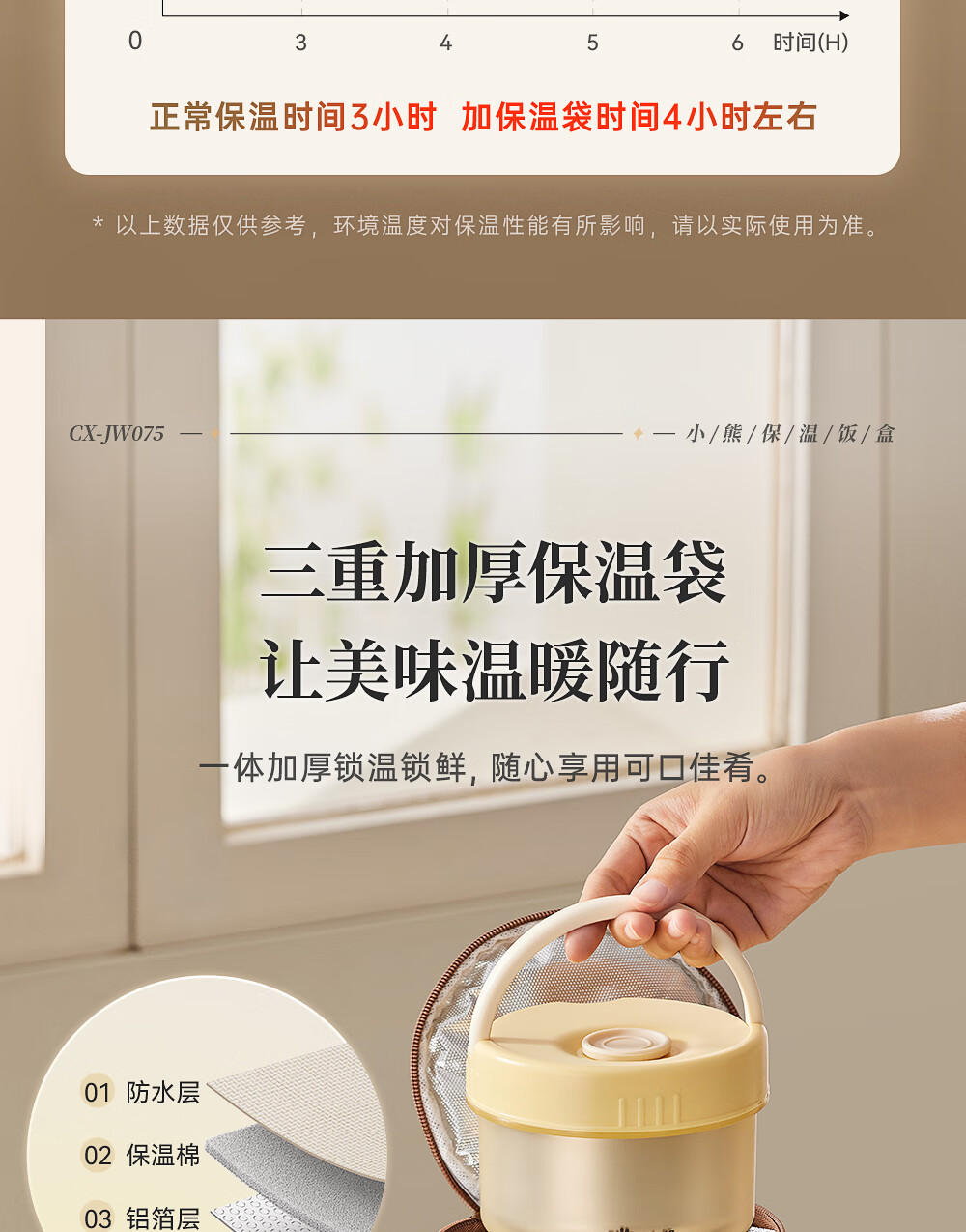小熊(Bear)保温饭盒陶瓷内胆上班族可微波炉保温桶学生便当盒CX-JW075-P03
