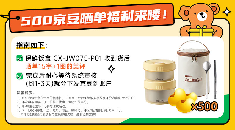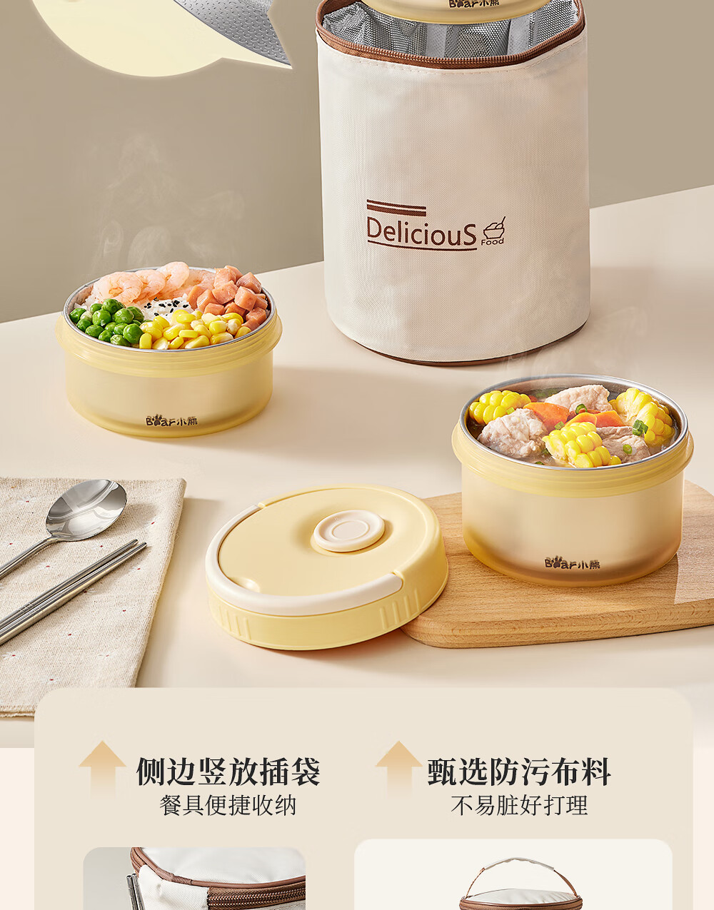小熊(Bear)保温饭盒316不锈钢上班族保温桶学生便当盒带保温袋 CX-JW075-P01