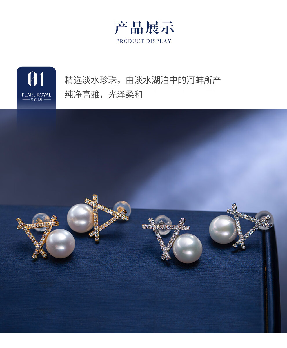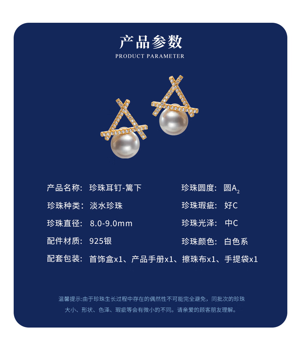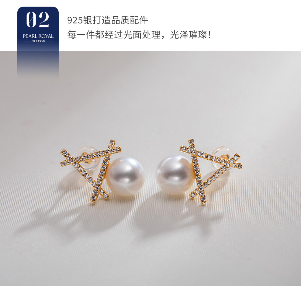 南珠宫篱下珍珠耳环925银淡水珍珠耳钉耳饰轻奢高级感礼物送礼女 金色款 8.0-9.0mm