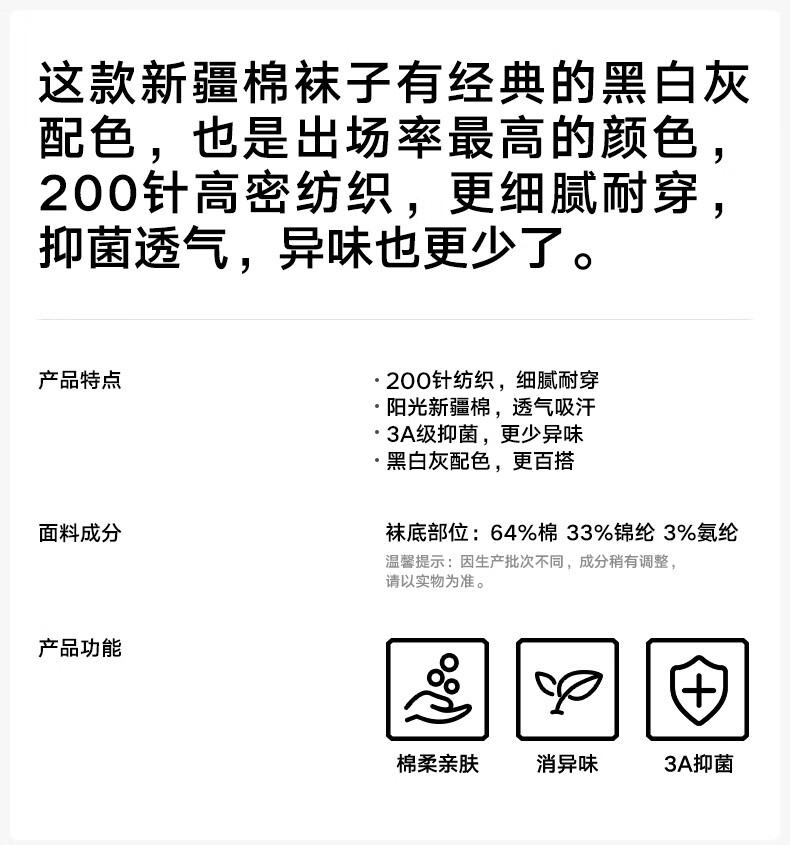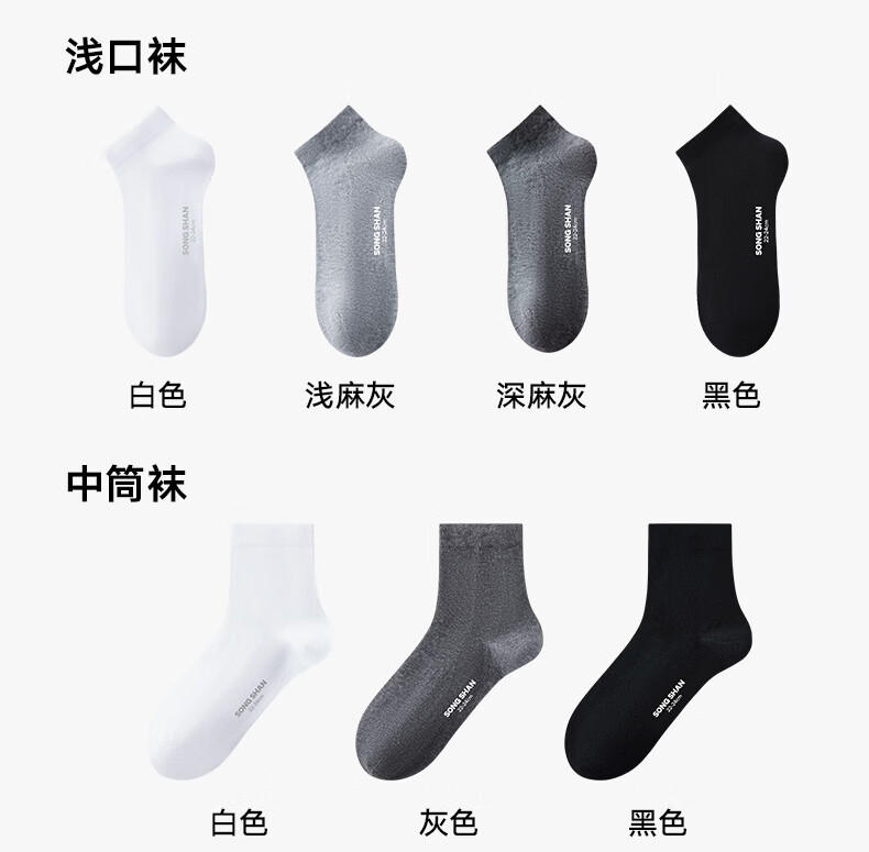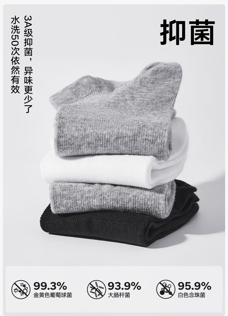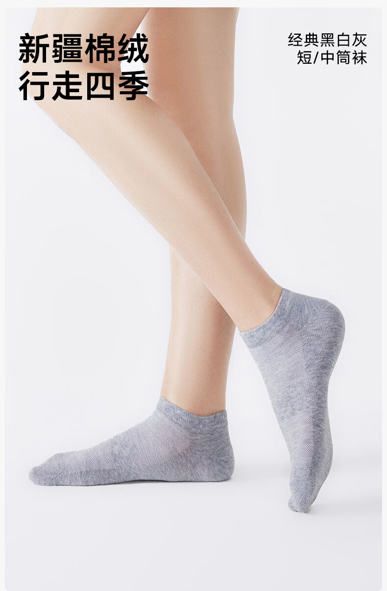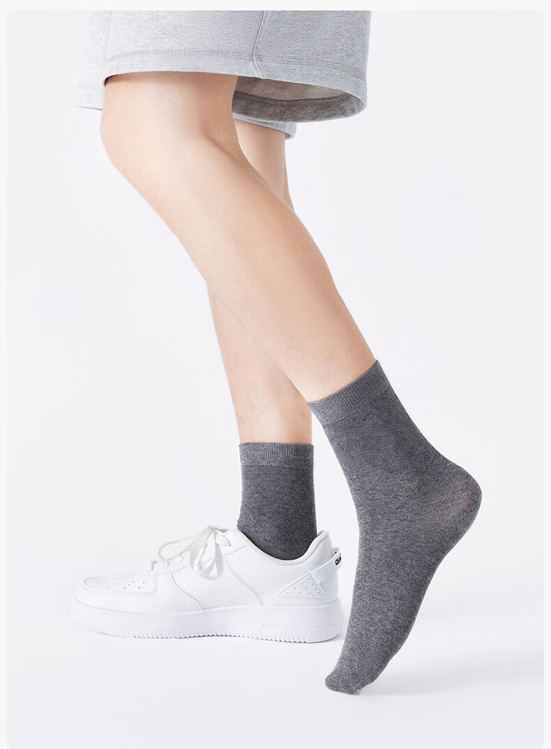 松山棉店新疆棉抑菌消臭男女中筒袜子透气运动黑白灰情侣吸汗低筒短袜5双 【男中筒】3黑+2灰 5双 均码 男袜(40-45码)