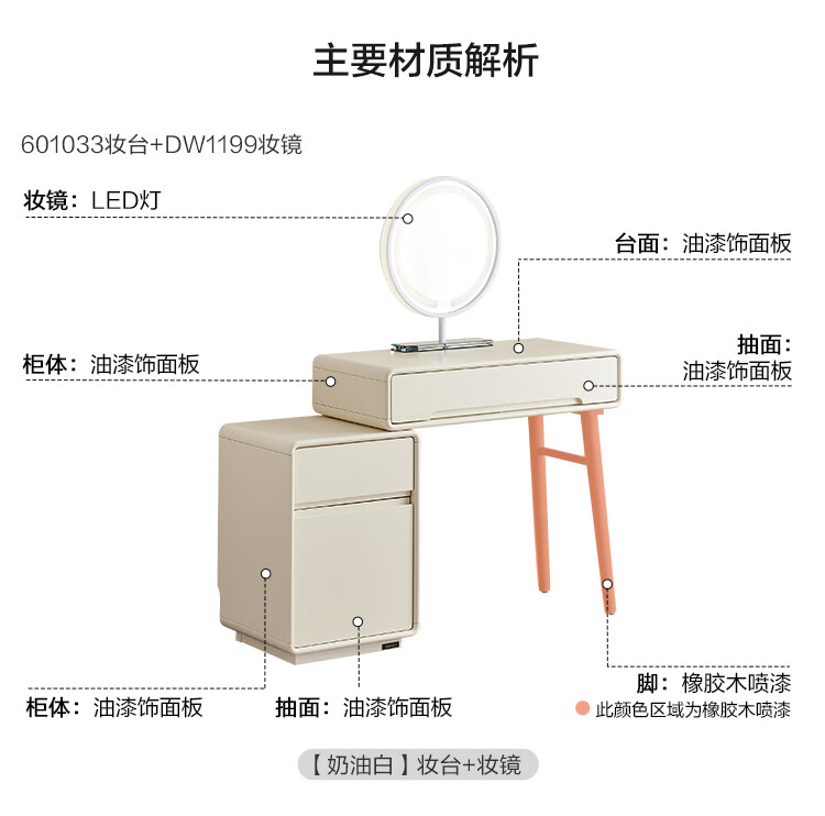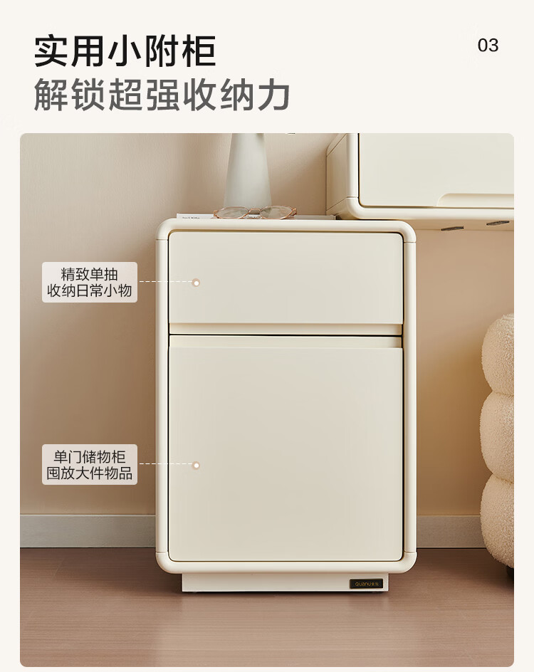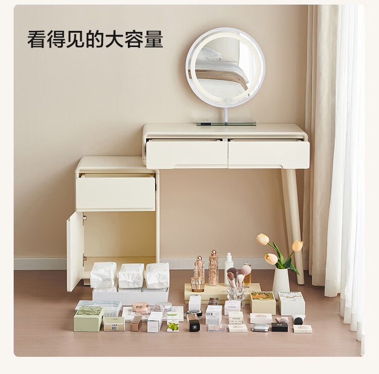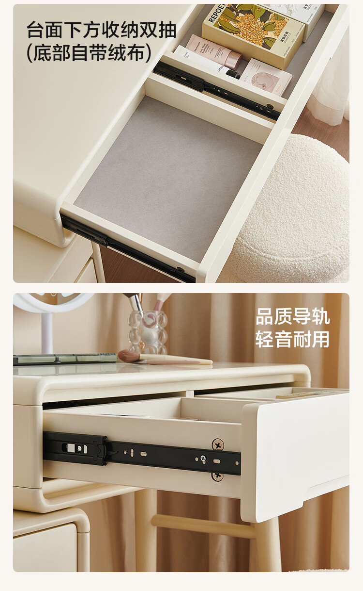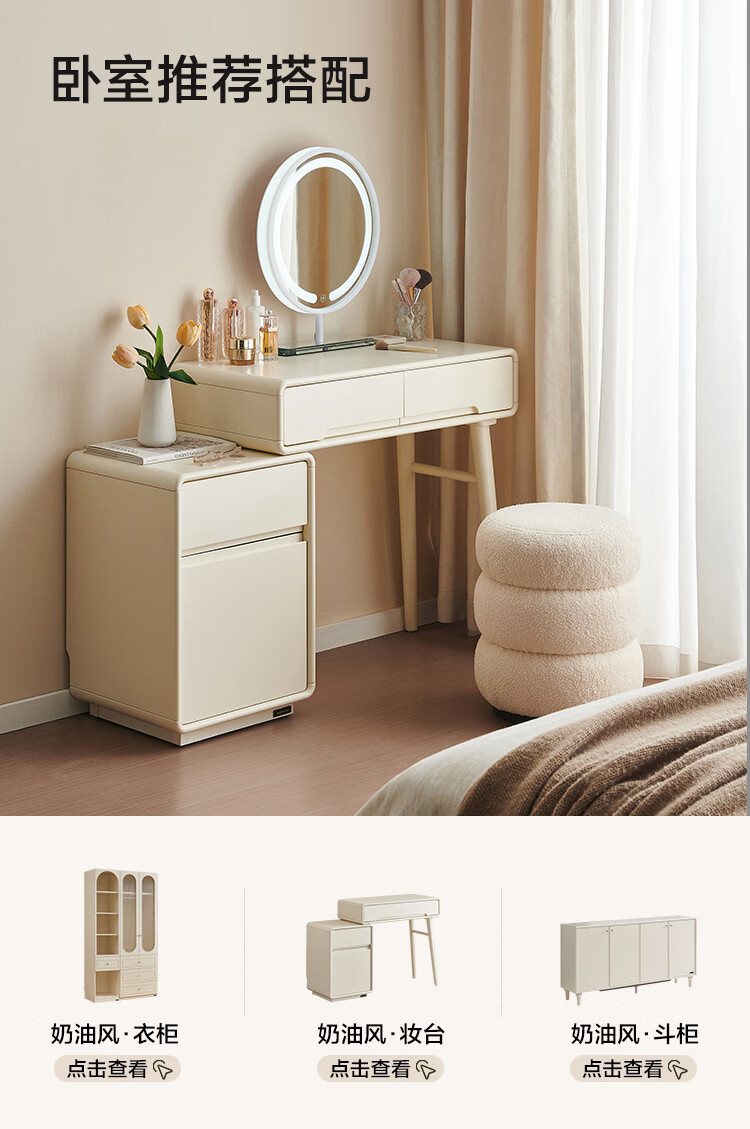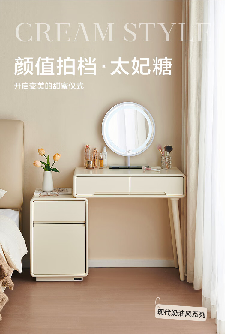 全友家居奶油风斗柜化妆桌一体家用卧室收纳储物柜化妆台带妆镜组合 【奶油白】妆台(不含妆镜、妆凳)