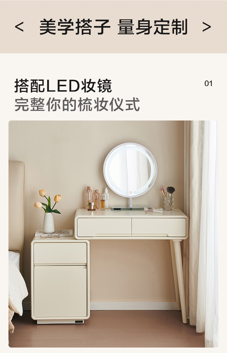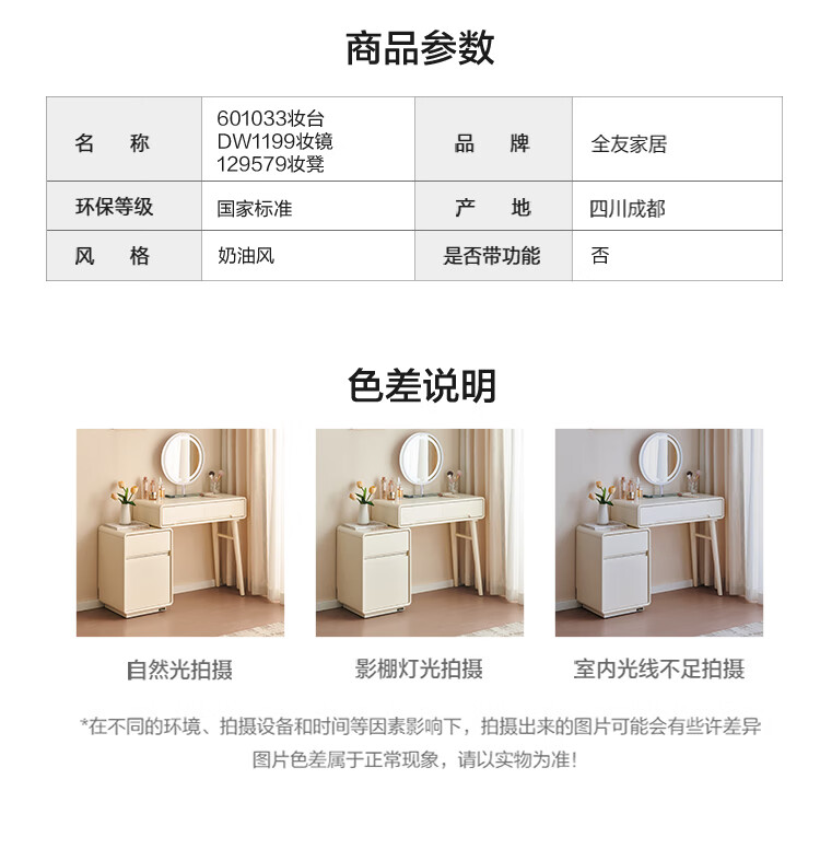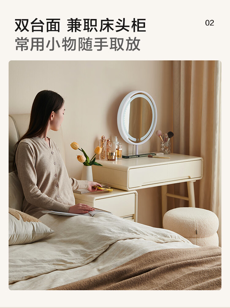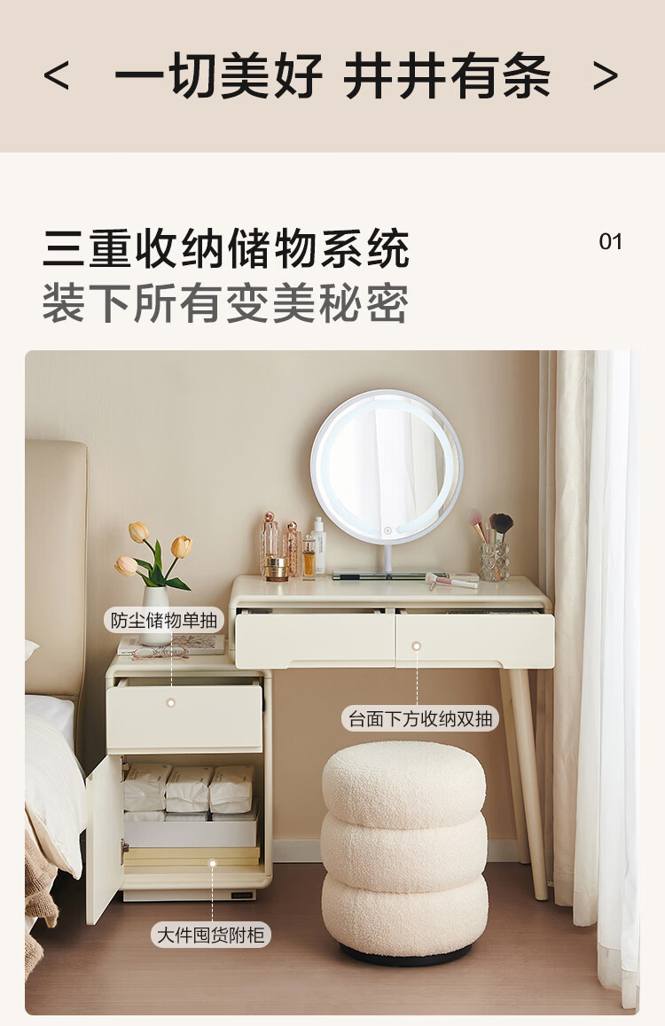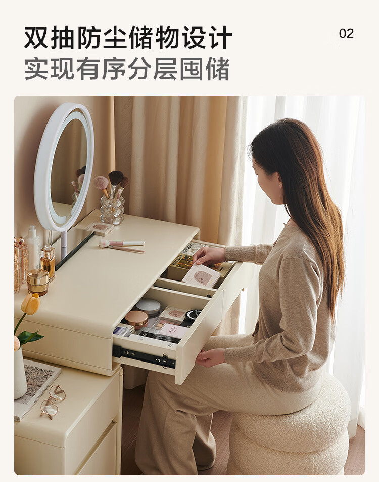 全友家居奶油风斗柜化妆桌一体家用卧室收纳储物柜化妆台带妆镜组合 【奶油白】妆台(不含妆镜、妆凳)