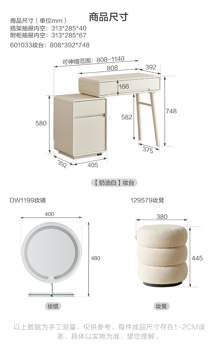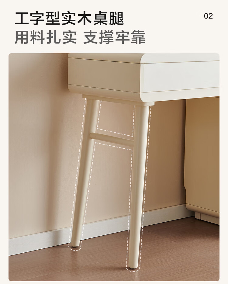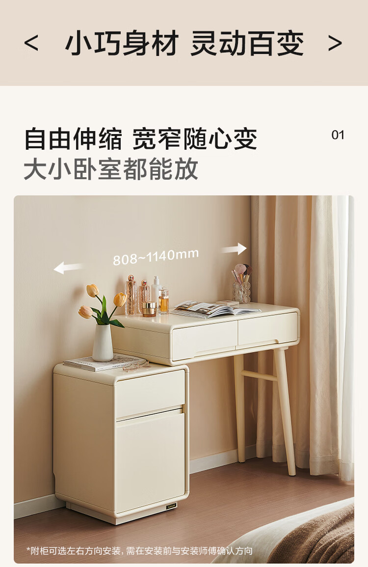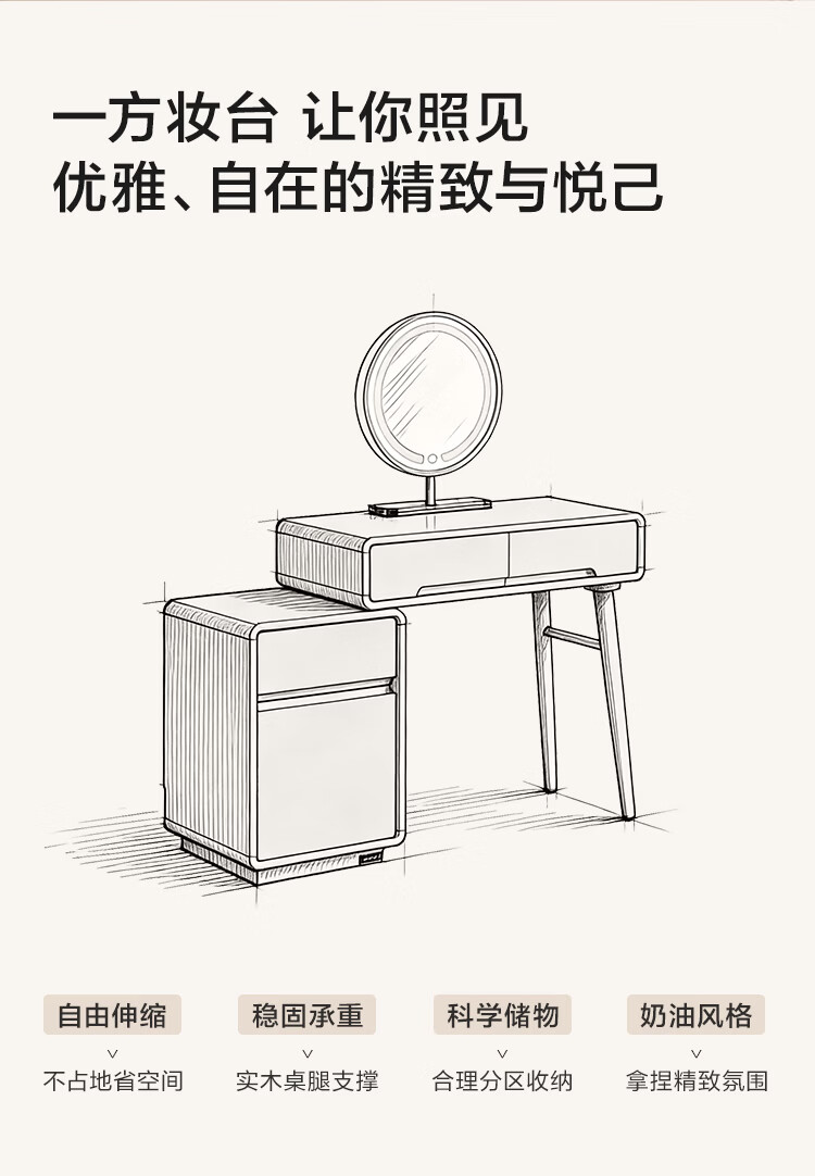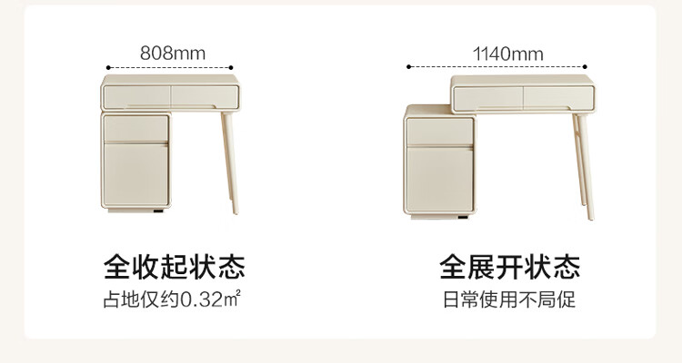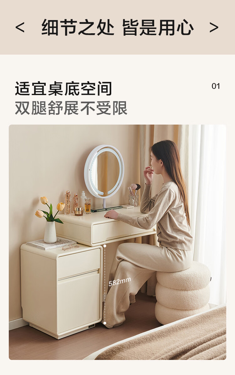 全友家居奶油风斗柜化妆桌一体家用卧室收纳储物柜化妆台带妆镜组合 【奶油白】妆台(不含妆镜、妆凳)