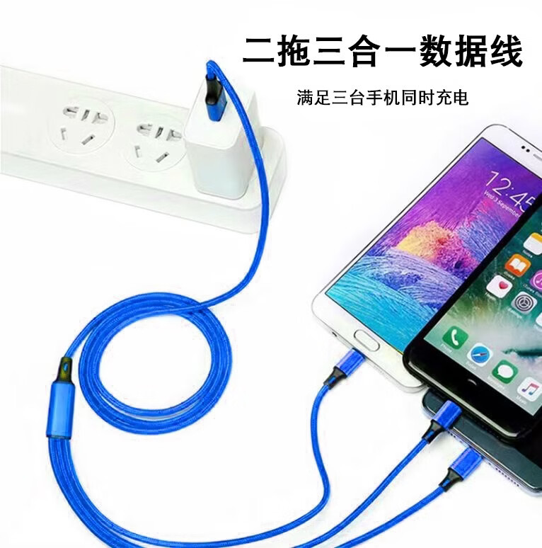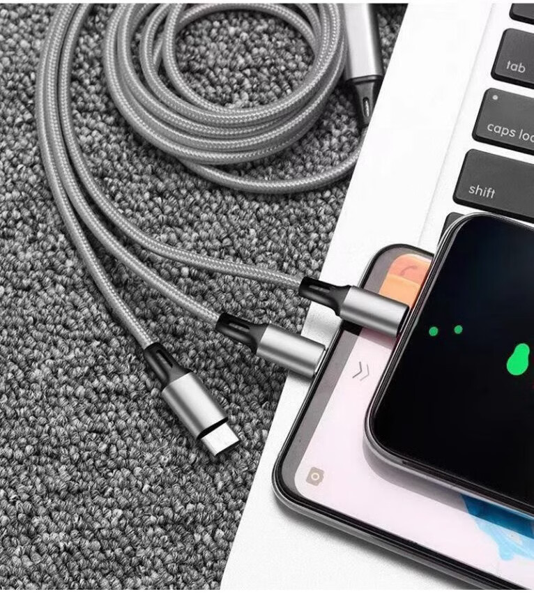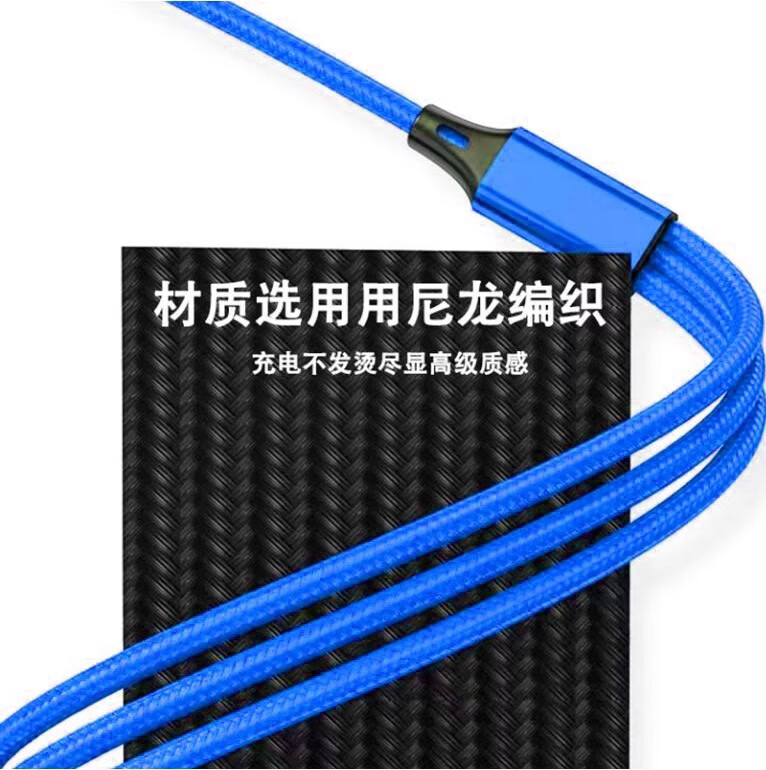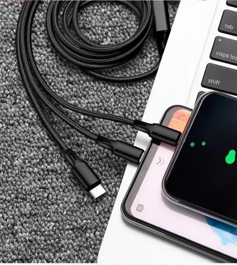 车载一拖三便携数据线适用苹果iPhone安卓typec手机车载多功能线 黑色1.2M【编制三合一数据线】