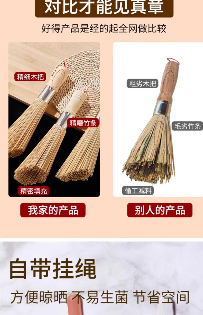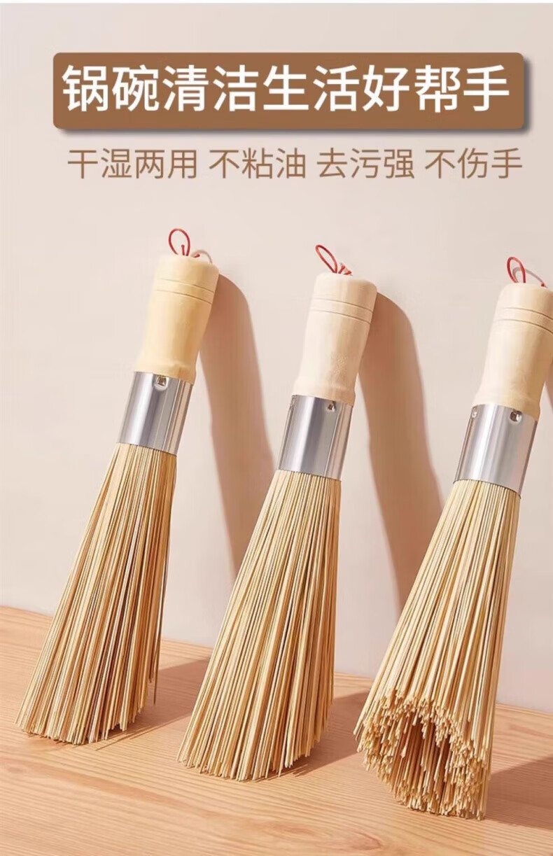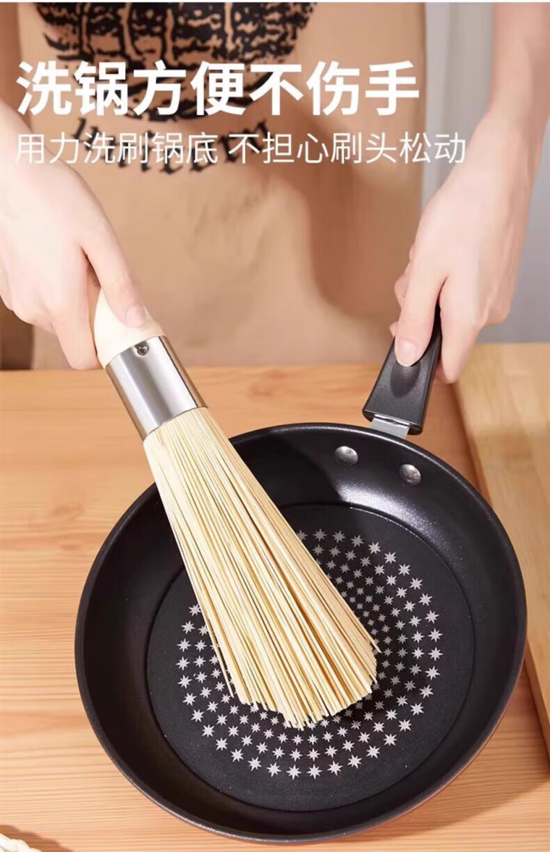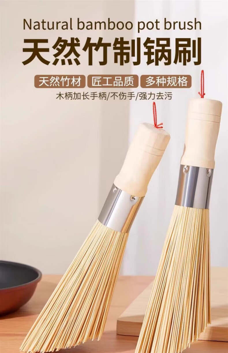 AILUKI日本竹锅刷斜口粗刷天然竹刷锅神器洗锅刷碗老式刷子家用手工木把 【木柄竹刷】斜口-2支装