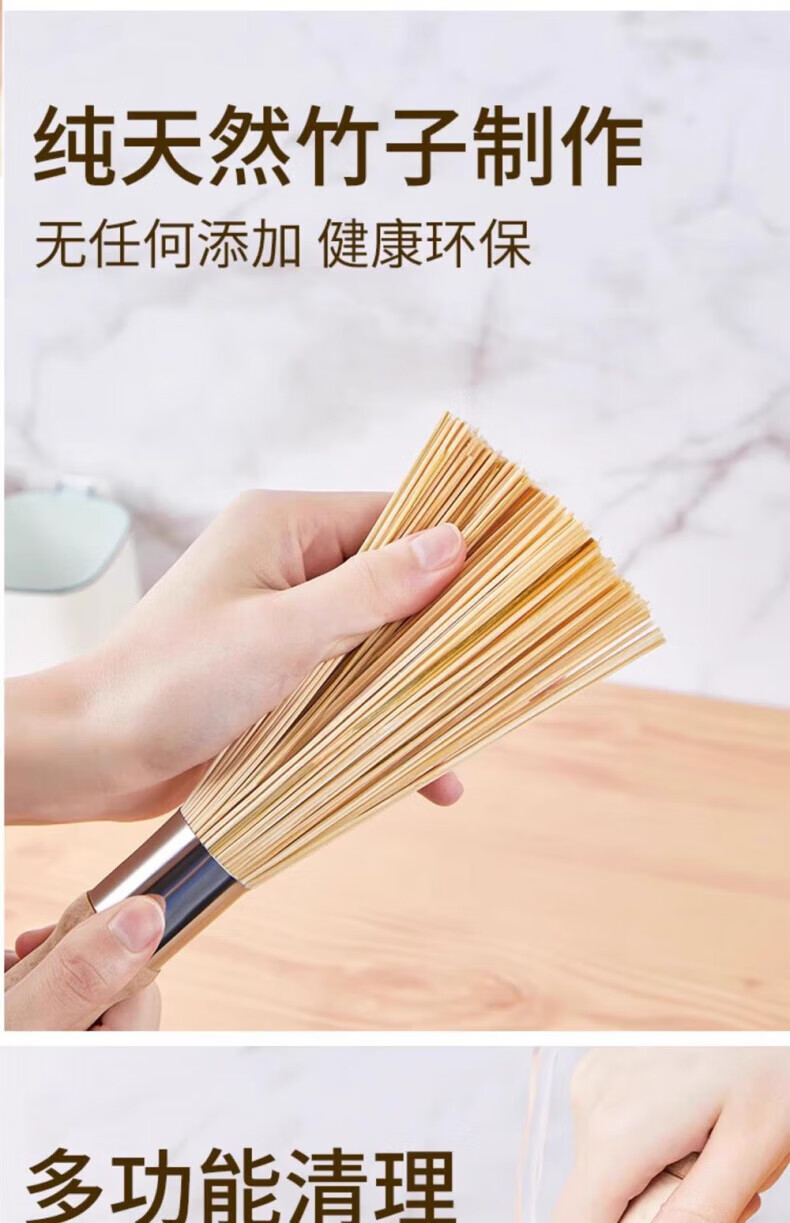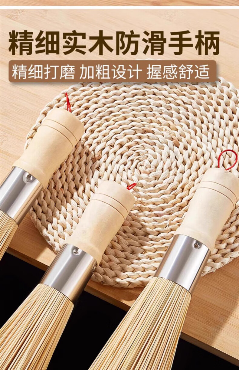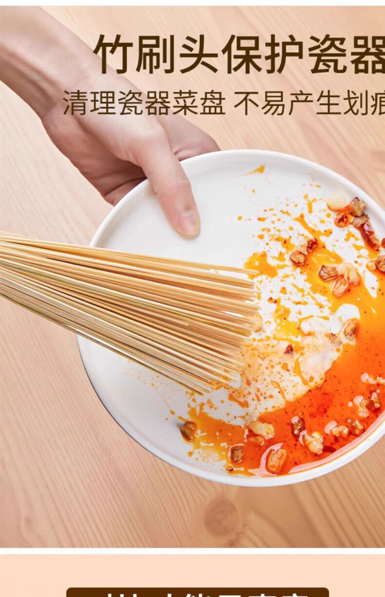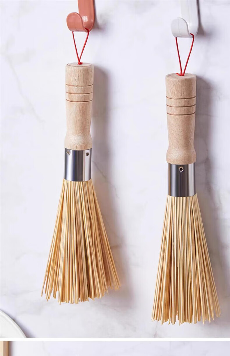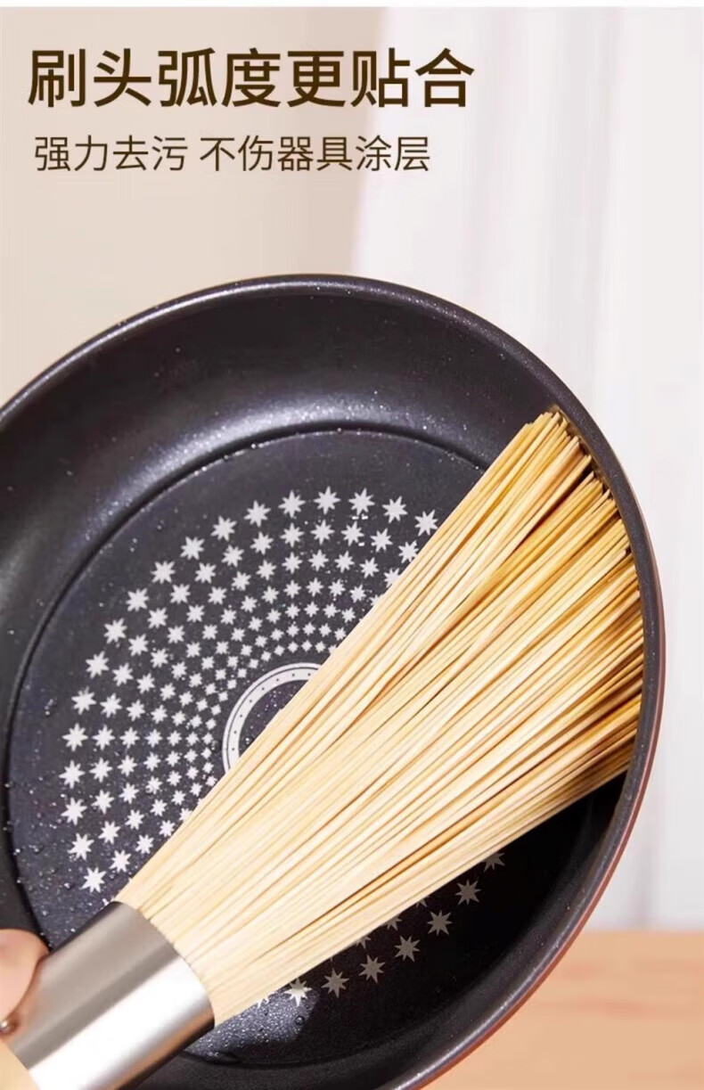 AILUKI日本竹锅刷斜口粗刷天然竹刷锅神器洗锅刷碗老式刷子家用手工木把 【木柄竹刷】斜口-2支装