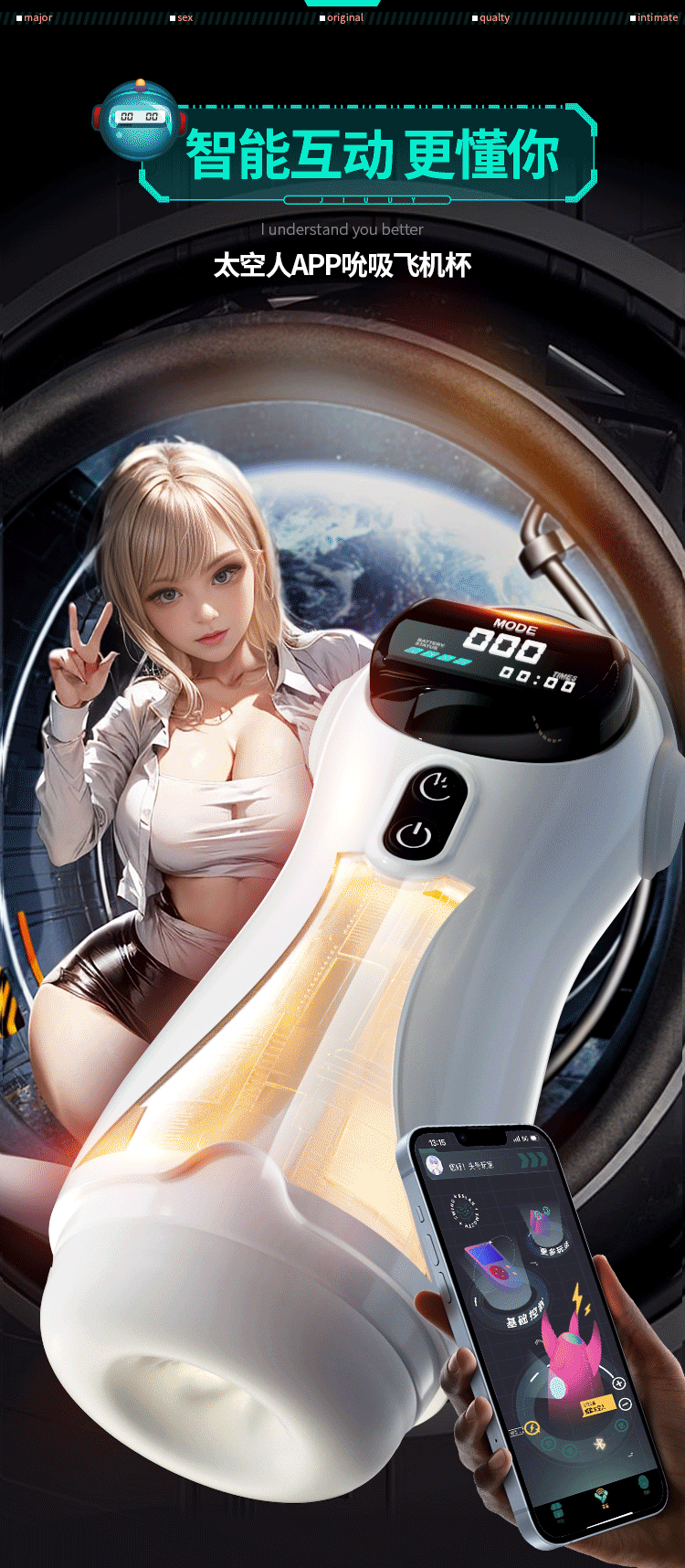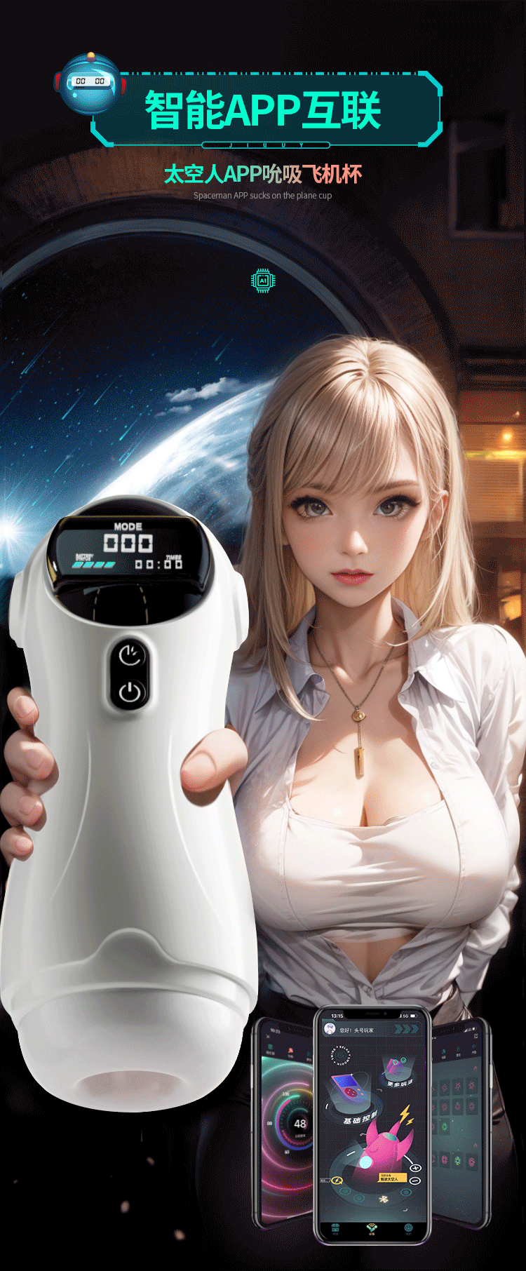 安御爽太空人全自动吮吸飞机杯男性训练智能发音成人自慰器斐济杯 吮吸震动发音不带液晶屏