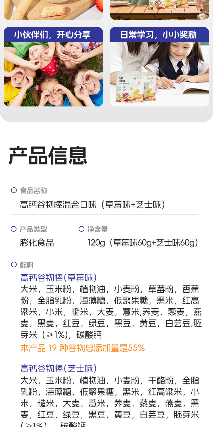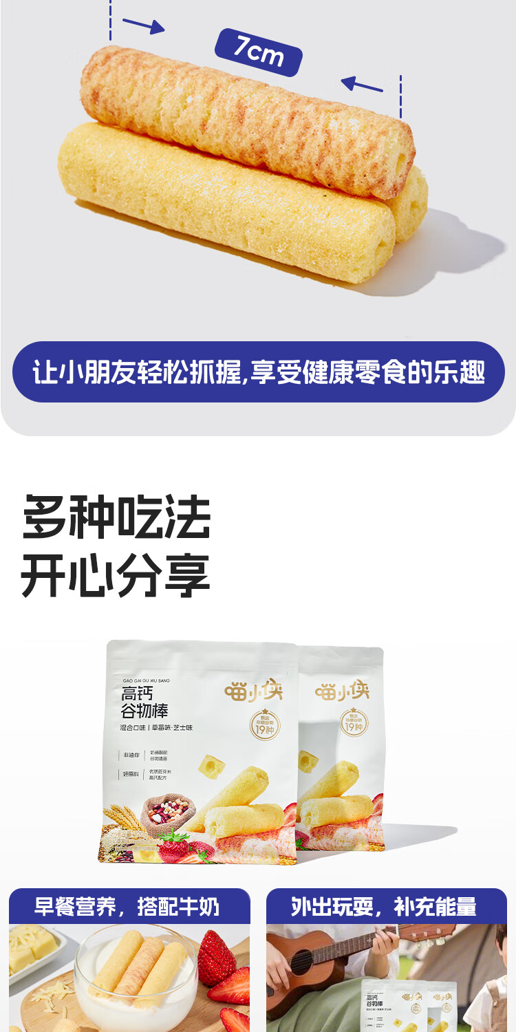 喵小侠鳕鱼泡芙手指泡芙胡萝卜虾芙条高钙谷物棒谷物球巧巧酥儿童零食 高钙谷物棒(混合口味)/120g