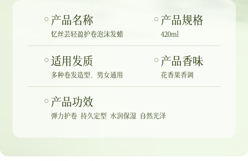 忆丝芸泡沫发蜡卷发护卷保湿定型发胶泡泡发蜡湿发造型摩丝男女士420ML 泡沫发蜡420ml