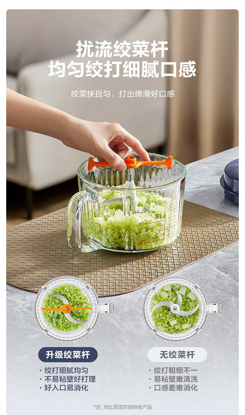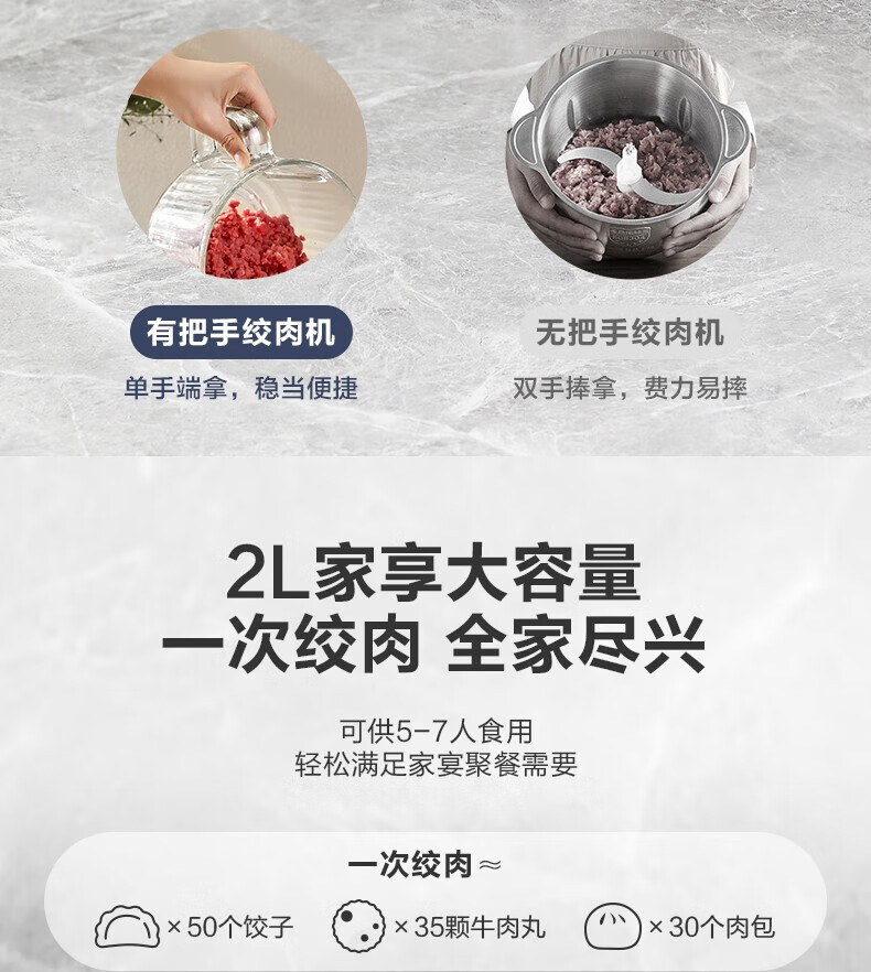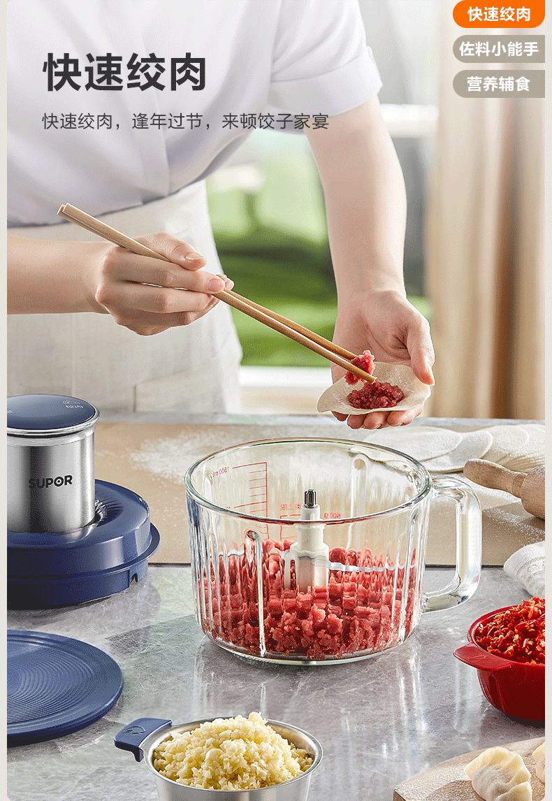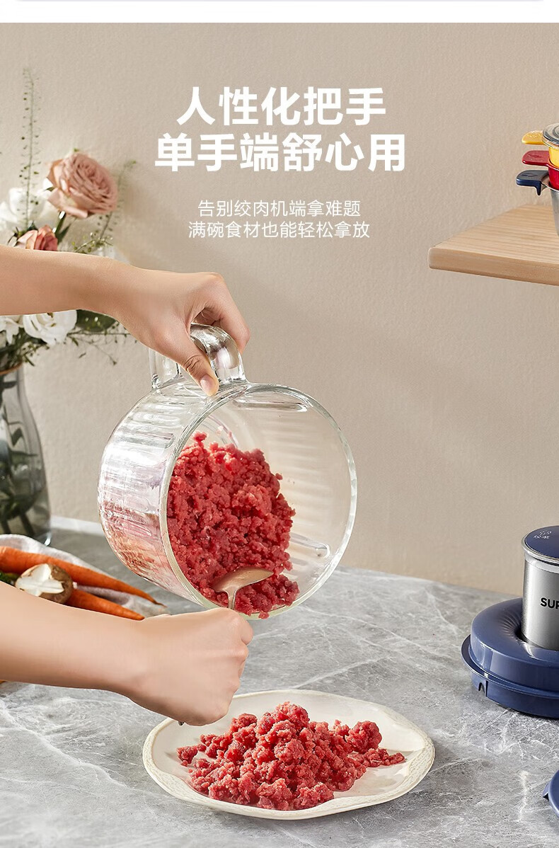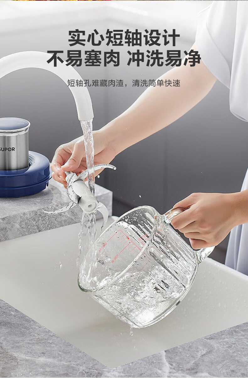 苏泊尔(SUPOR)绞肉机 搅拌机大容量料理机辅食机多功能绞馅机碎肉机家用打肉机蒜泥捣碎机2升带把手专碗专用 钴蓝色 2L