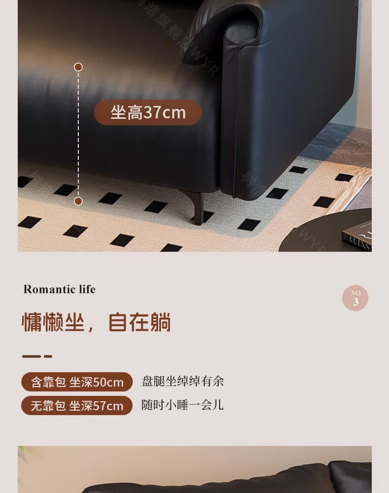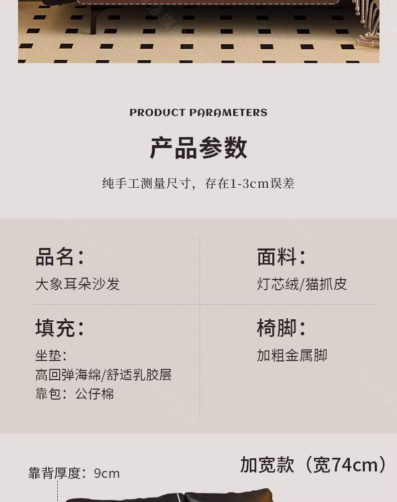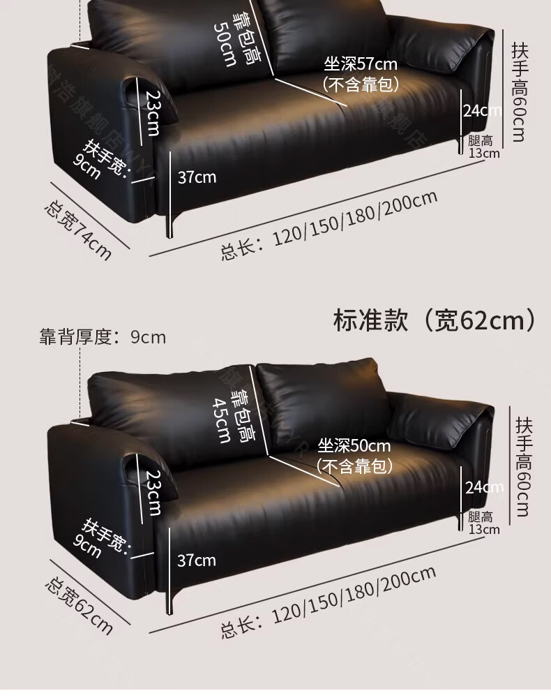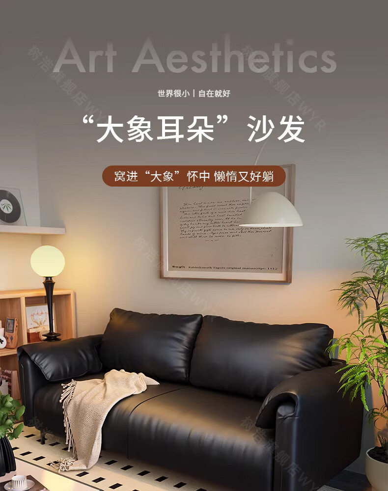 树浩小户型客厅沙发出租房布艺沙发卧室双三人位大象耳朵直排懒人沙发 加宽款【海绵层】经典黑-猫抓皮 小三人位180CM