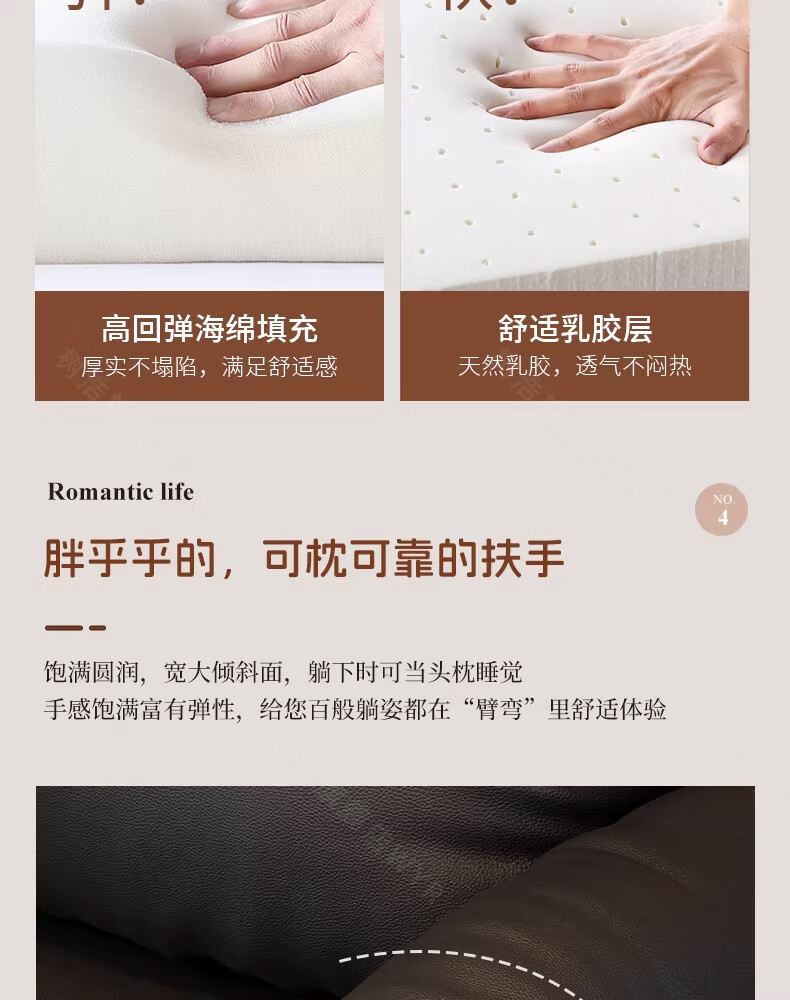 全友家居奶油风茉伊真皮床轻奢高级感2026年新款头层牛皮软包靠背床 【猫抓皮 | 米白 | 高脚】 1.2米x2米 床+床头柜*2+床垫