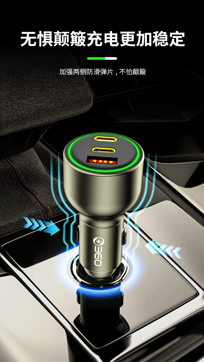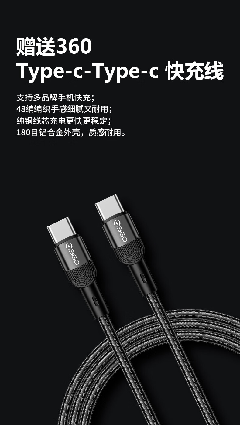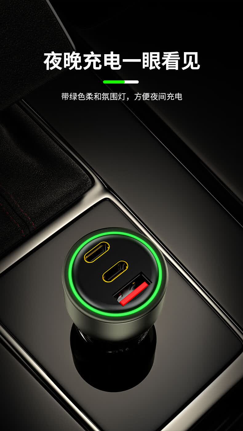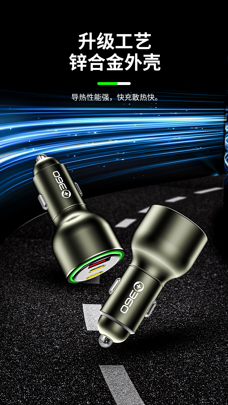 360车载充电器数据线套装1A2C PD100W+30W双路超级快充HC-P67 点烟器充电头一拖三转换器适用苹果华为