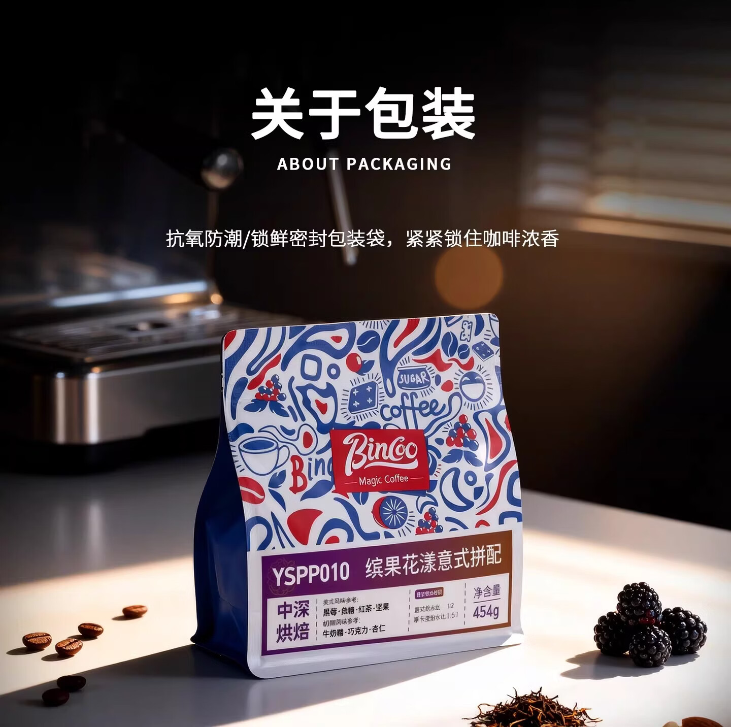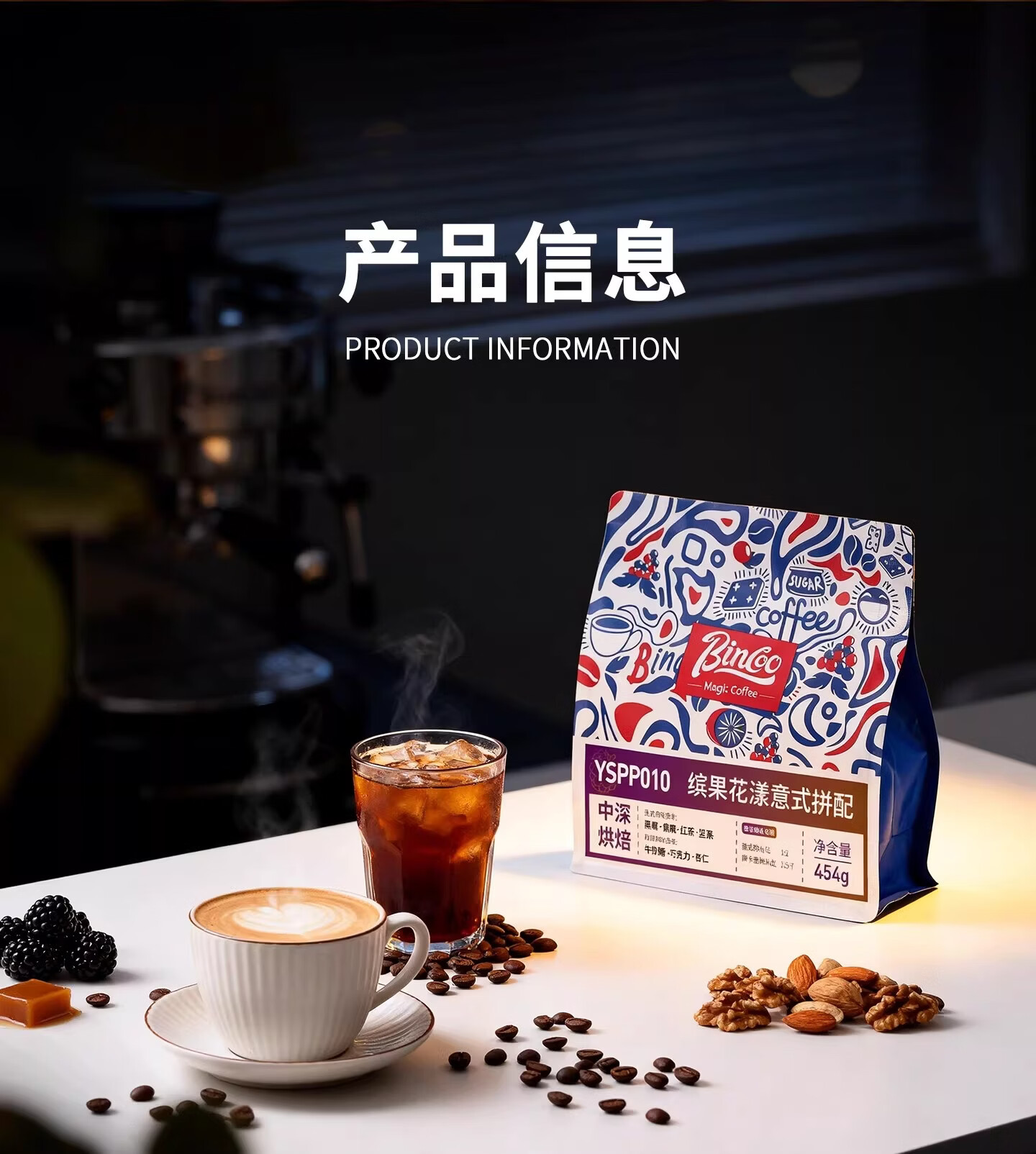 Bincoo果丁丁意式拼配咖啡豆中深烘焙咖啡机摩卡壶萃取冰美式拿铁 227g袋装