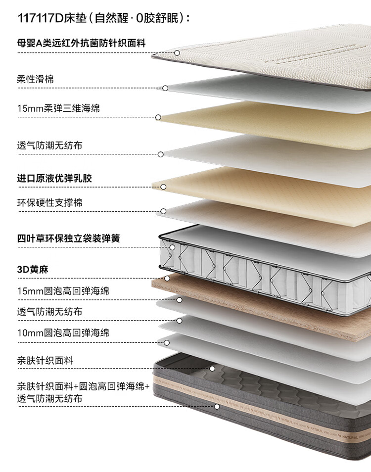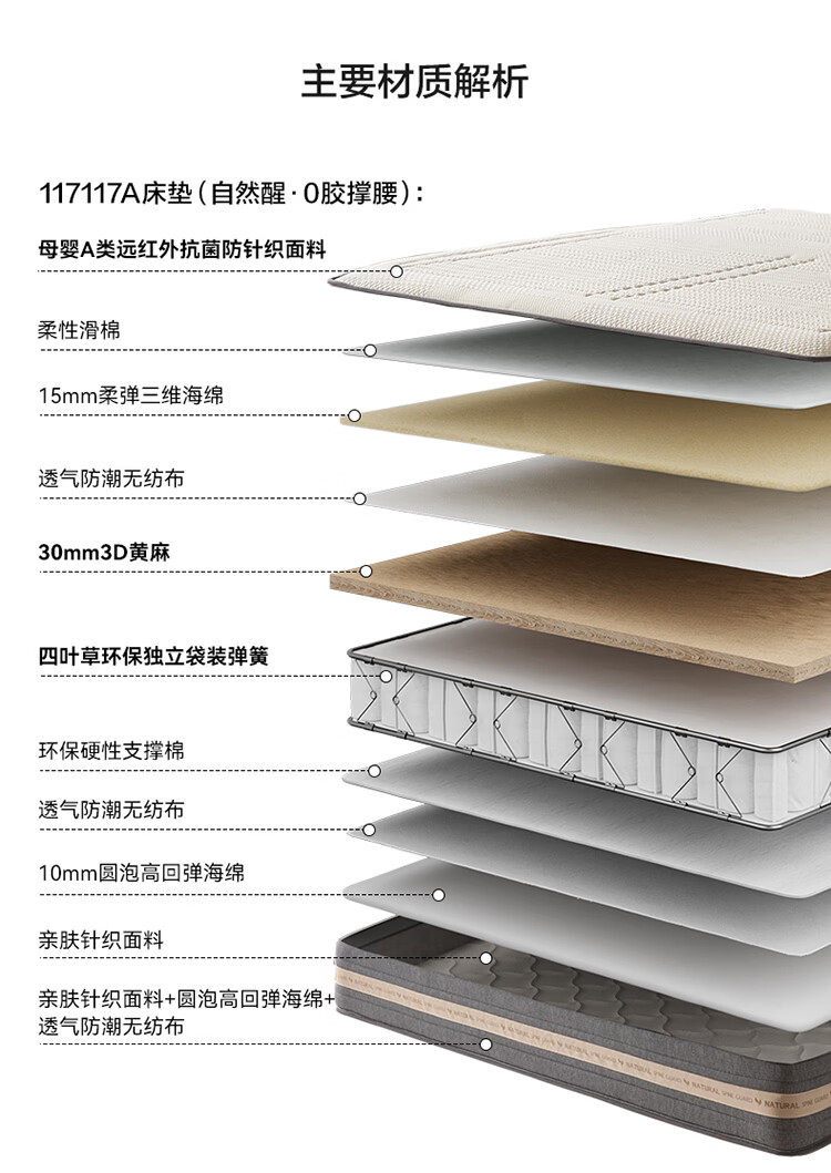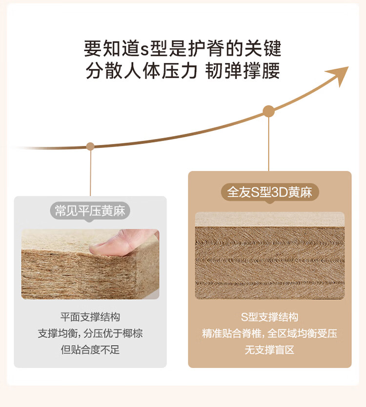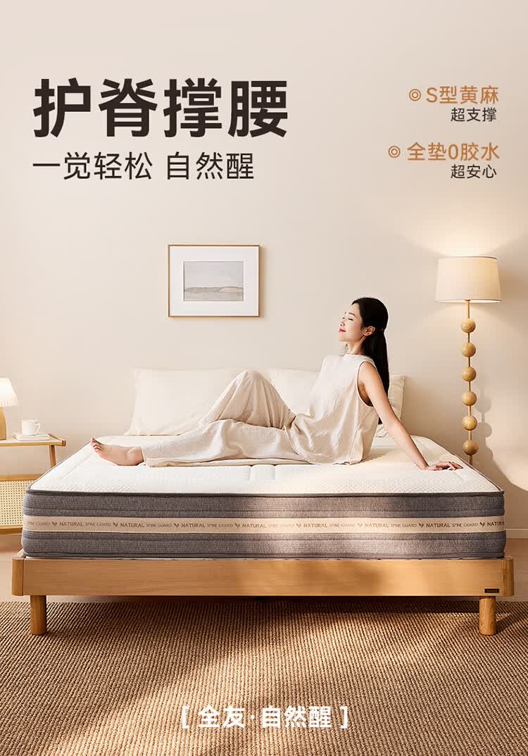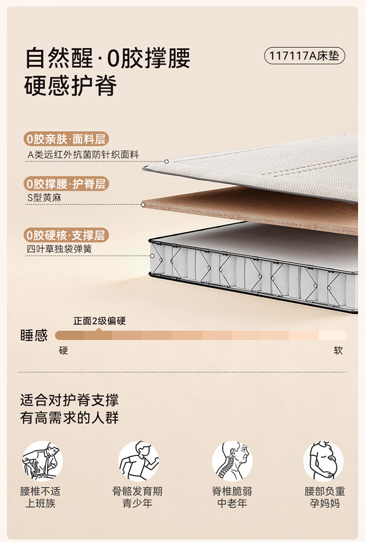 全友家居0胶水护脊双面可睡独立袋装弹簧双人床垫子黄麻席梦思榻榻米 【0胶撑腰|s型黄麻+四叶草弹簧】(厚24cm) 1.5x2米