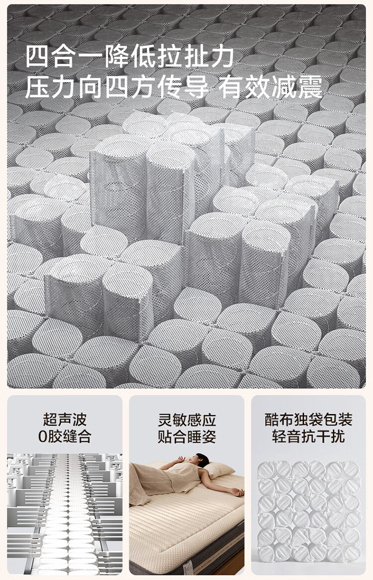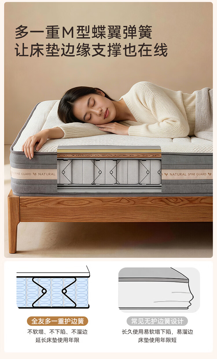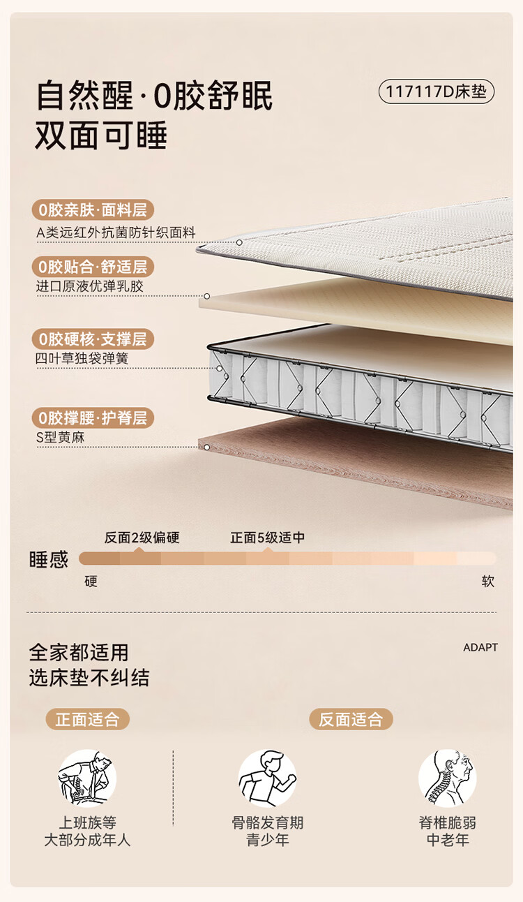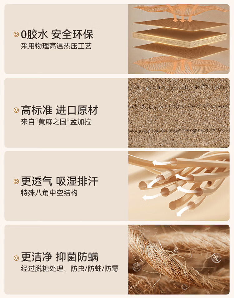全友家居0胶水护脊双面可睡独立袋装弹簧双人床垫子黄麻席梦思榻榻米 【0胶撑腰|s型黄麻+四叶草弹簧】(厚24cm) 1.5x2米