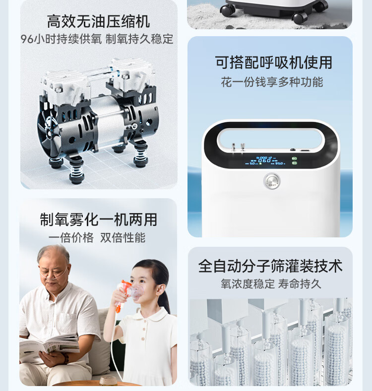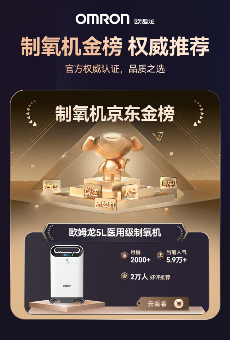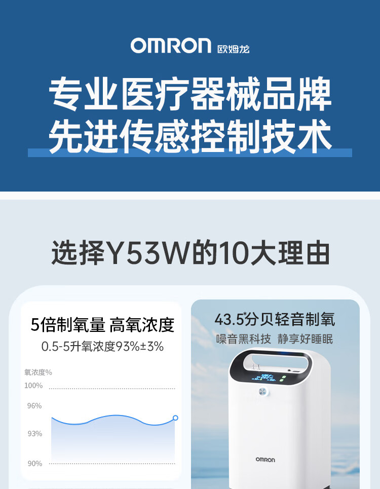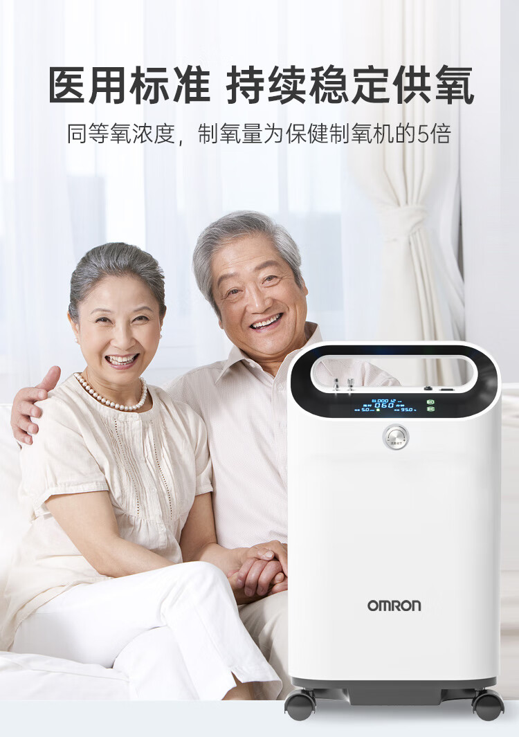 欧姆龙医用制氧机家用5L升吸氧机家用老人氧气机轻音带雾化双人吸氧Y53W