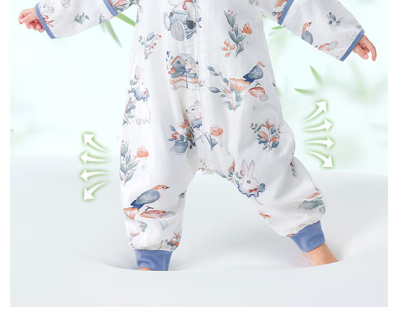 贝肽斯儿童睡袋夏季竹棉纱布宝宝睡衣分腿婴儿防踢被睡袋前4后2乔兔 XL