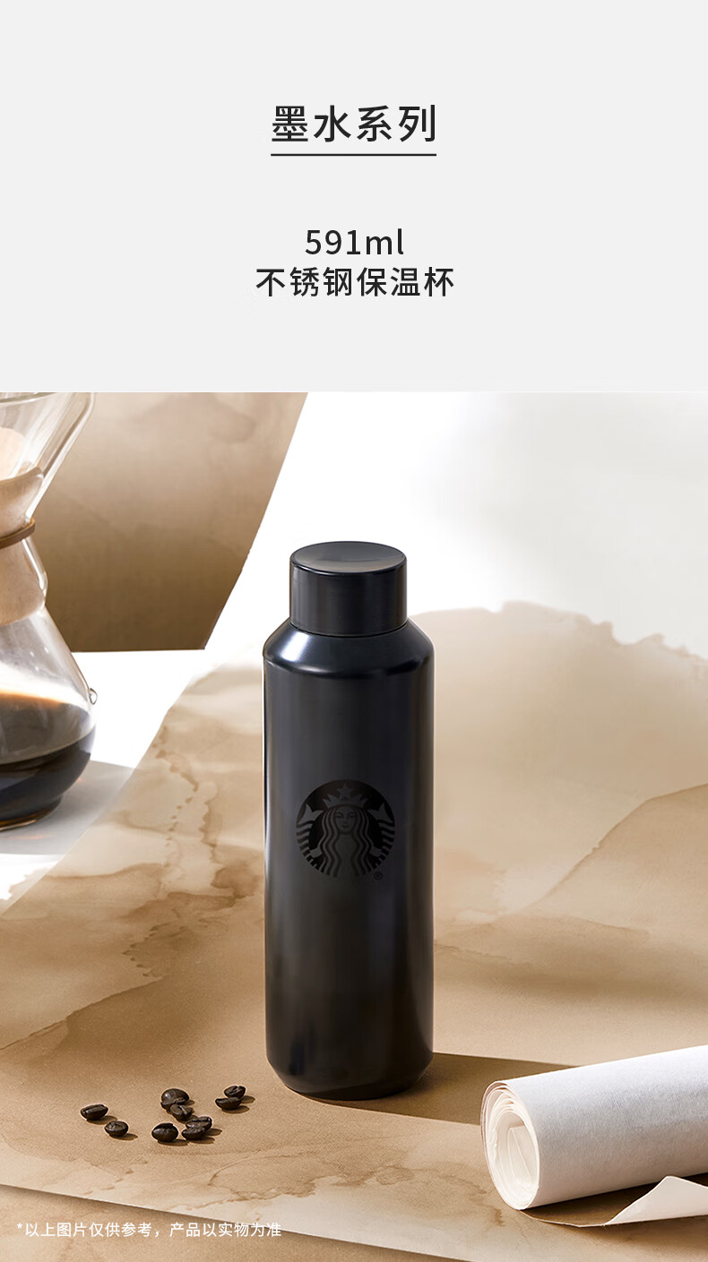 星巴克(Starbucks)墨水咖啡杯不锈钢保温保冷杯591ml大容量水杯男女生女神节礼物