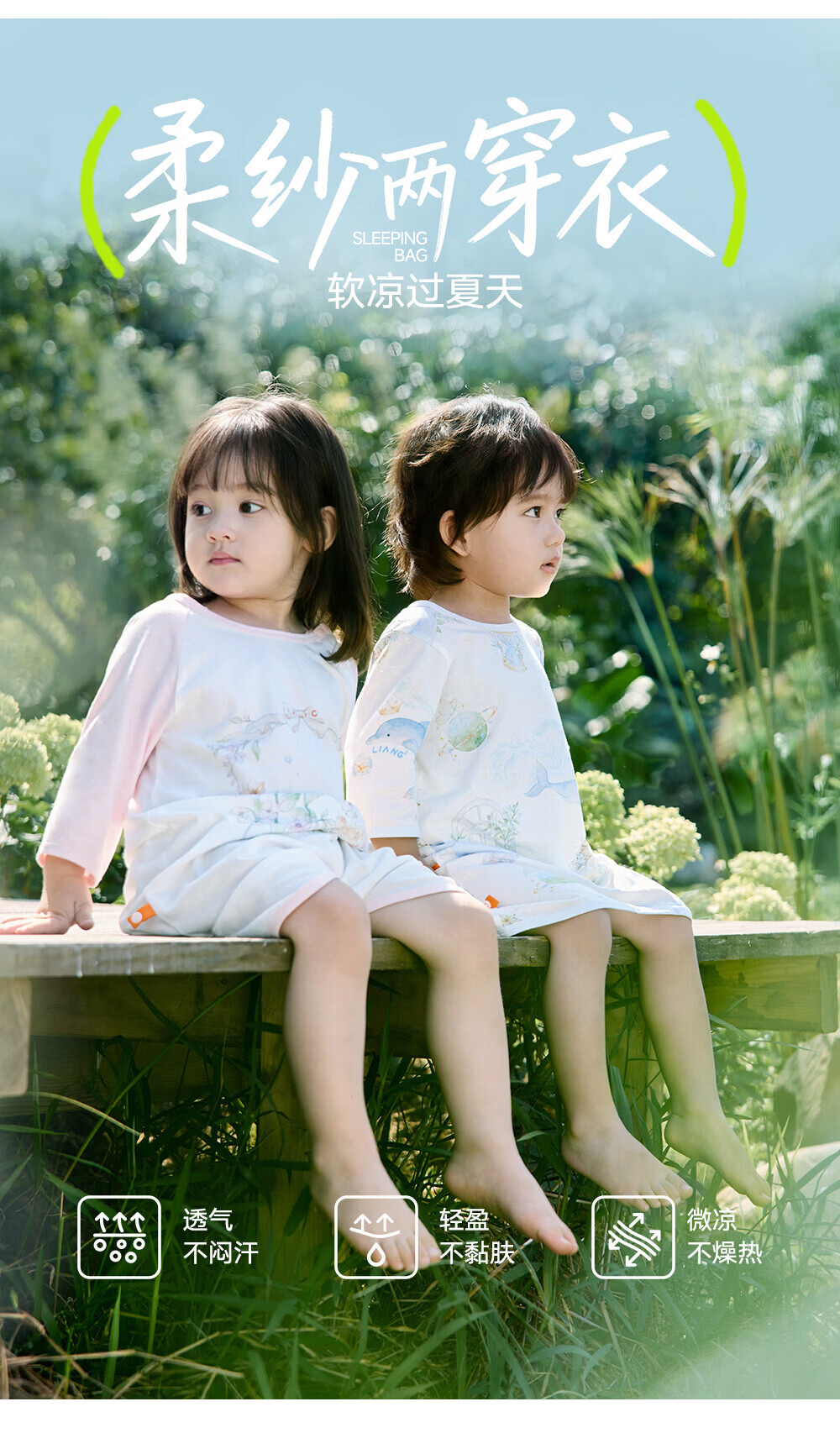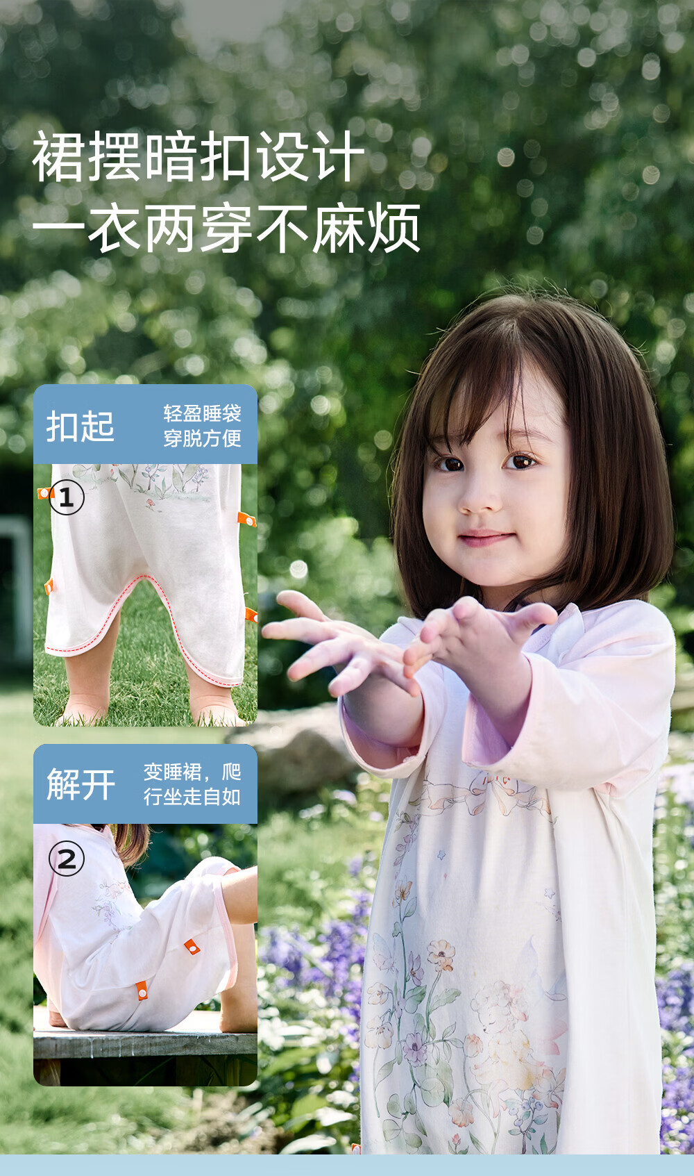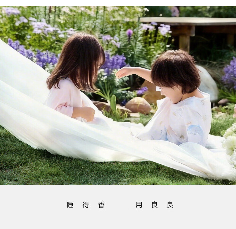 良良「26年新品」儿童睡袍春夏款睡衣宝宝睡袋春秋纱布睡裙家居空调服 【低敏x单向导湿--建议室温25-30℃】精灵花园 110 (建议参考身高100-115CM)