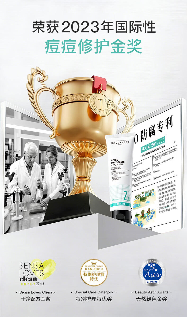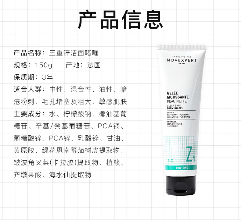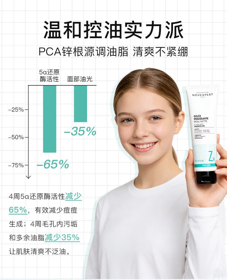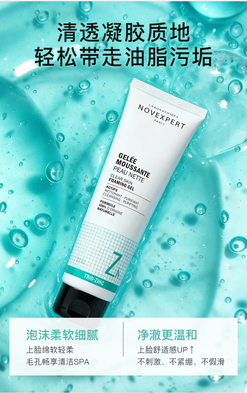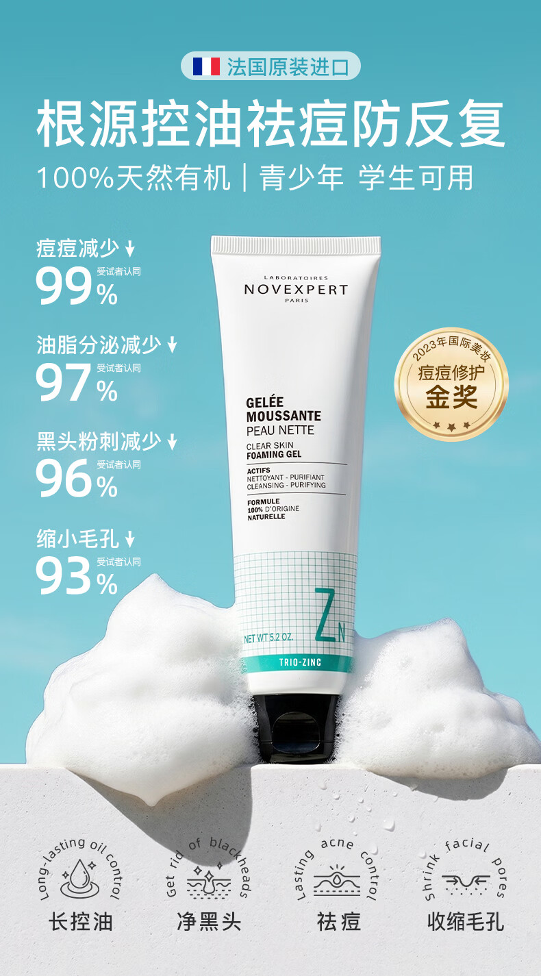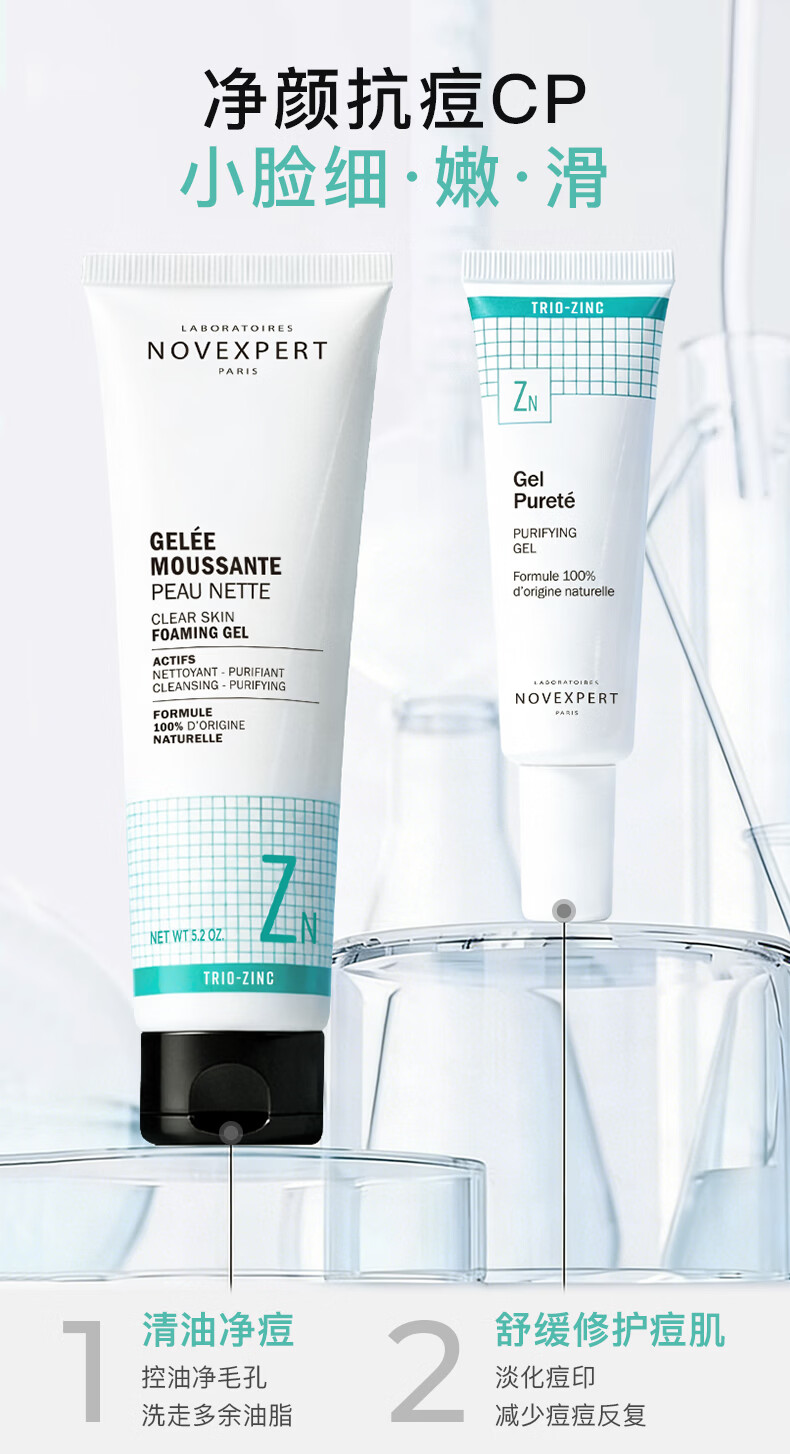 NOVEXPERT法国进口 诺士博青少年洗面奶 男女孩青春期专用 控油祛痘洁面乳 祛痘洗面奶150g+祛痘面霜30g