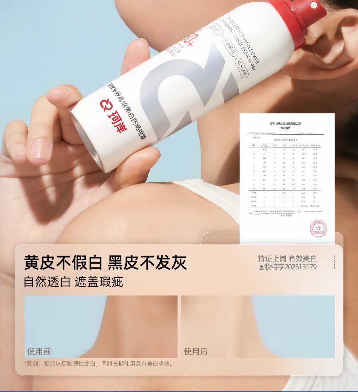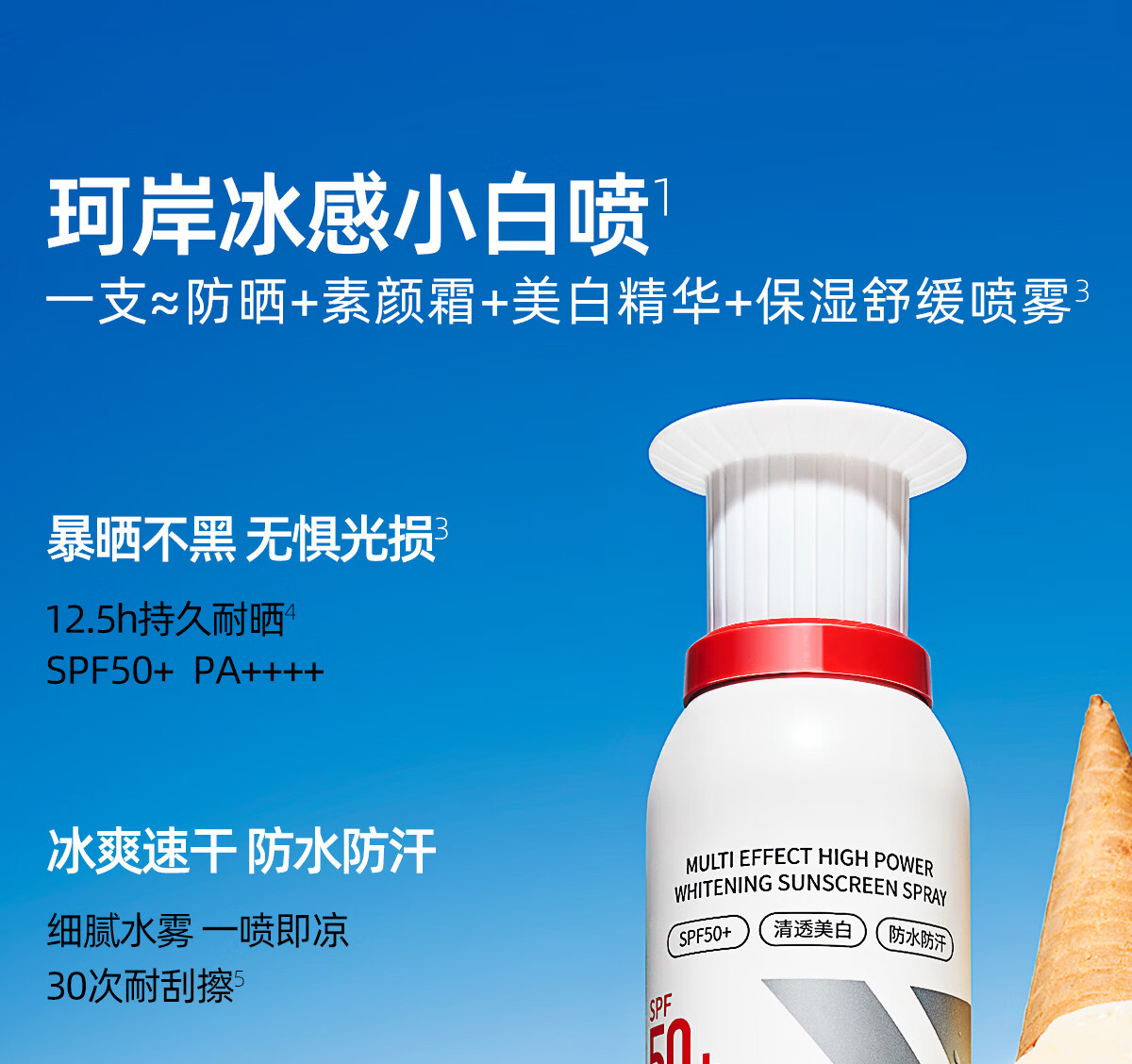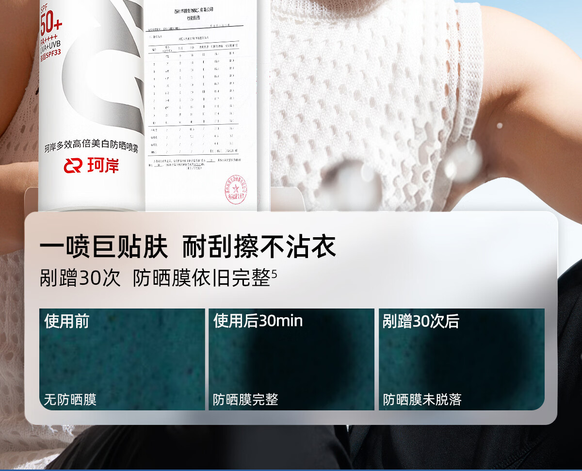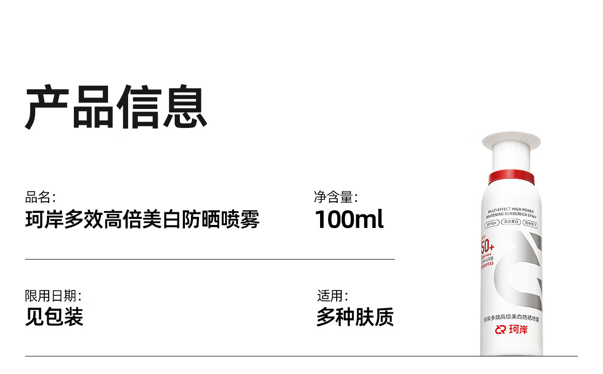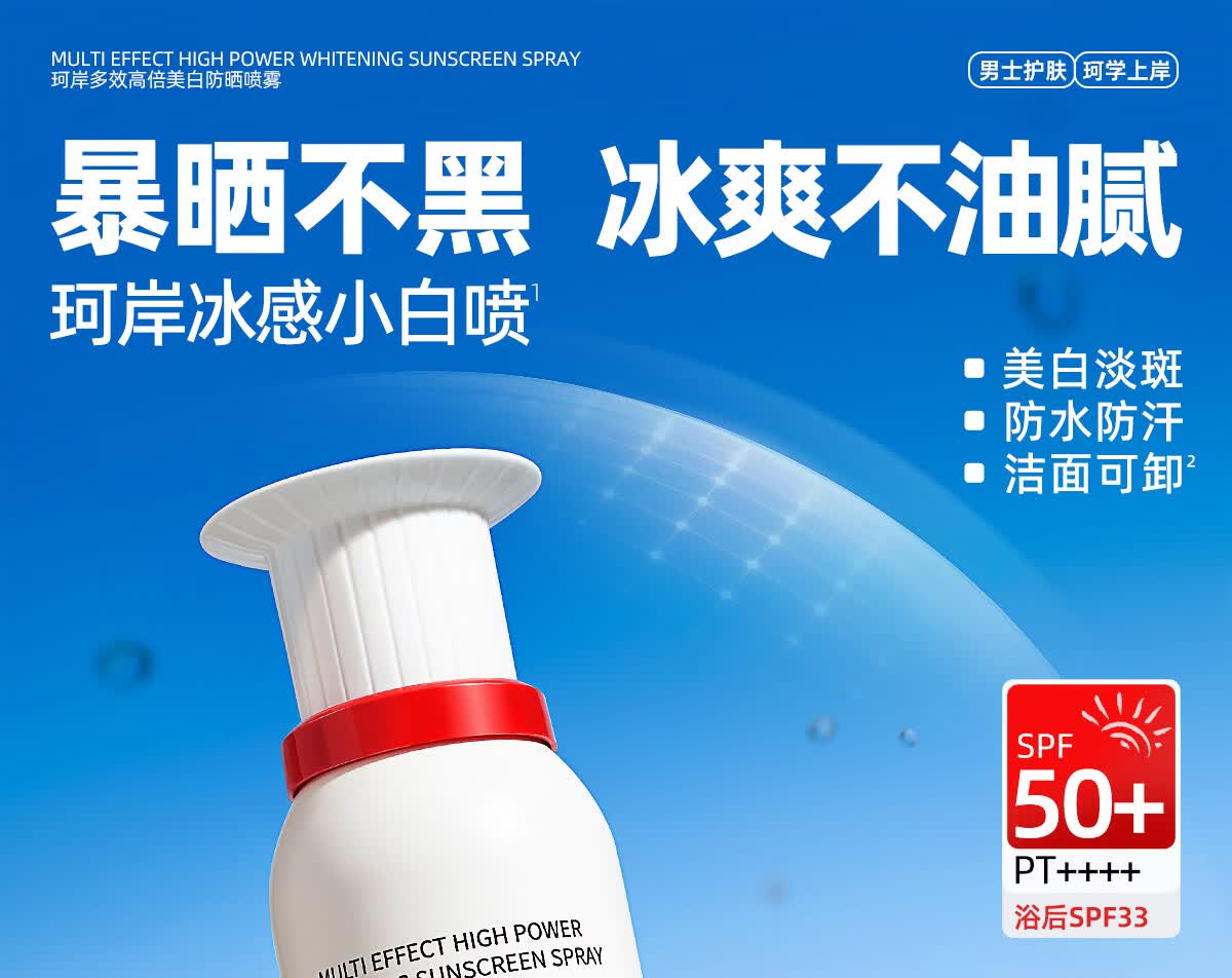 珂岸美白防晒喷雾霜防水防汗持久防紫外线户外便携保湿喷雾男女士专用 【美白一夏】喷雾100ml