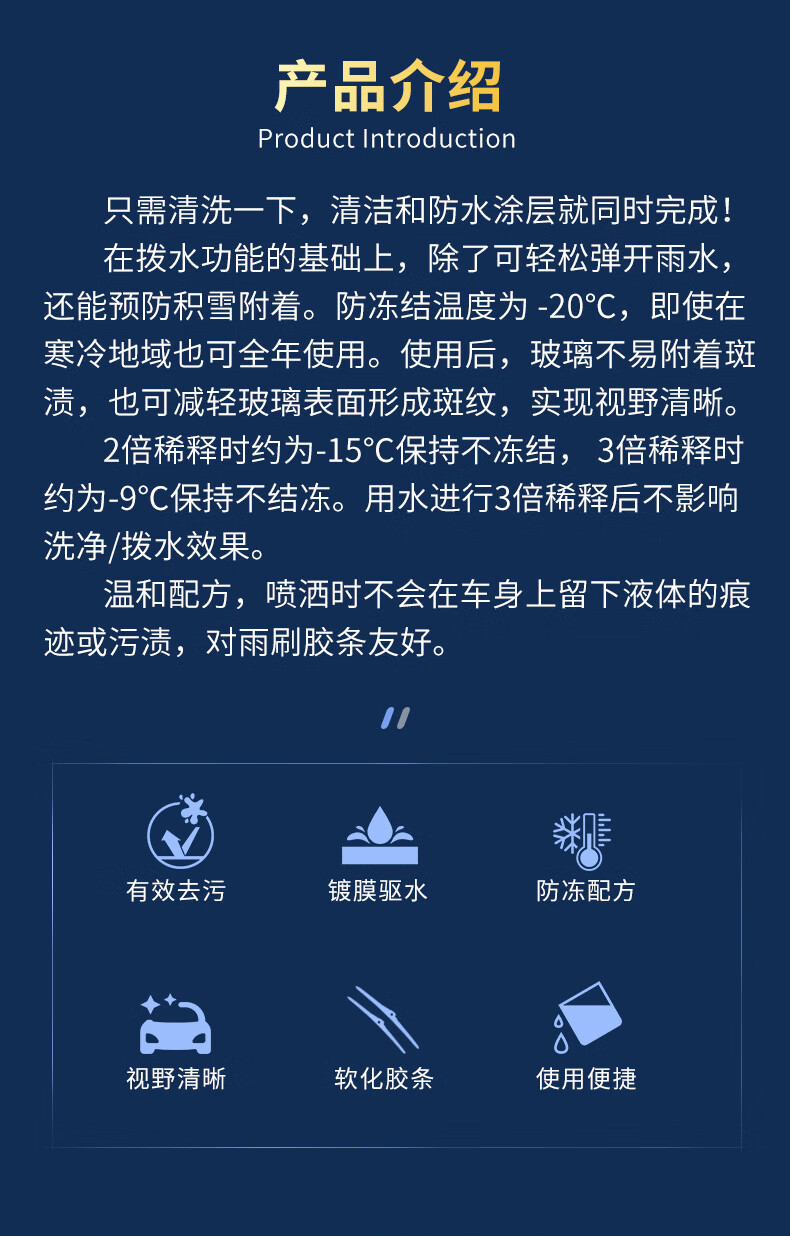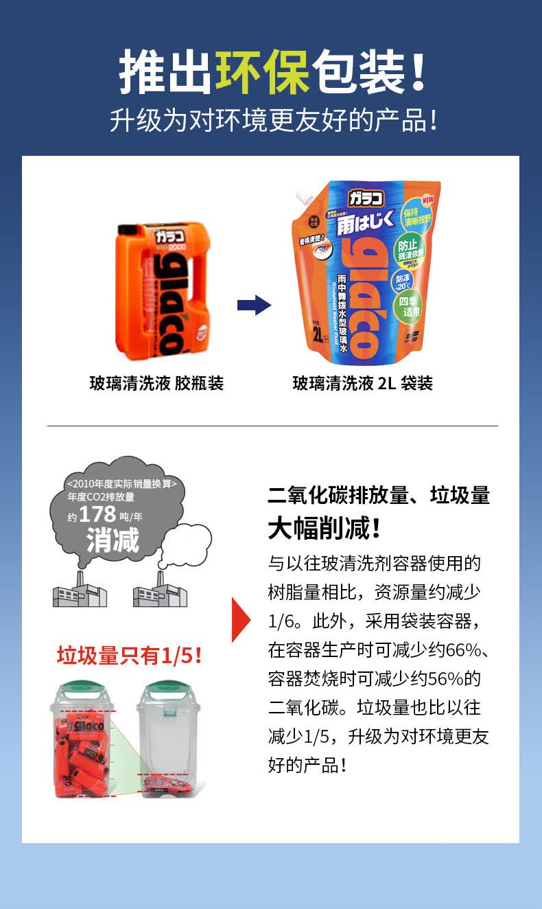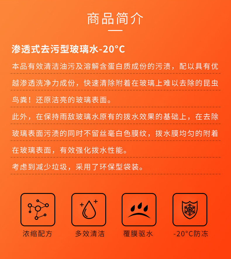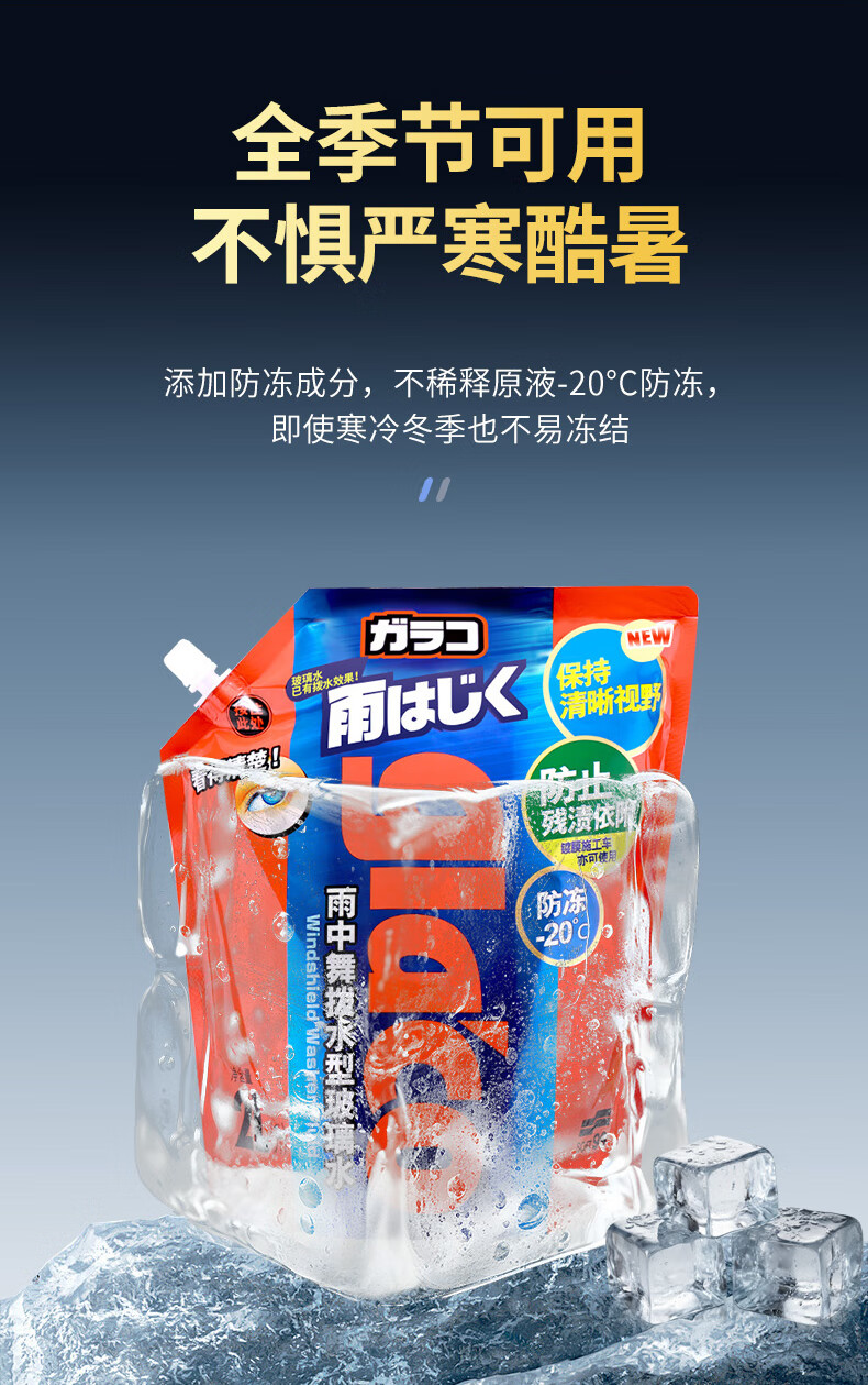 SOFT99镀膜型汽车玻璃水四季通用 冬季雨刮水强力去污去油膜防冻玻璃水 750ml*6袋 强力浓缩1:1稀释 -20度