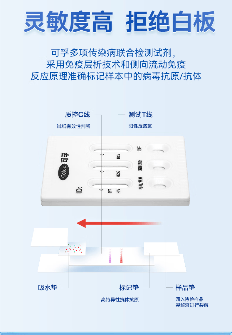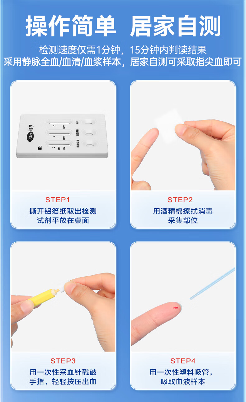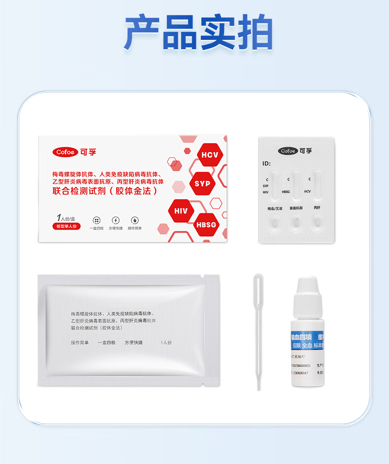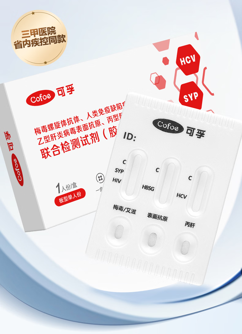 可孚 hiv艾滋病梅毒乙肝丙肝检测试纸四联性病检测试纸四合一传染病