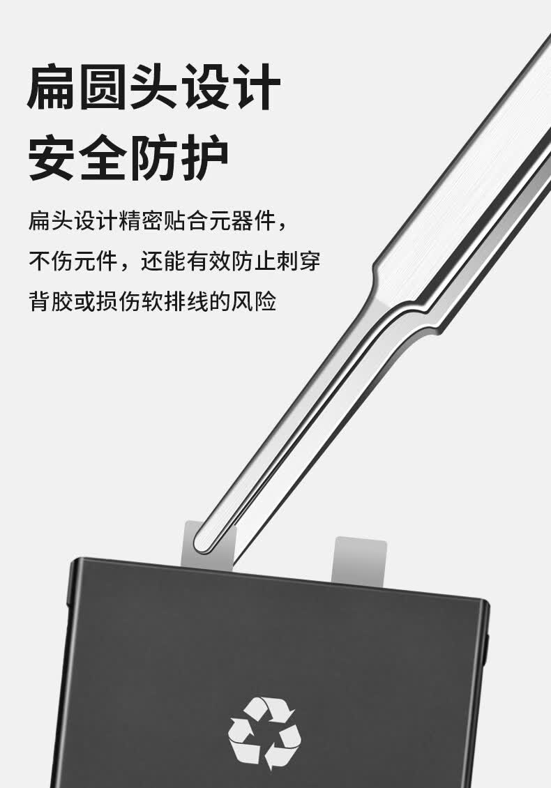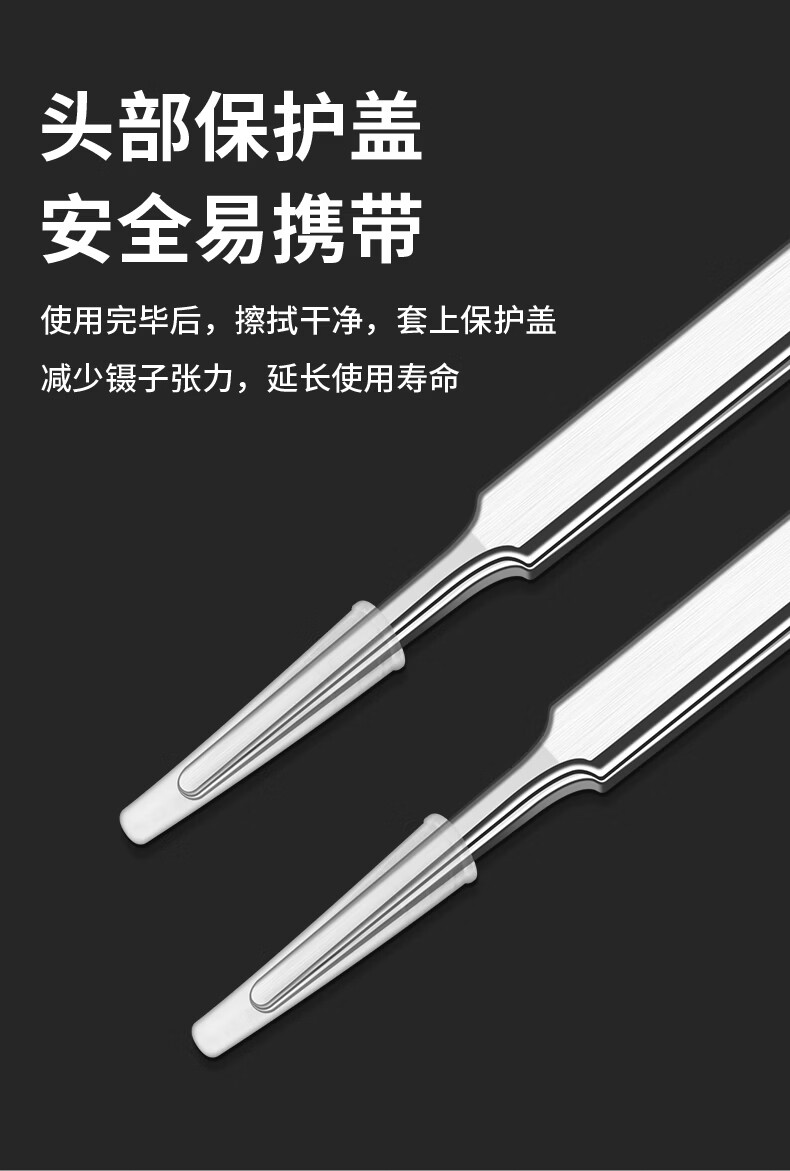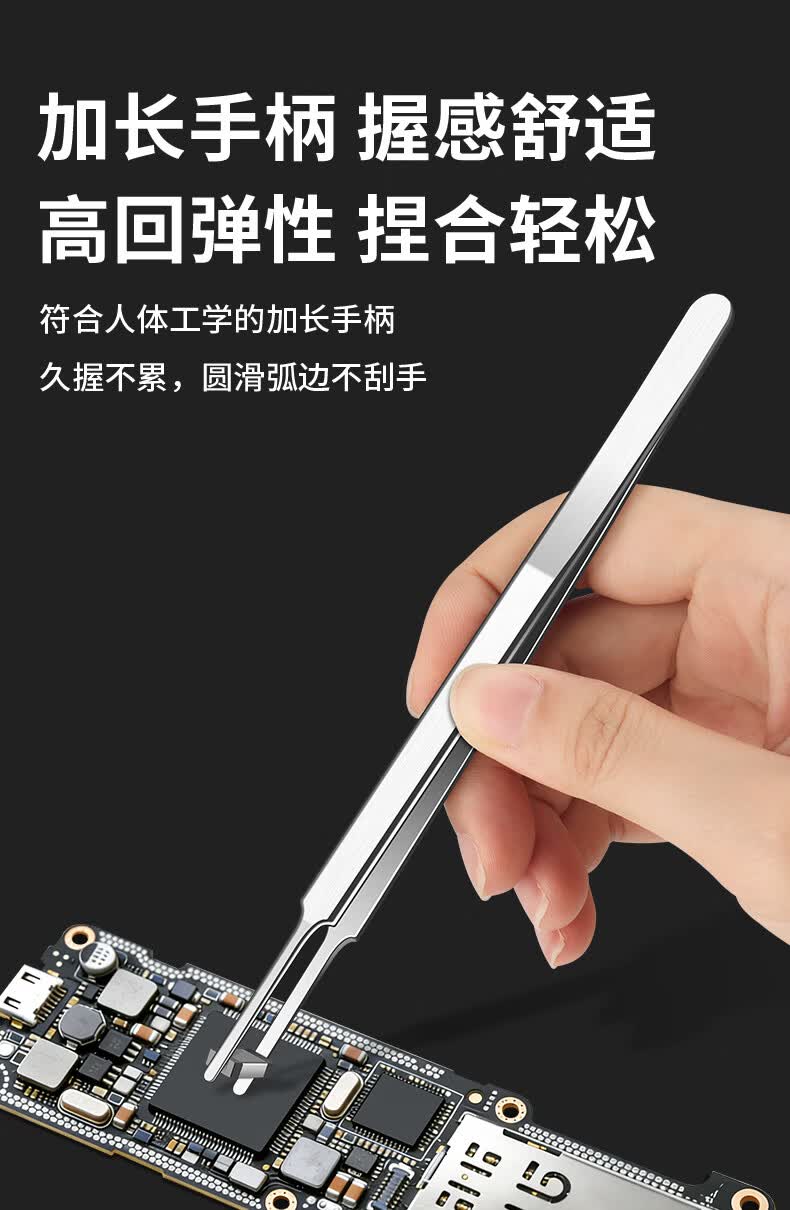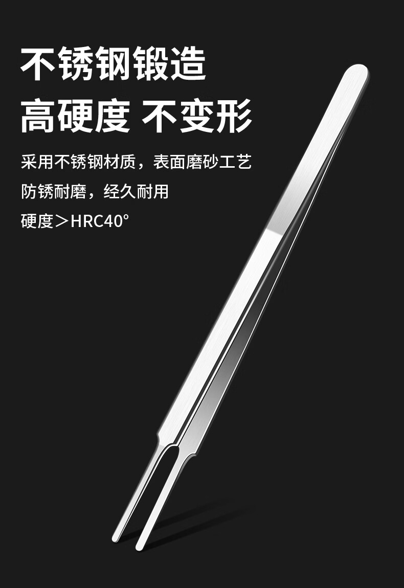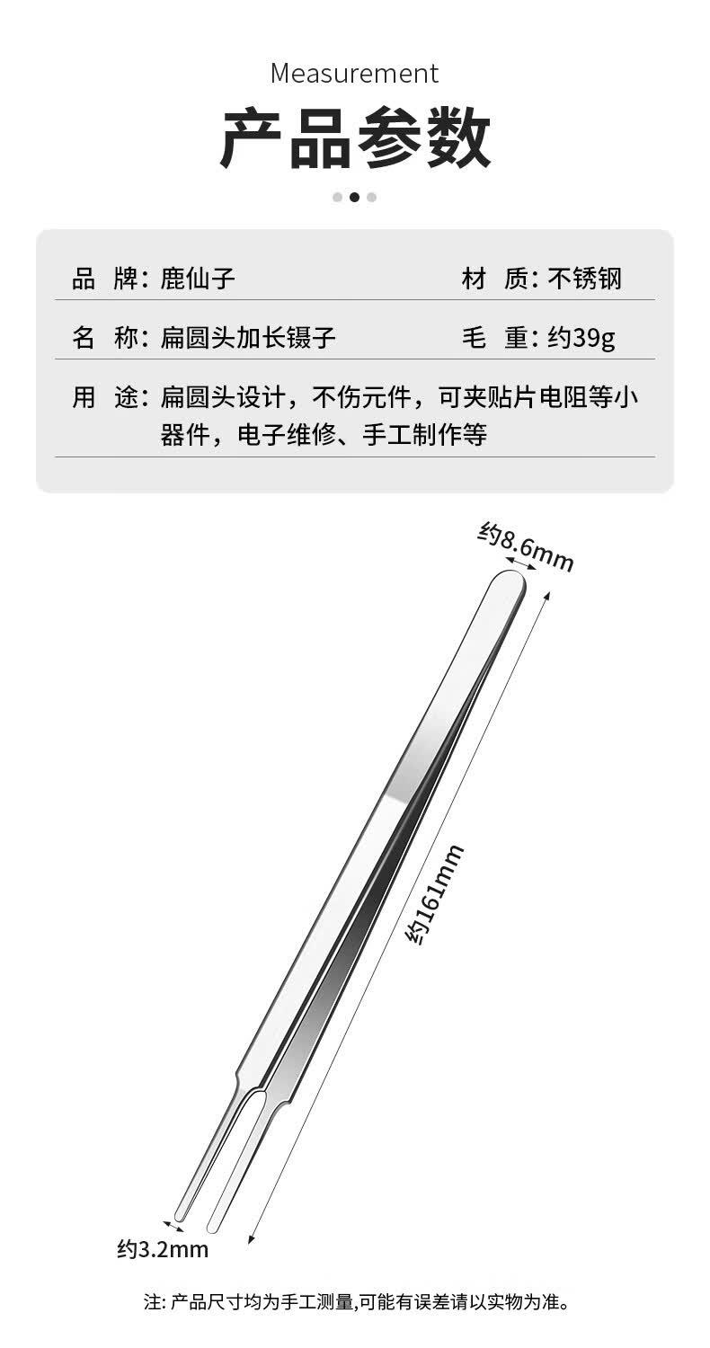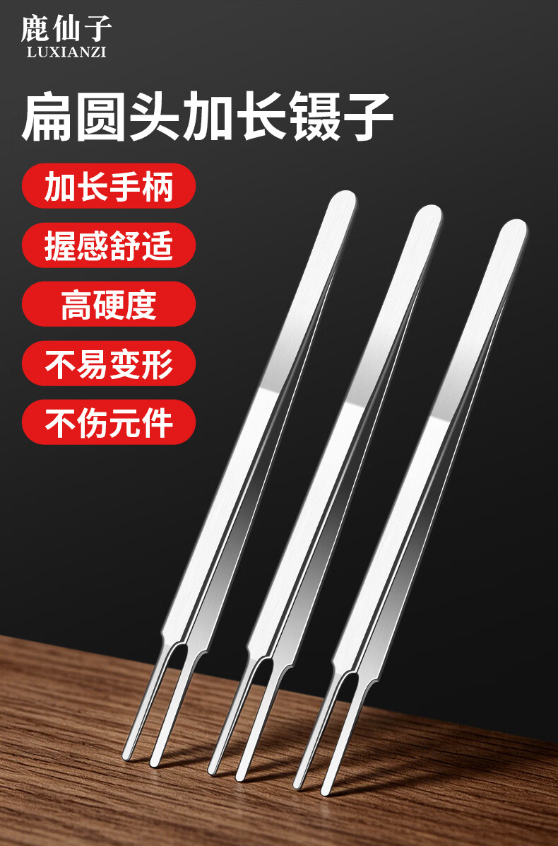 鹿仙子不锈钢镊子加长扁圆头高精密手机芯片电子维修贴片夹持专用镊子 【高硬度】扁圆头加长镊子