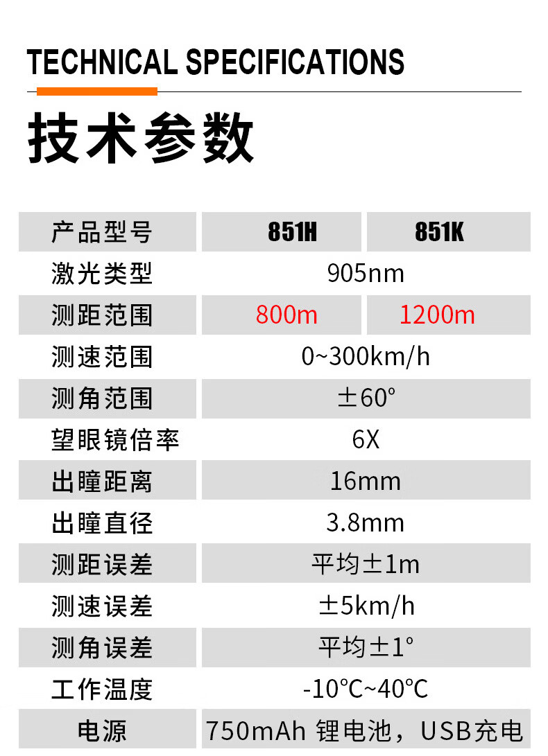胜利仪器(VICTOR)测距望远镜高尔夫户外激光测距仪远距离测量仪 851K-1200M(测距/高/角/速)