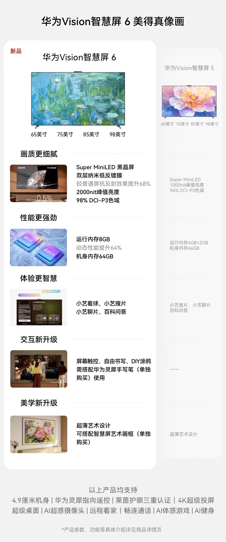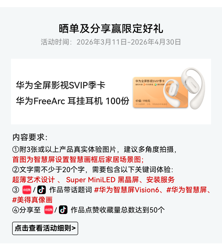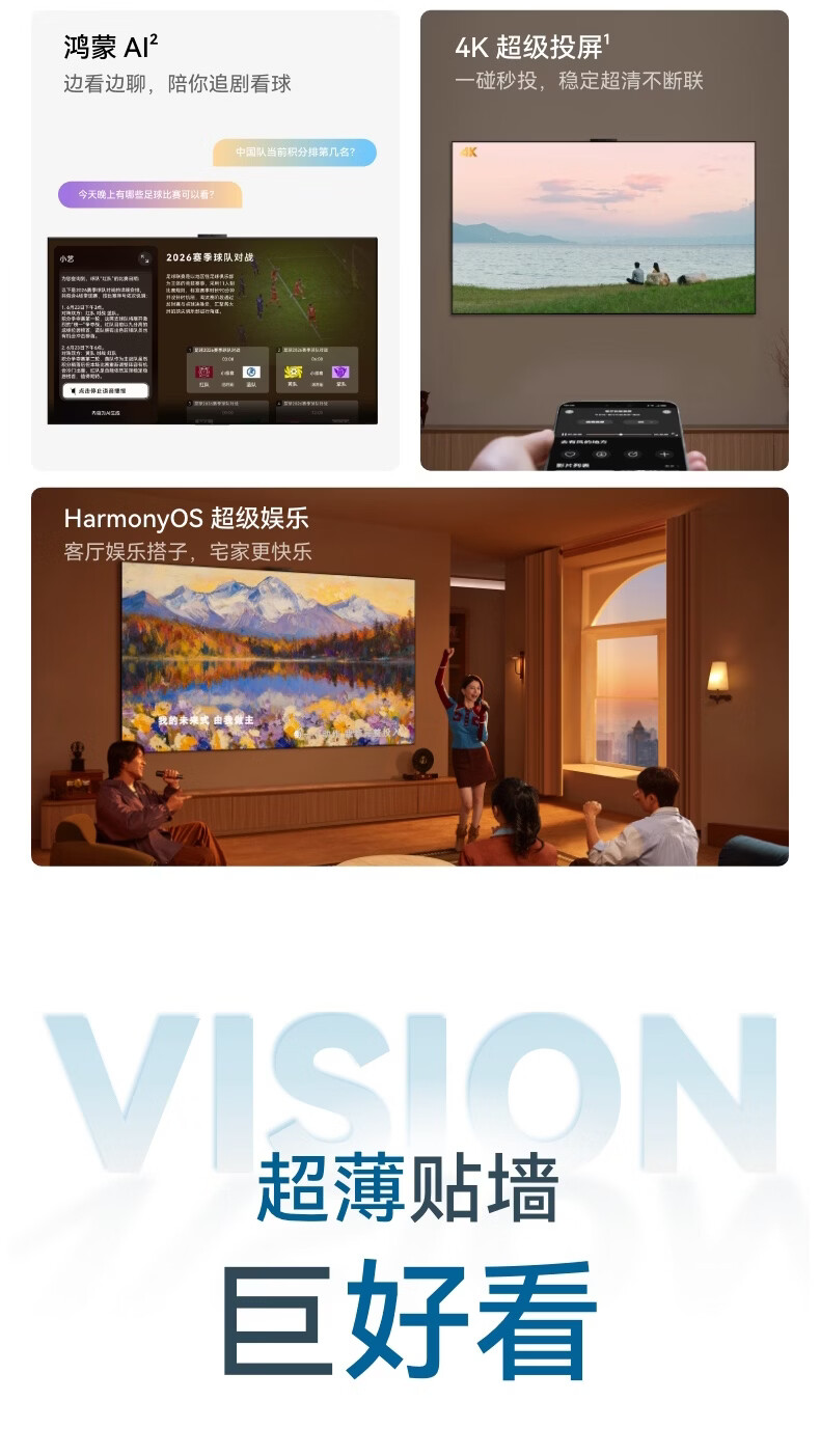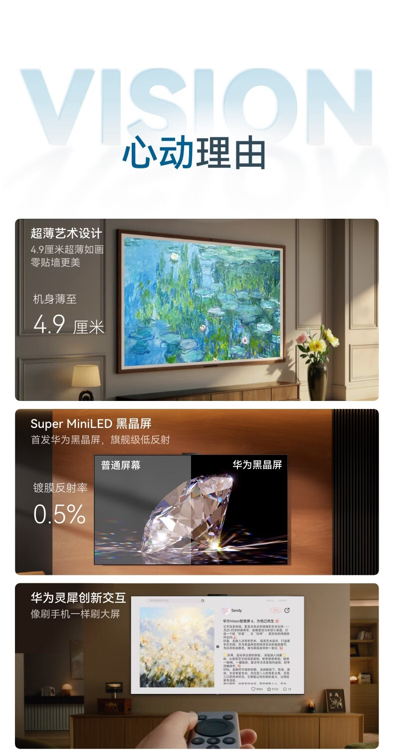 华为Vision智慧屏 6 75英寸 SuperMiniLED黑晶屏 国家补贴一级能效Pura 90 Pro投屏好搭档壁纸电视机