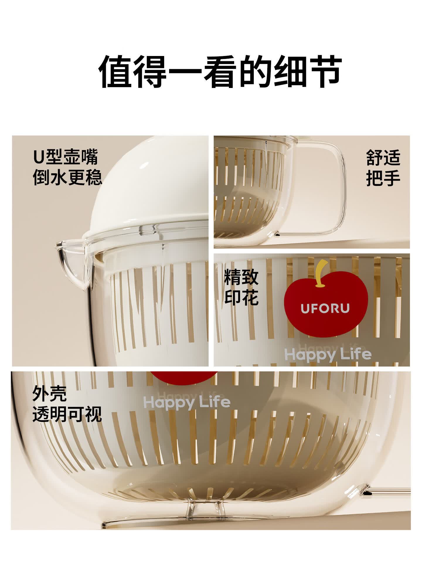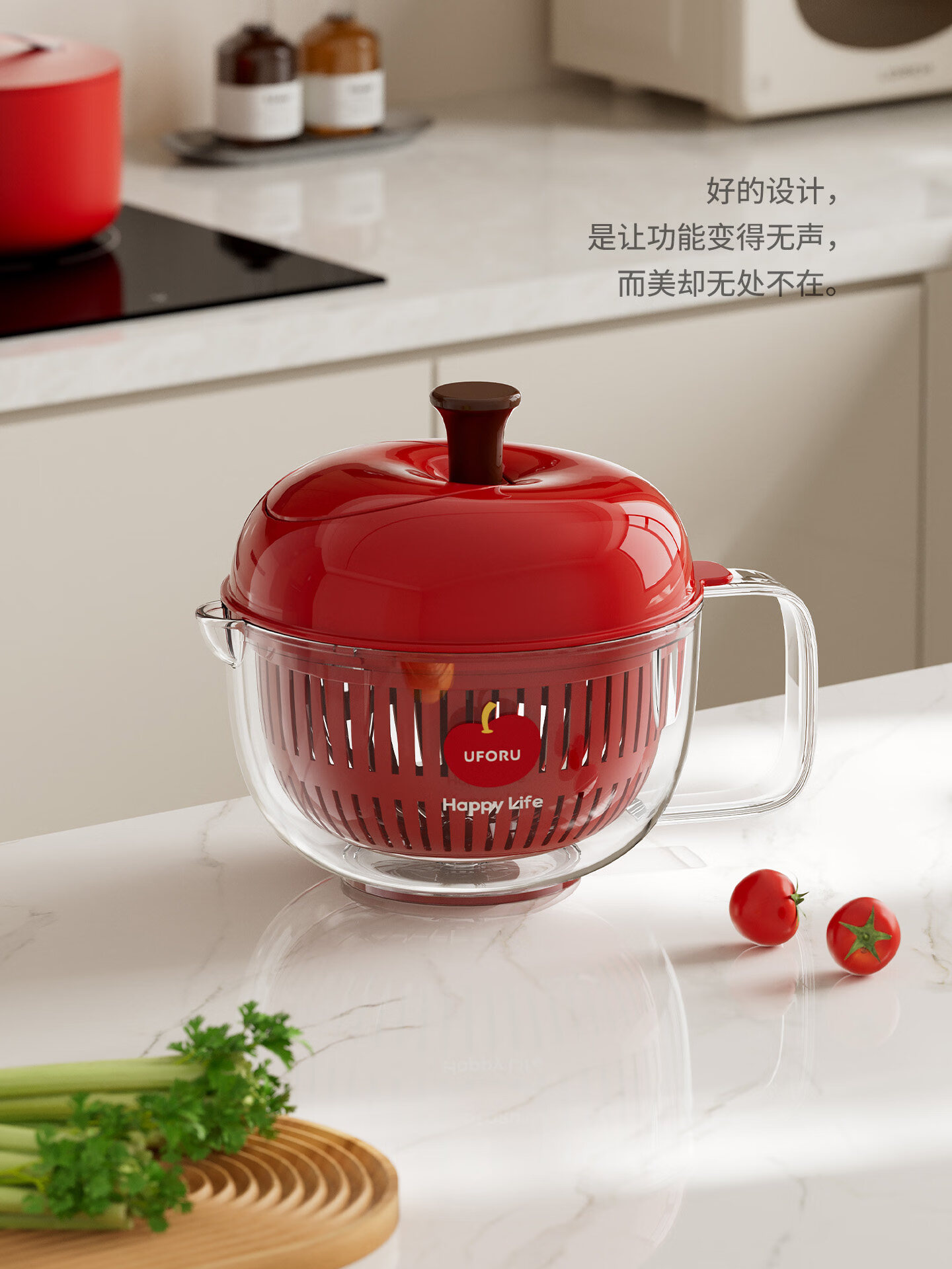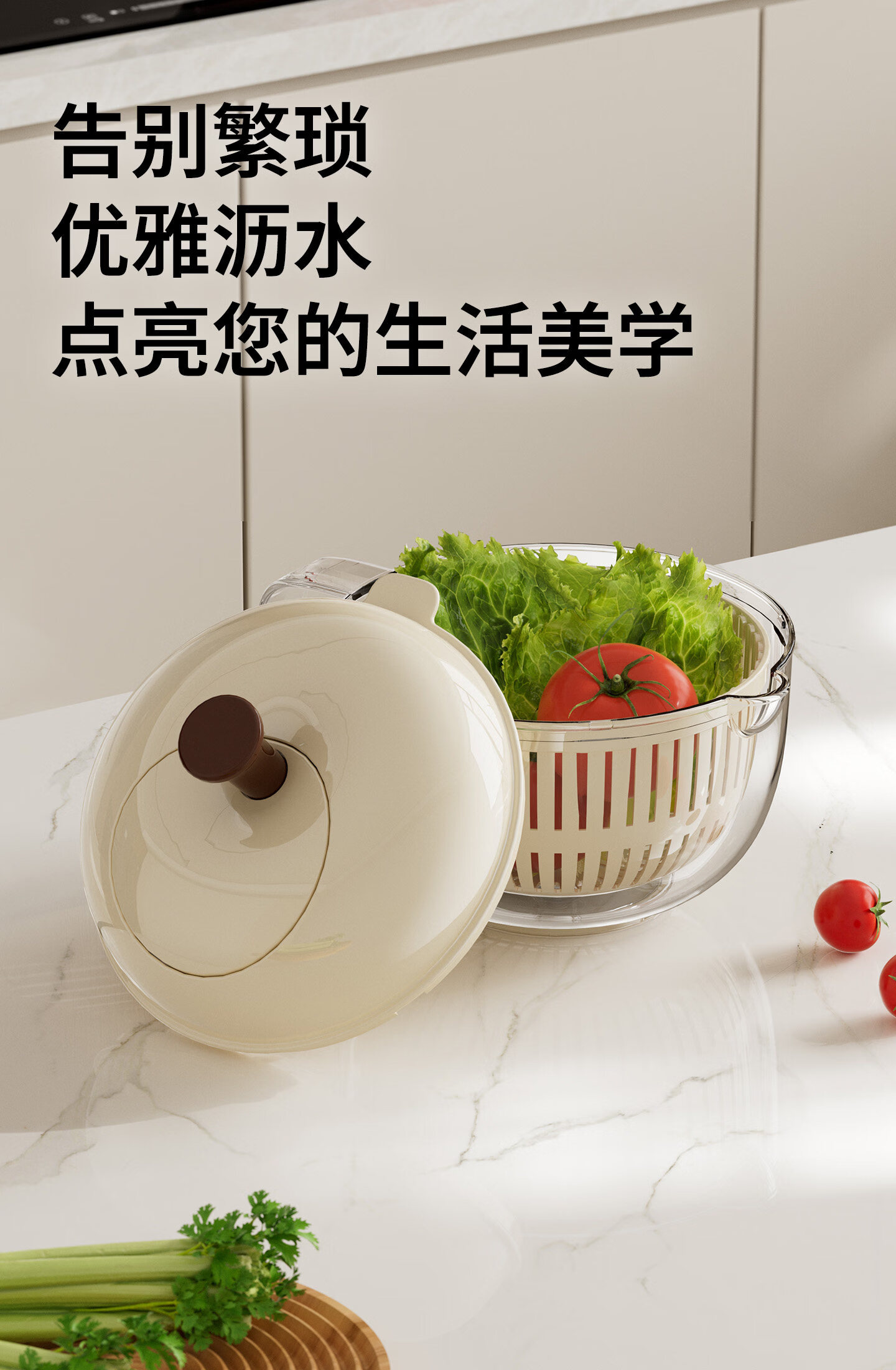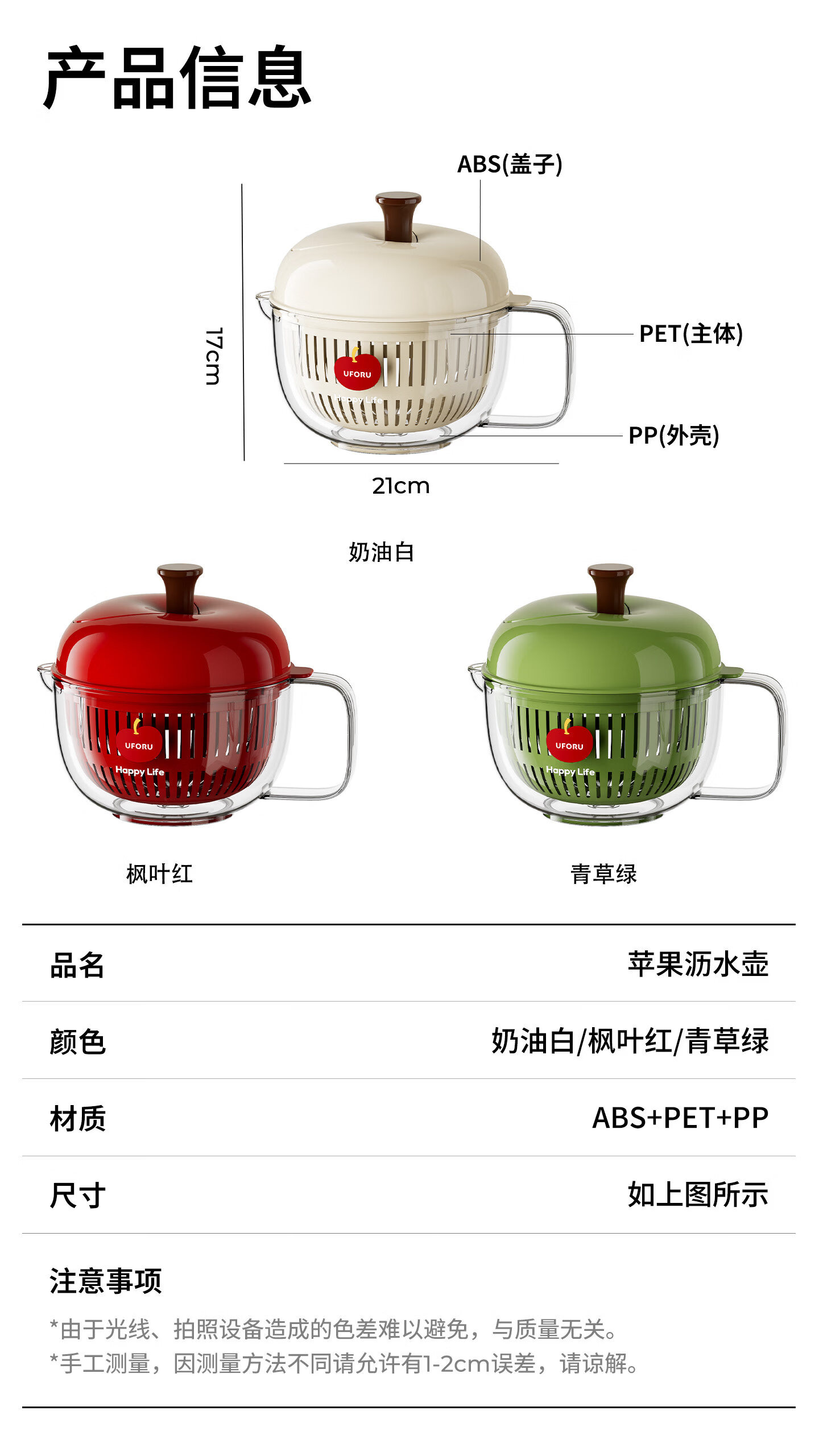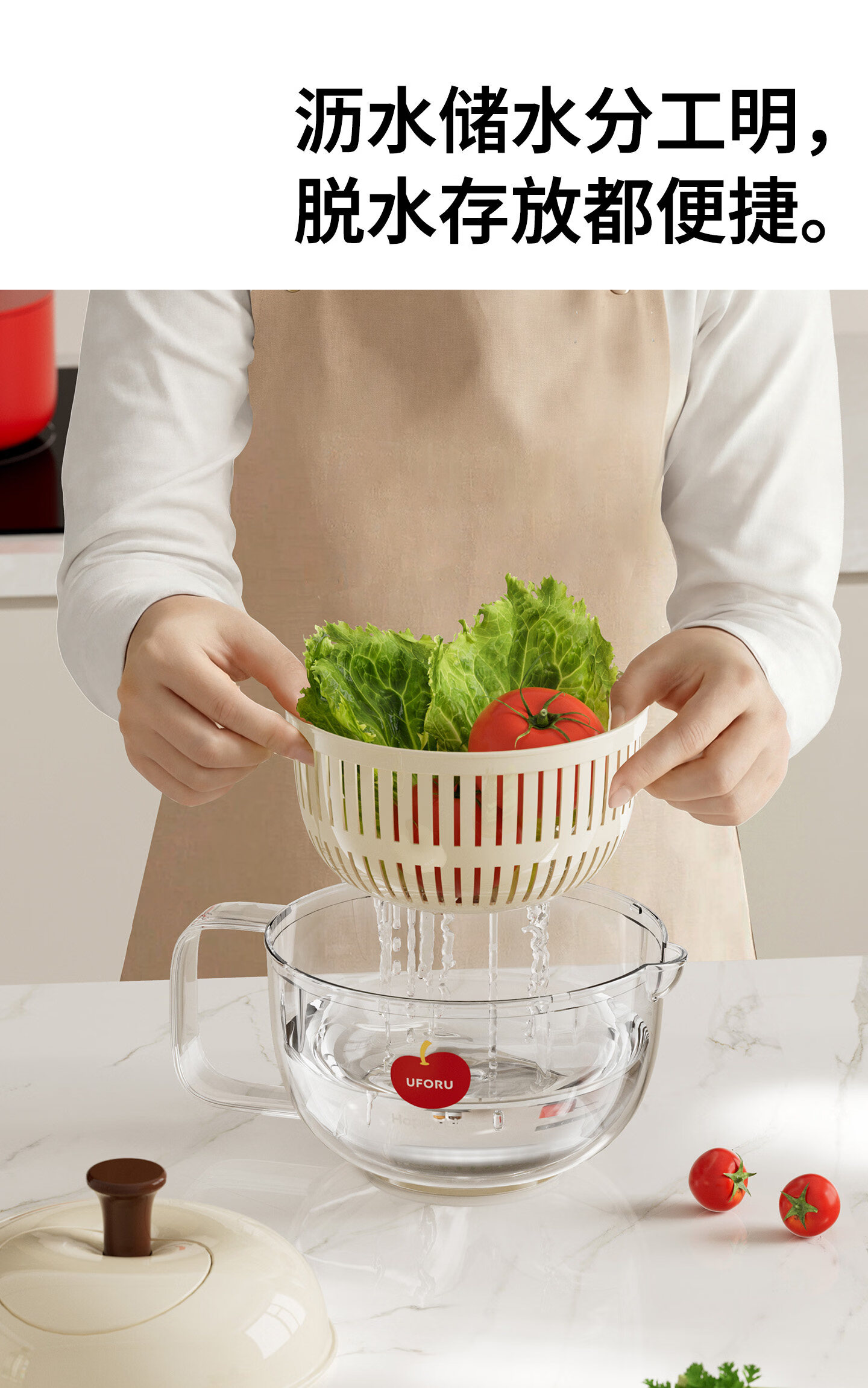 艾仕可(ASCOR)创意趣味苹果沥水篮大容量手摇旋转厨房果蔬清洗器加厚收纳篮 苹果沥水篮-奶油白