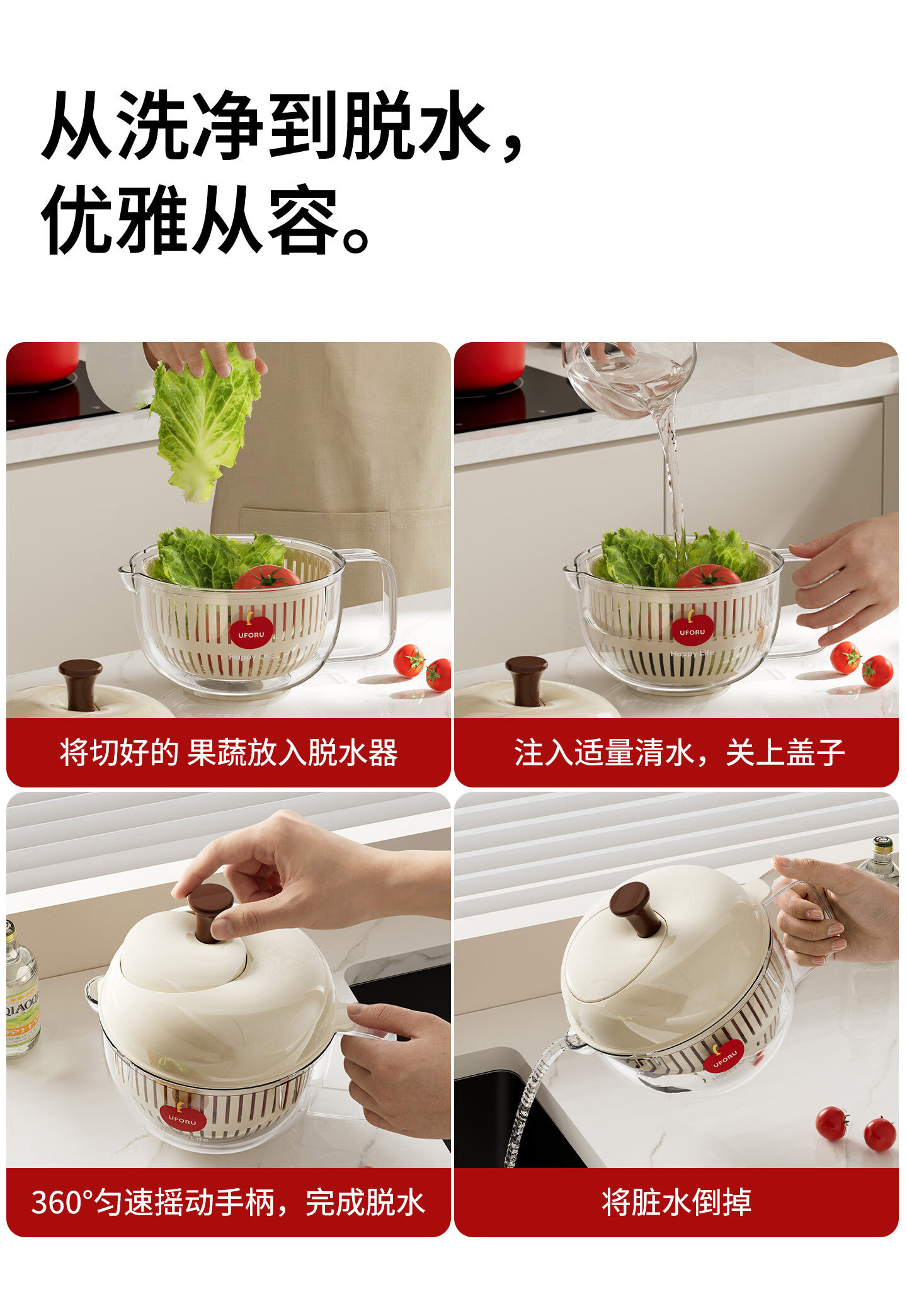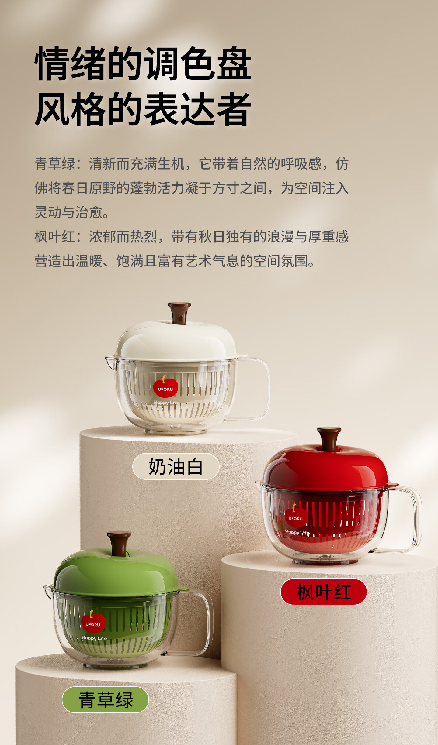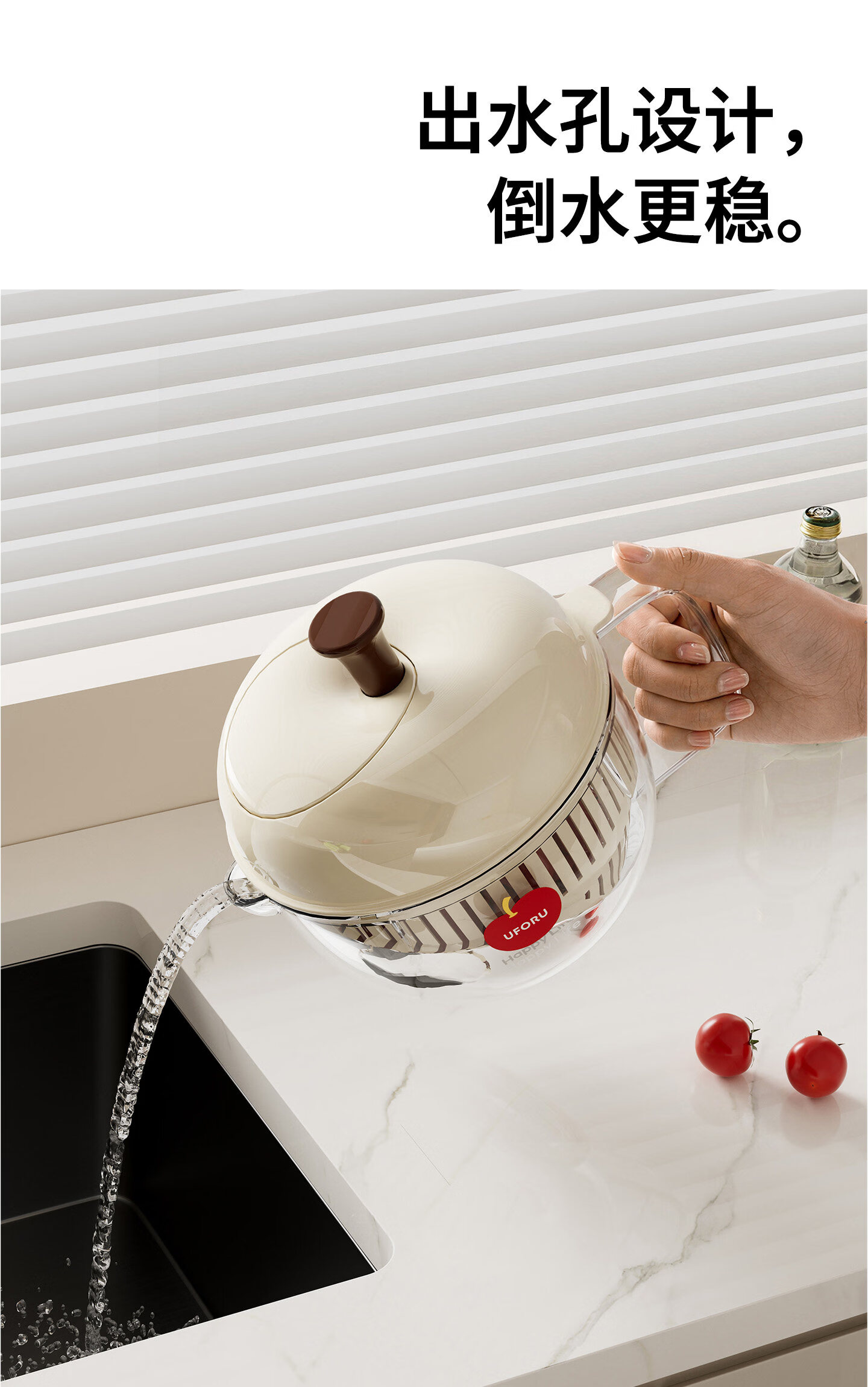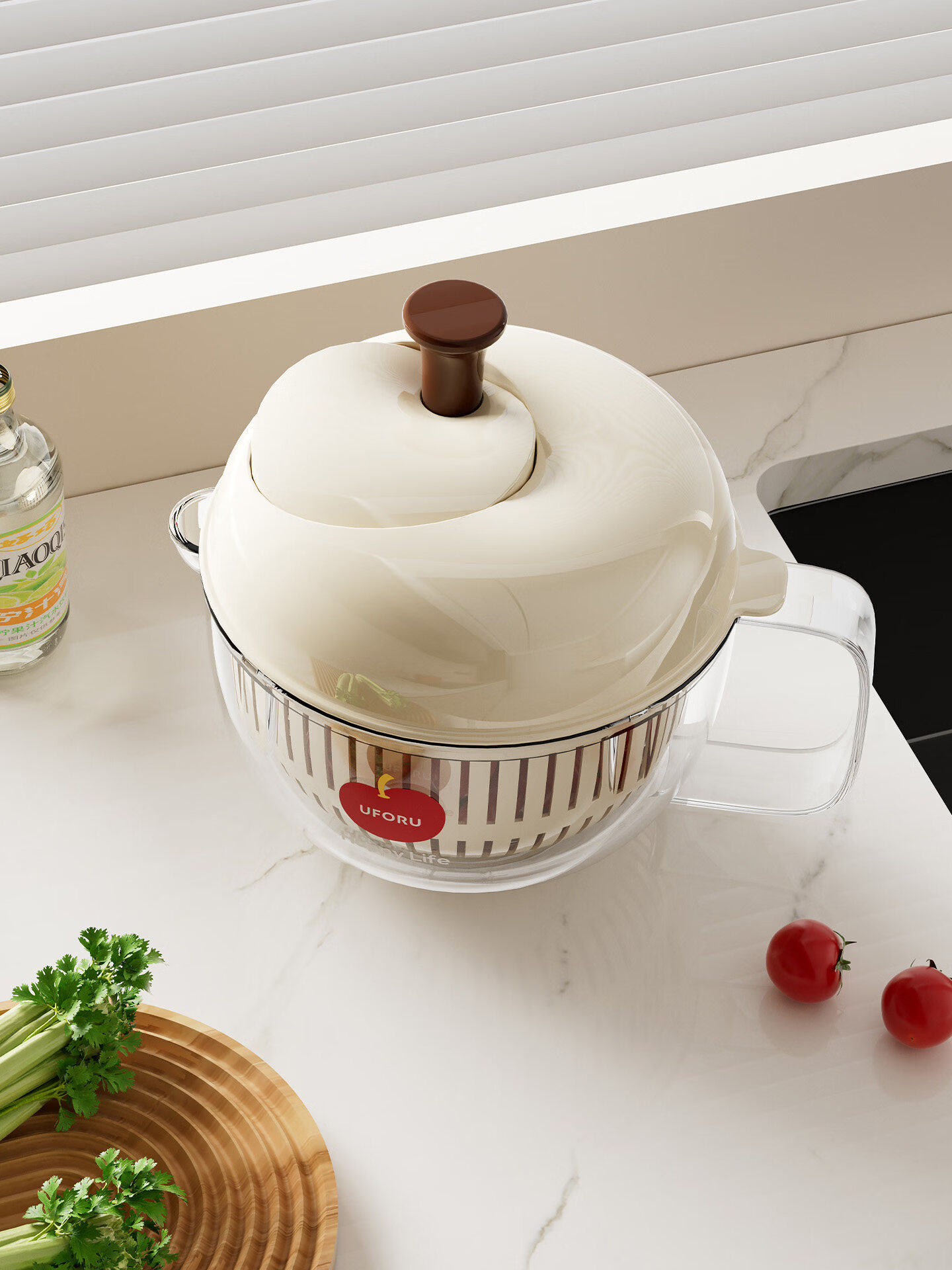 艾仕可(ASCOR)创意趣味苹果沥水篮大容量手摇旋转厨房果蔬清洗器加厚收纳篮 苹果沥水篮-奶油白