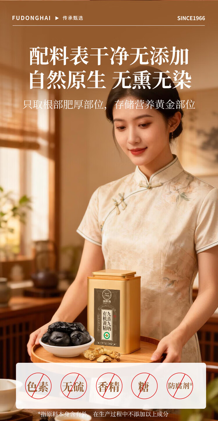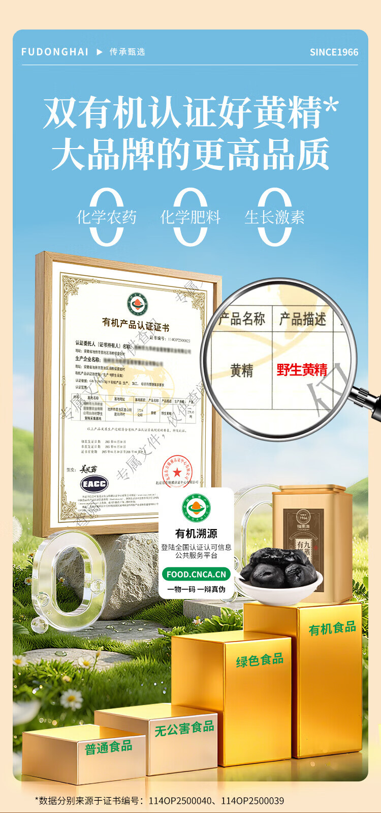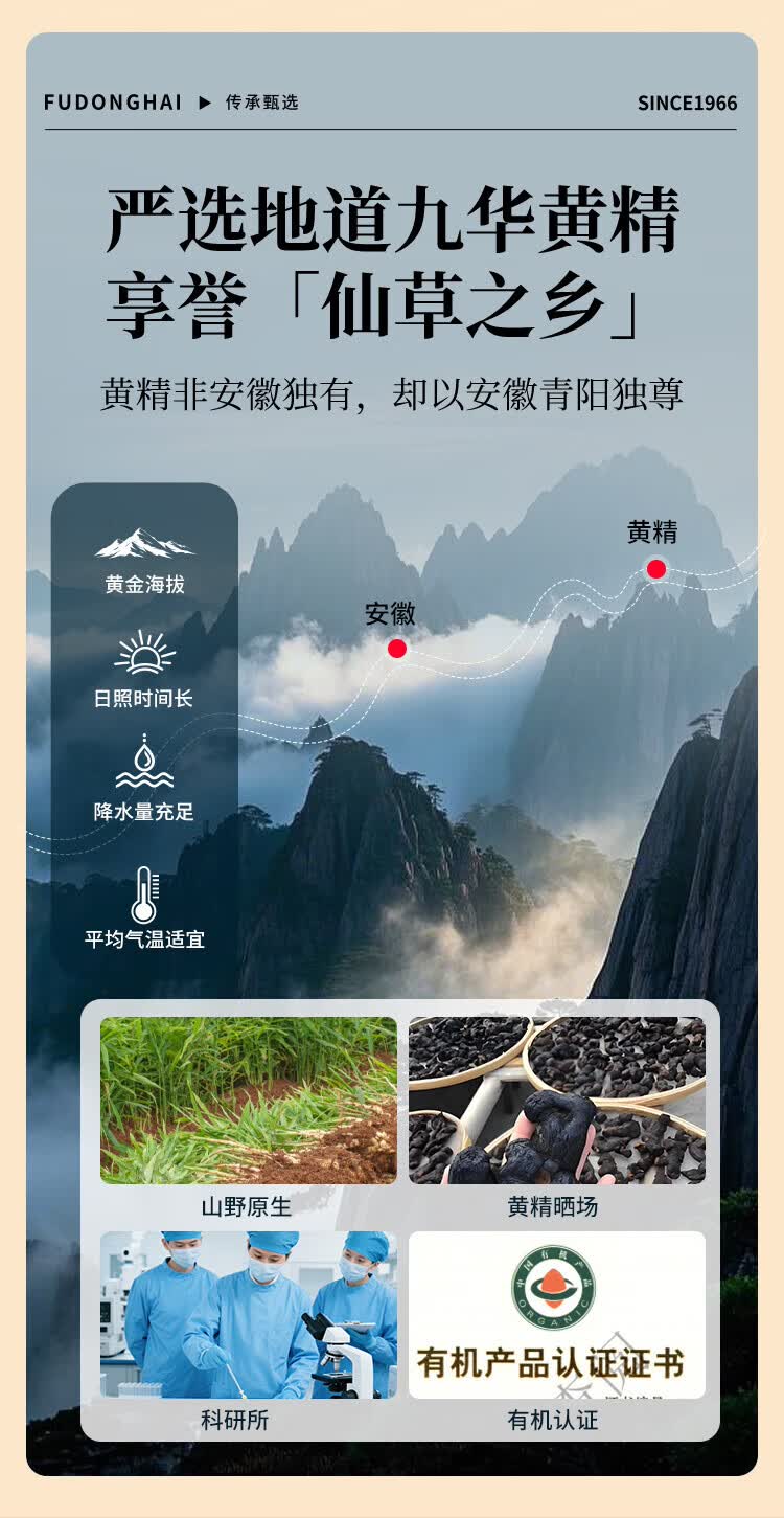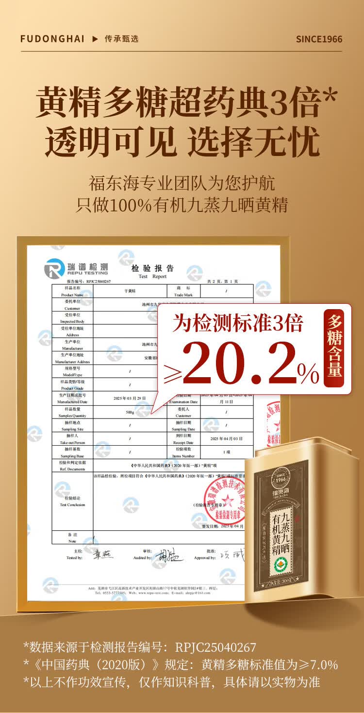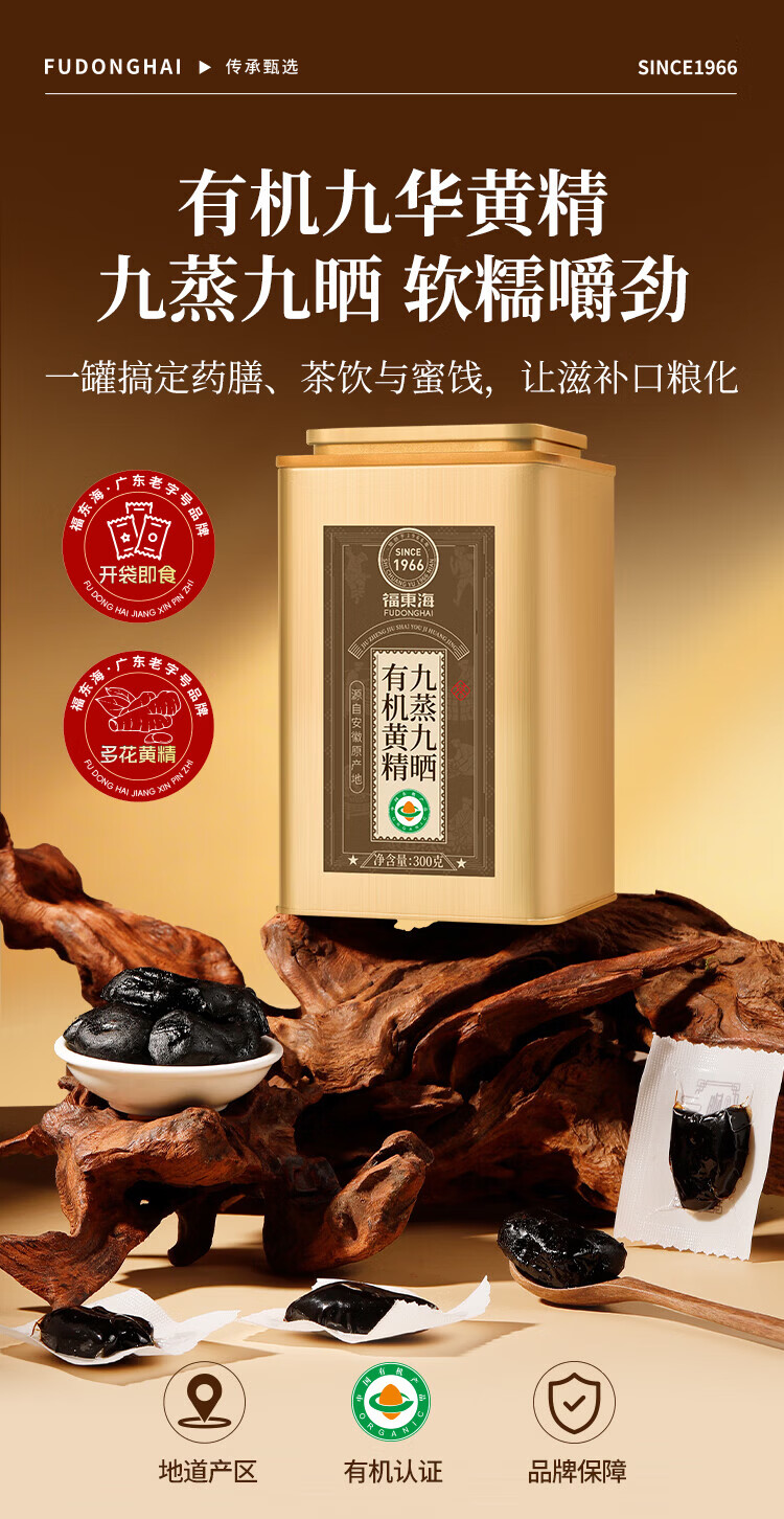 福东海九蒸九晒九制有机黄精300克 过年货礼盒【10A华山老龄品质】即食