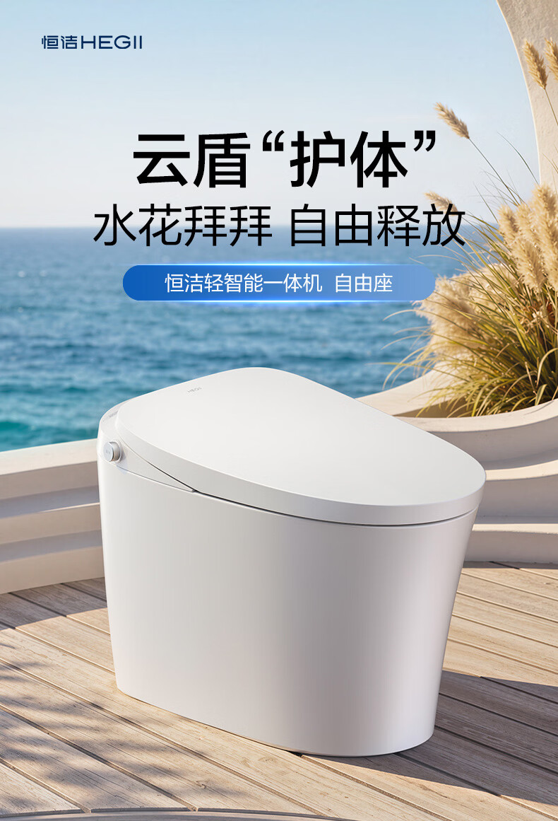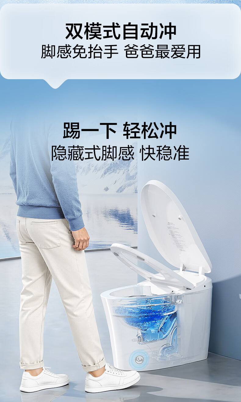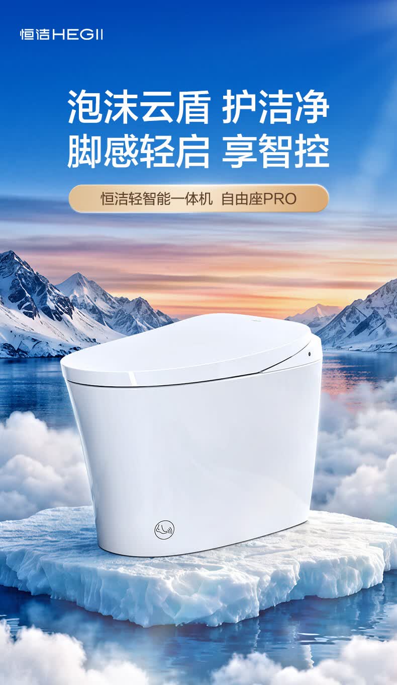恒洁(HEGII)轻智能马桶家用卫生间抗菌泡沫盾带水箱无水压限制虹吸式坐便器 【重磅新品x自由座Pro】脚感翻盖翻圈 400坑距 (预留390mm及以上)