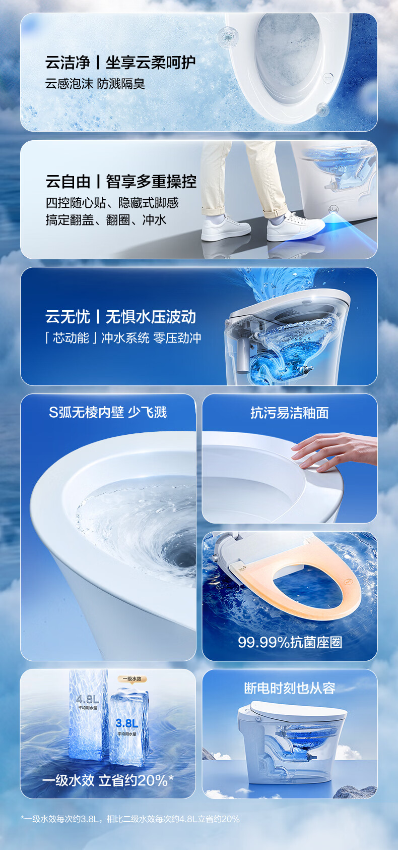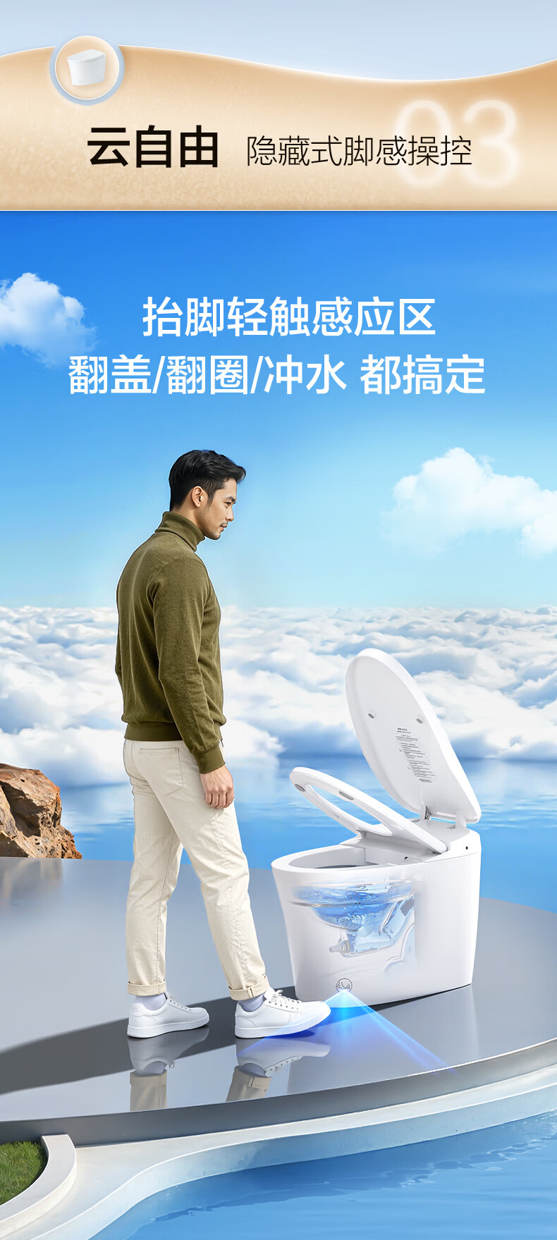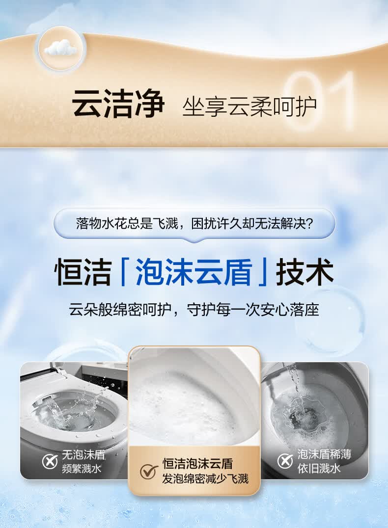 恒洁(HEGII)轻智能马桶家用卫生间抗菌泡沫盾带水箱无水压限制虹吸式坐便器 【重磅新品x自由座Pro】脚感翻盖翻圈 400坑距 (预留390mm及以上)