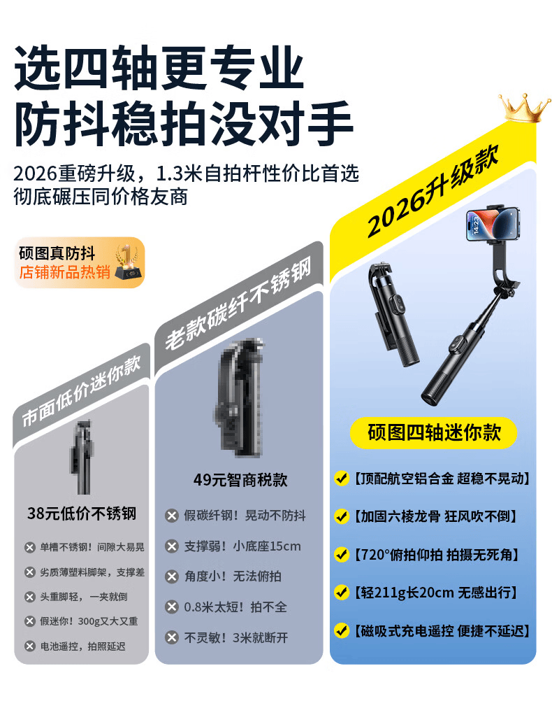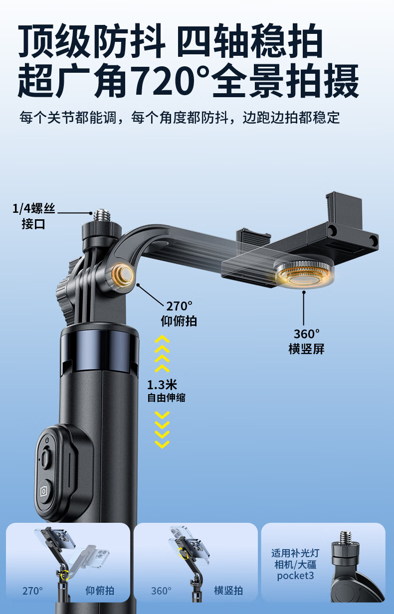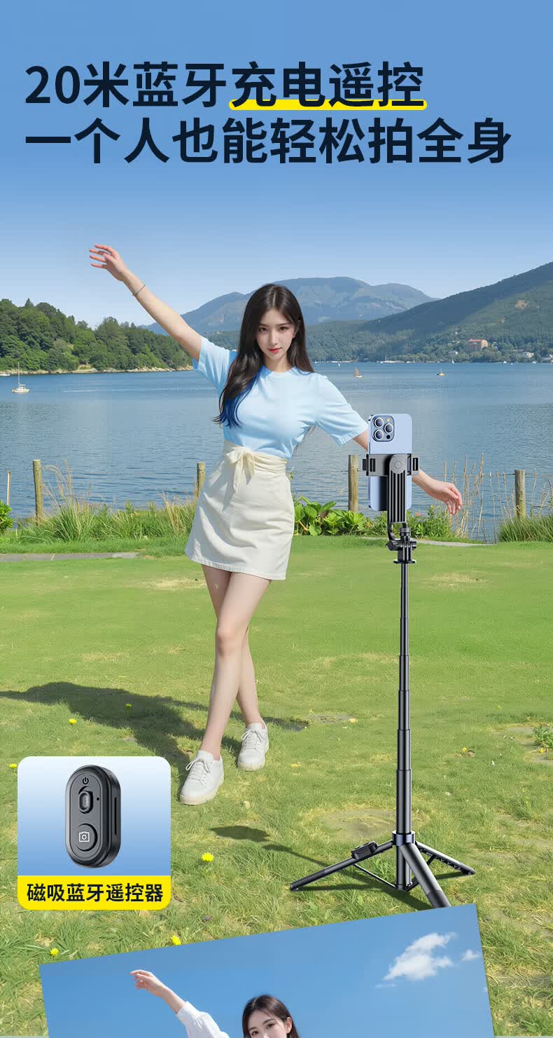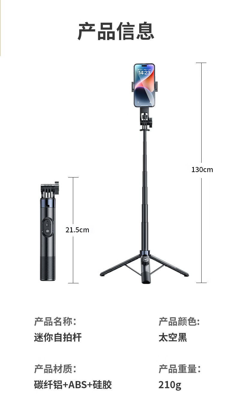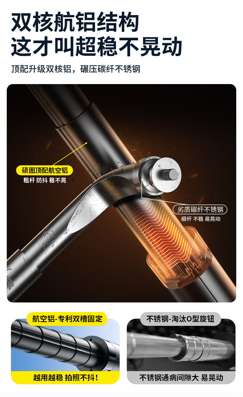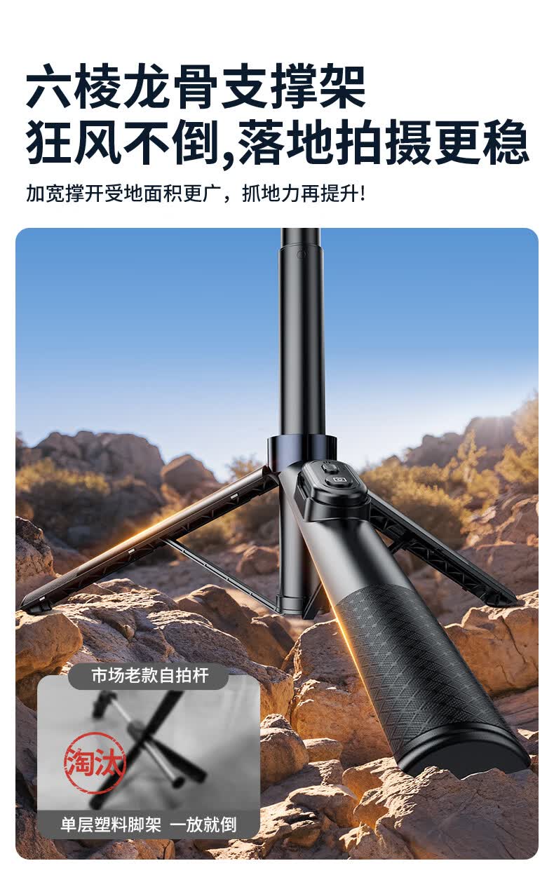 硕图自拍杆三脚架旅行小巧便携式旅游手机支架落地手持迷你防抖伸缩自拍神器360度旋转多功能直播拍摄