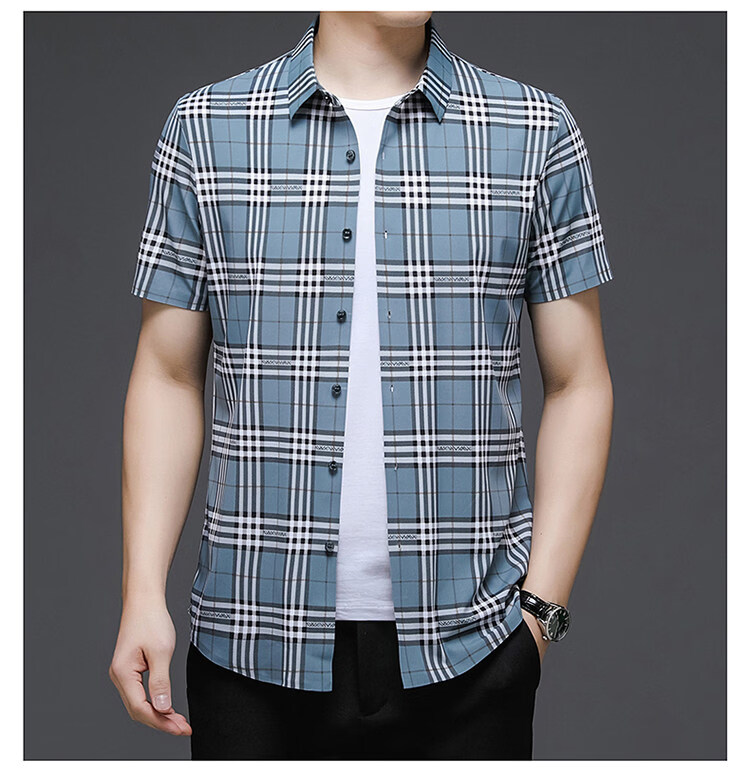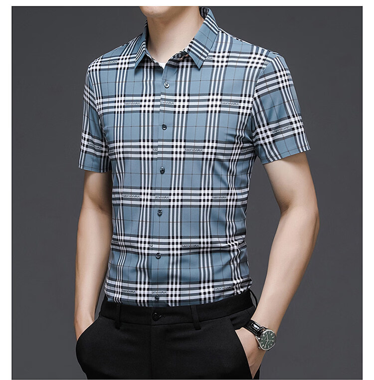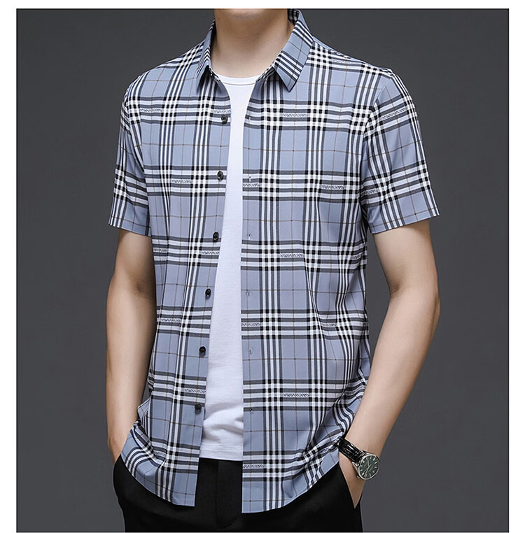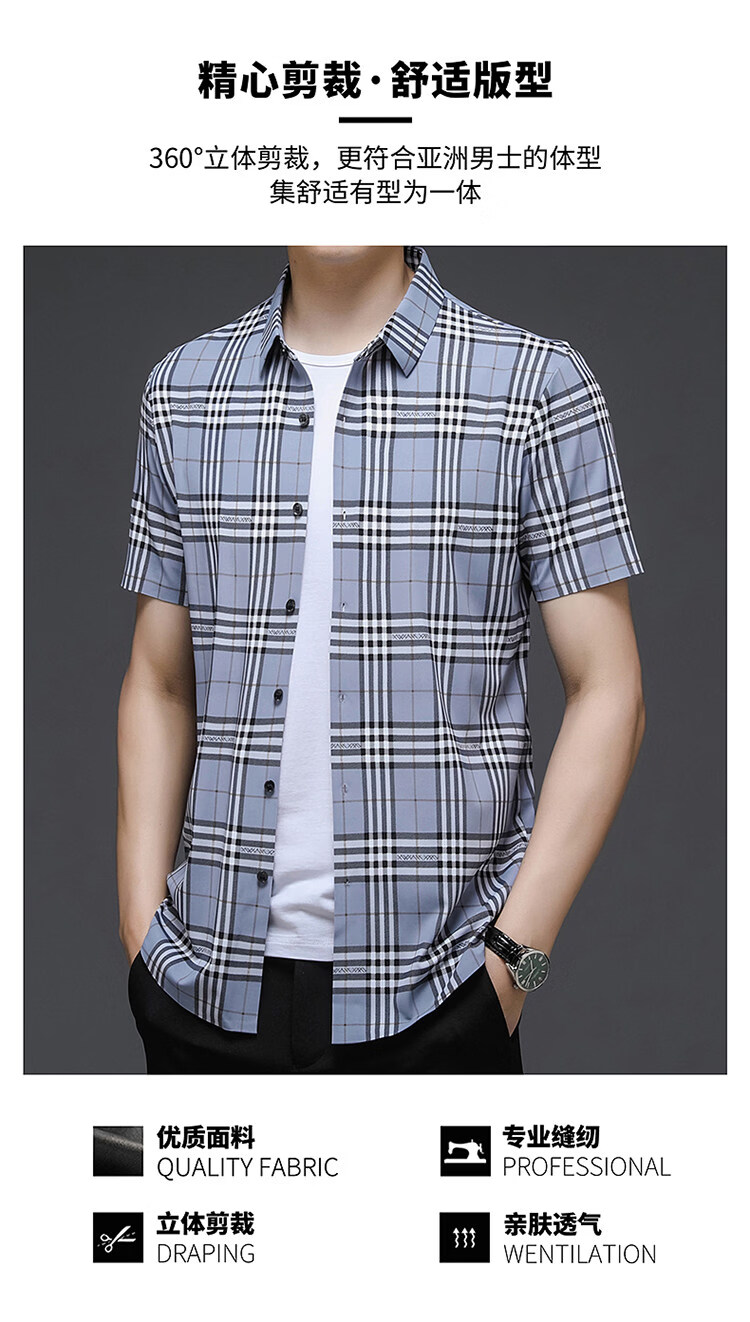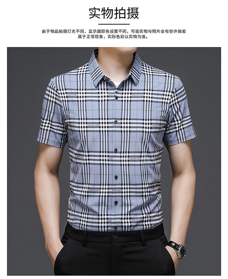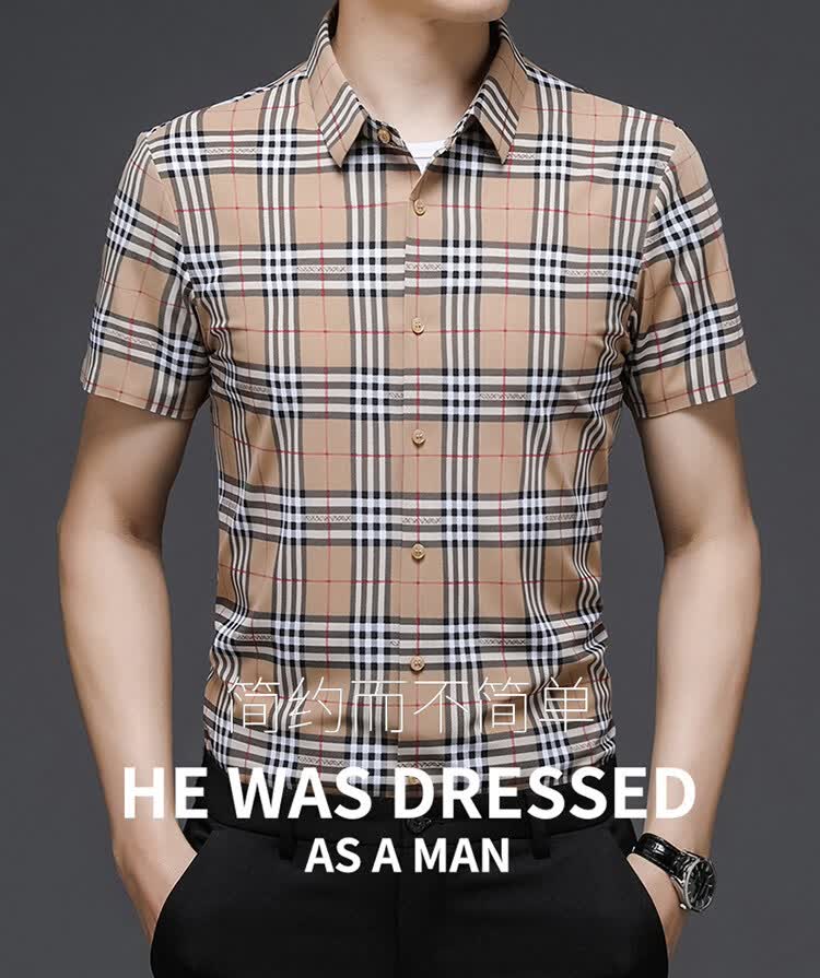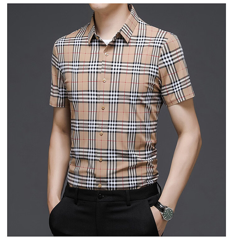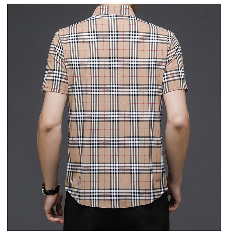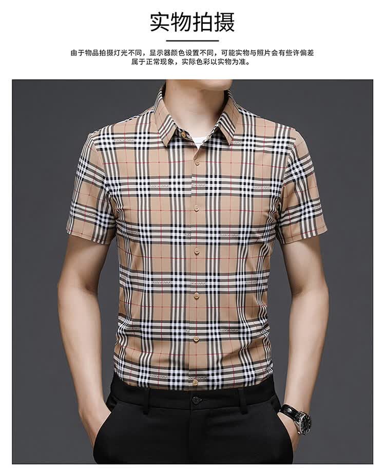B PRORSUM巴宝莉新款夏季伦巴彩虹小马短袖衬衫男士格子免熨烫冰 丝感刺绣 十大奢侈品男装卡其色 M 165_