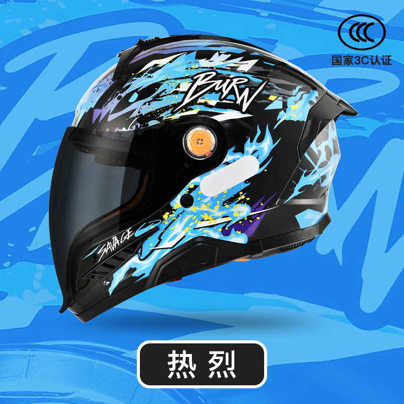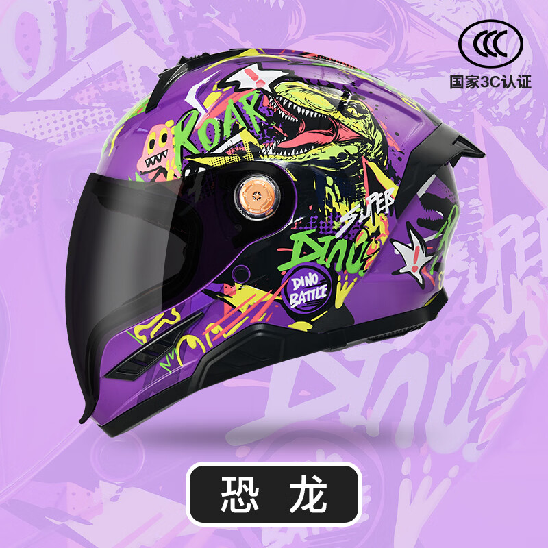 NBTK3C认证儿童头盔喝水头盔大镜片机车全盔摩托车鬼面盔亲子盔 赛车配透明+黑茶镜片 M(50CM-52CM)