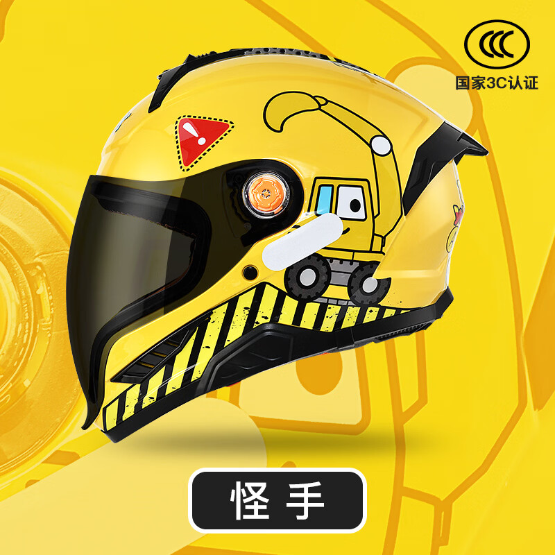 绿源新款电动车3C儿童头盔可爱卡通萌趣3-12岁宝宝男孩女孩安全头盔 小恐龙-卡其色-【短透镜】 【不带护耳】