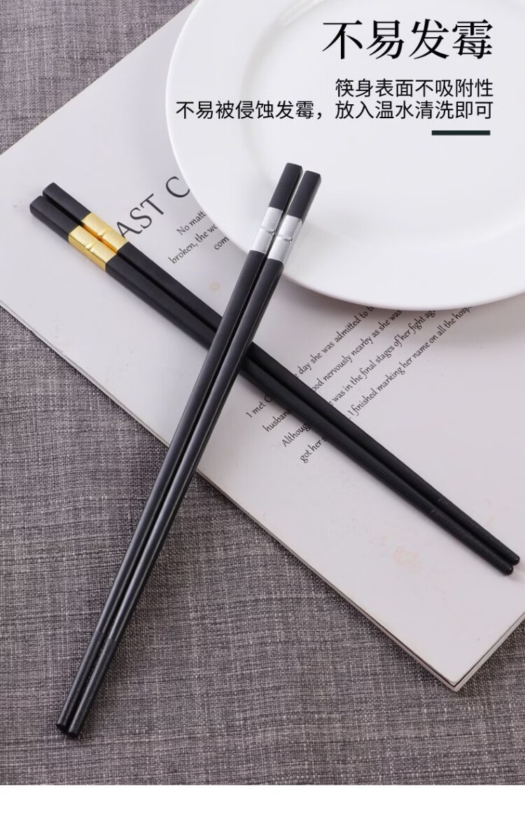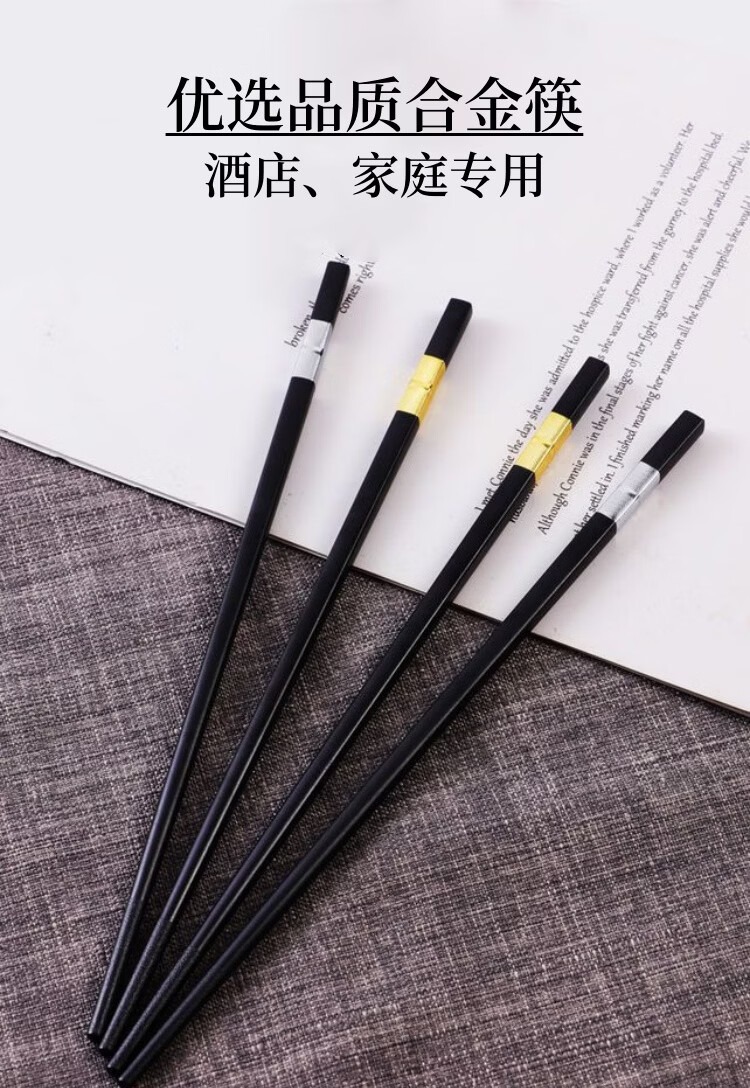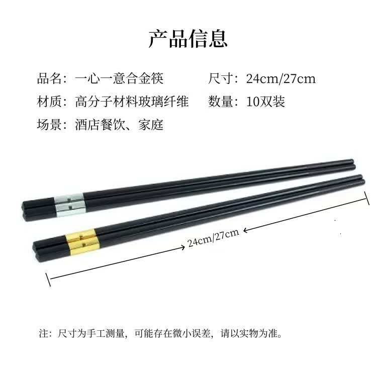 高档抗菌防霉合金筷酒店商用家用防滑耐高温新款轻奢筷子食品级 27cm金一心一意【10双装】酒店甄选