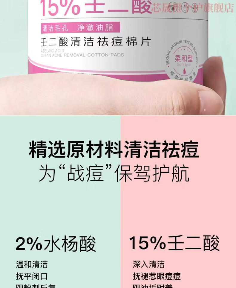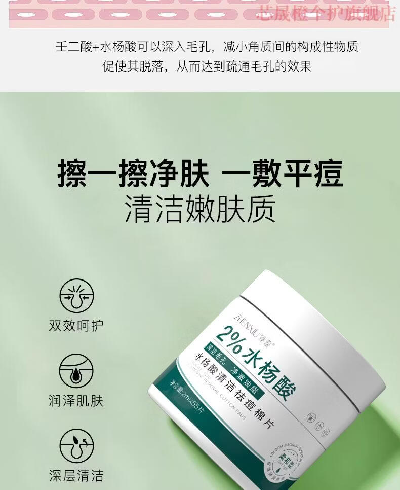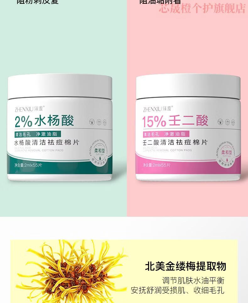 思亚希丽初净水杨酸棉片洁净控油清洁毛孔去黑头闭口湿敷补水保湿男女用 5瓶 囤货装【275片】 官方直售