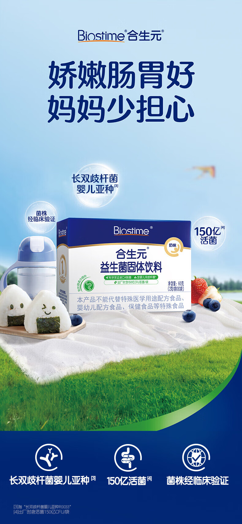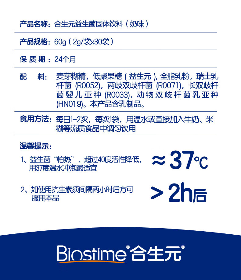 合生元(BIOSTIME)益生菌婴幼儿儿童 奶味益生元双歧杆菌百亿活菌肠胃调理 【肚肚舒适】益生菌奶味 30袋*1盒