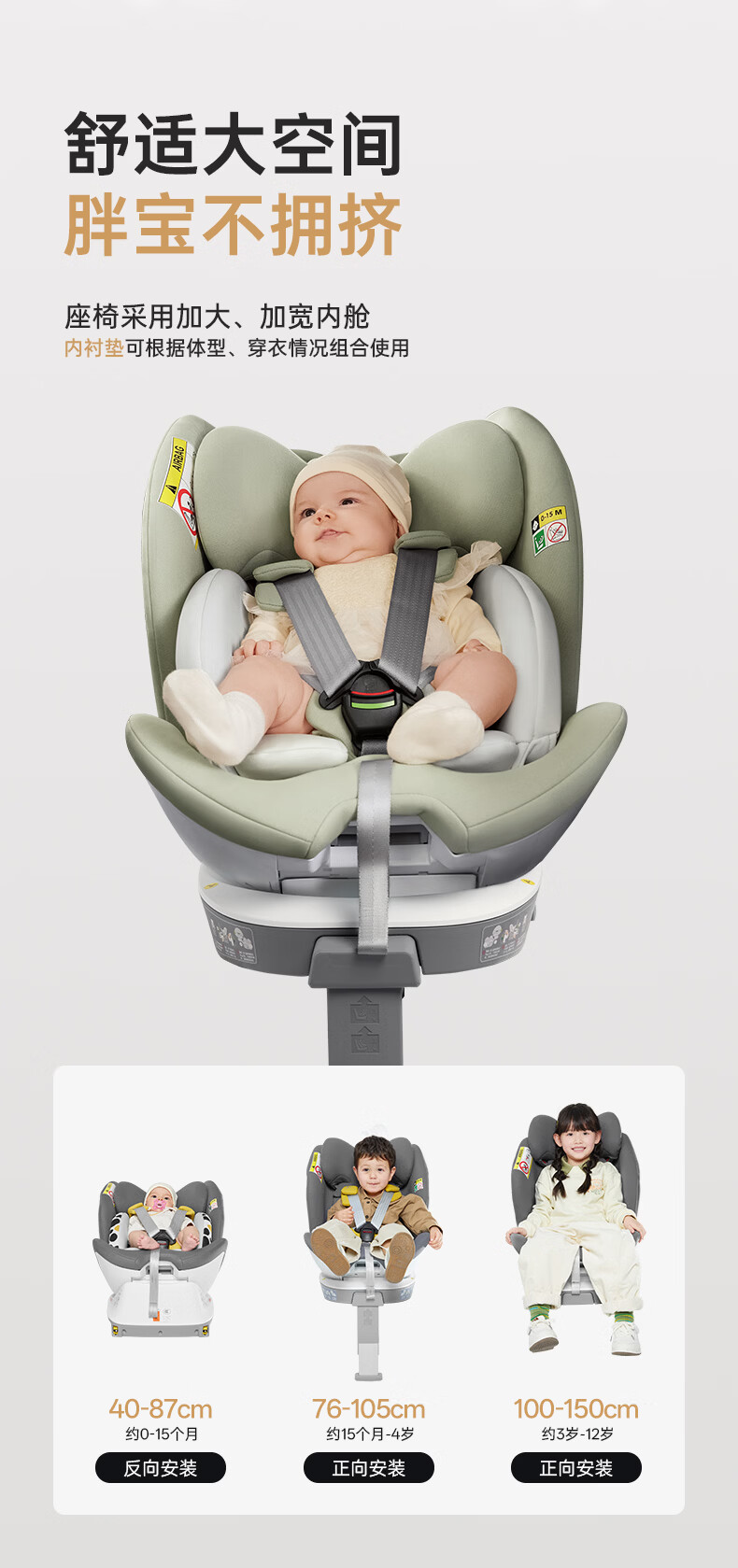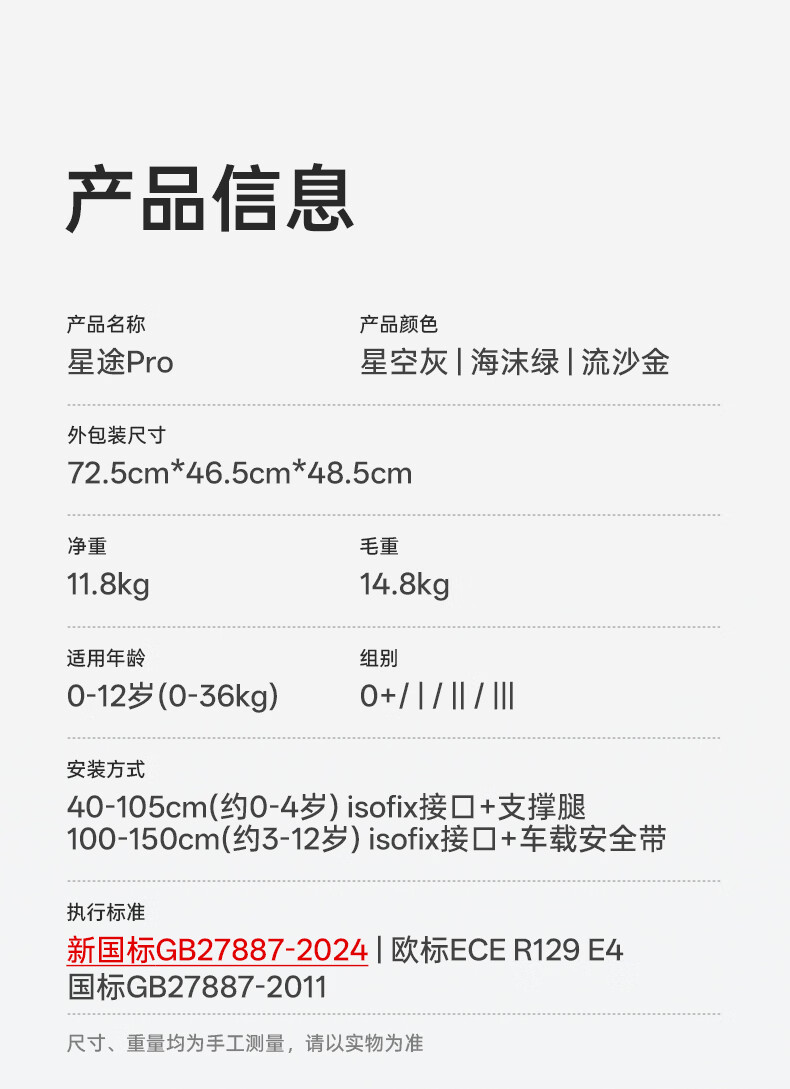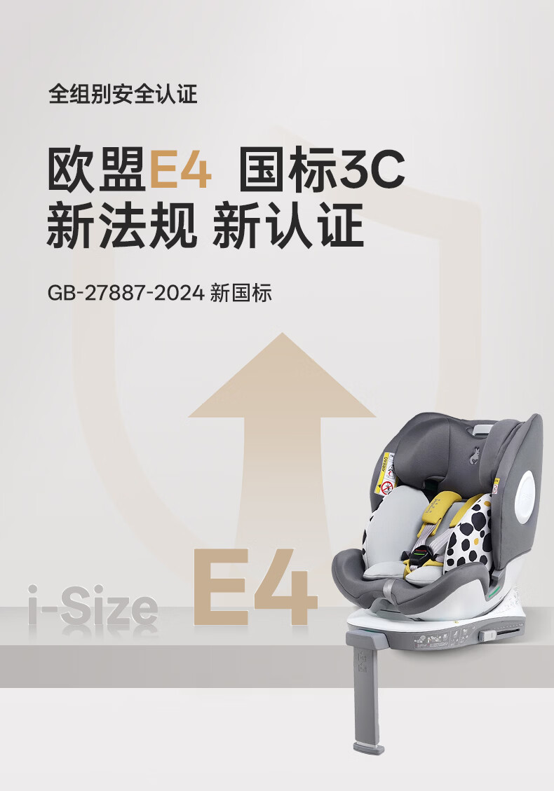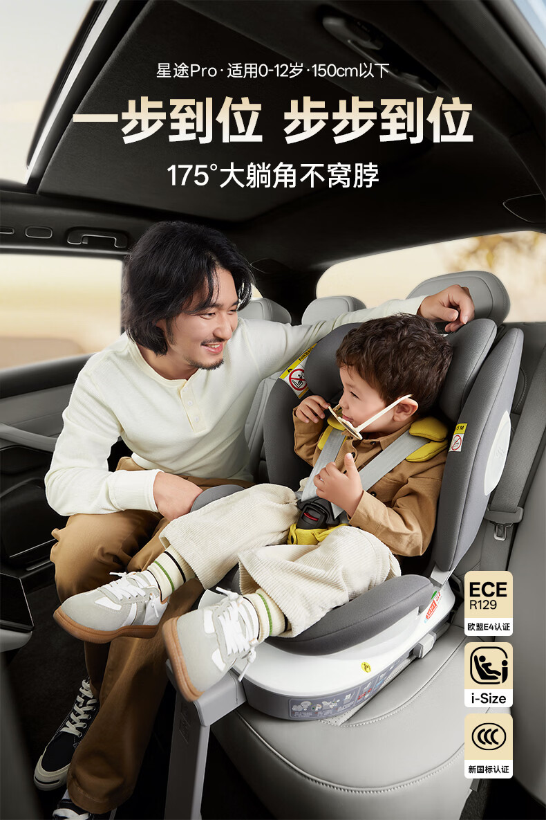 袋鼠爸爸(EURO KIDS)安全座椅婴儿0-12岁360度旋转儿童车载座椅新国标星途pro星空灰