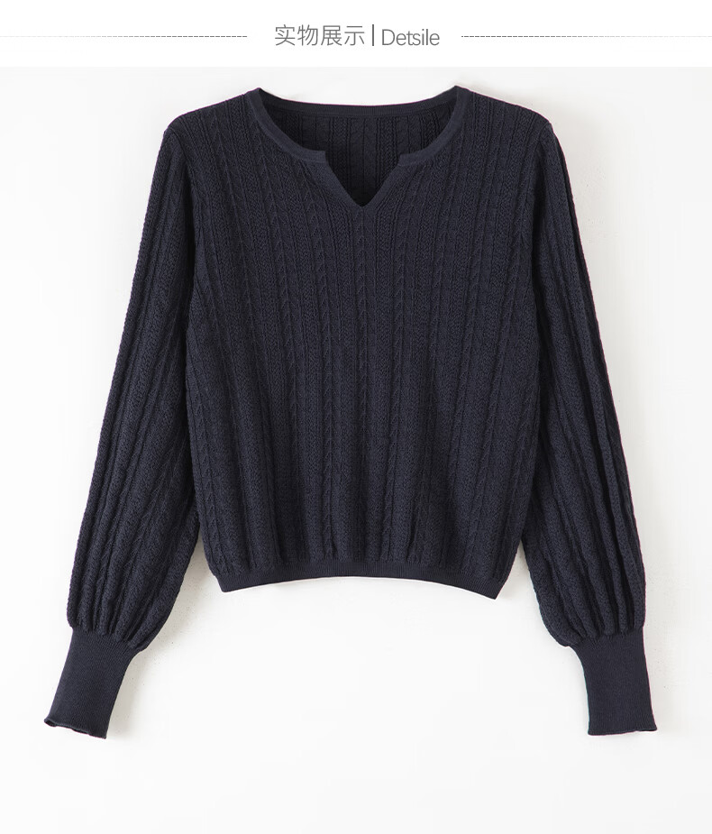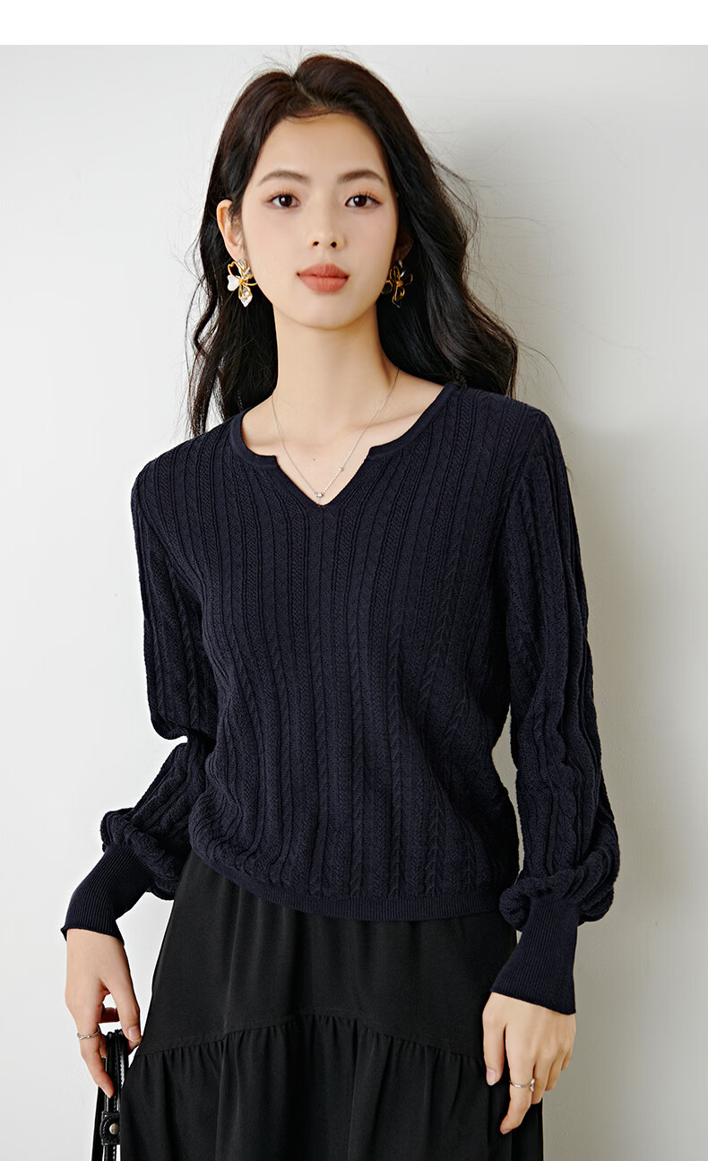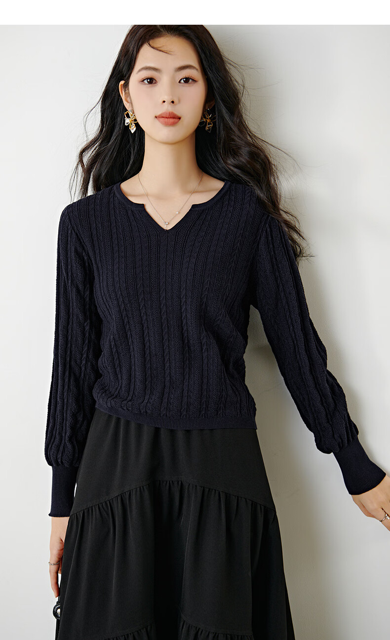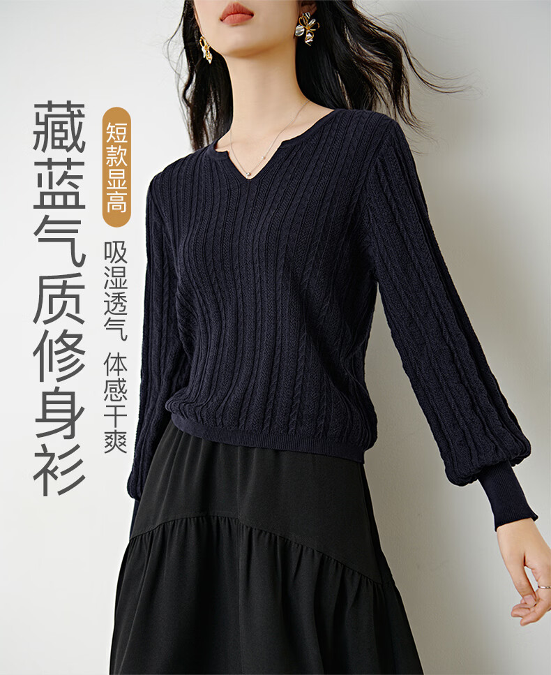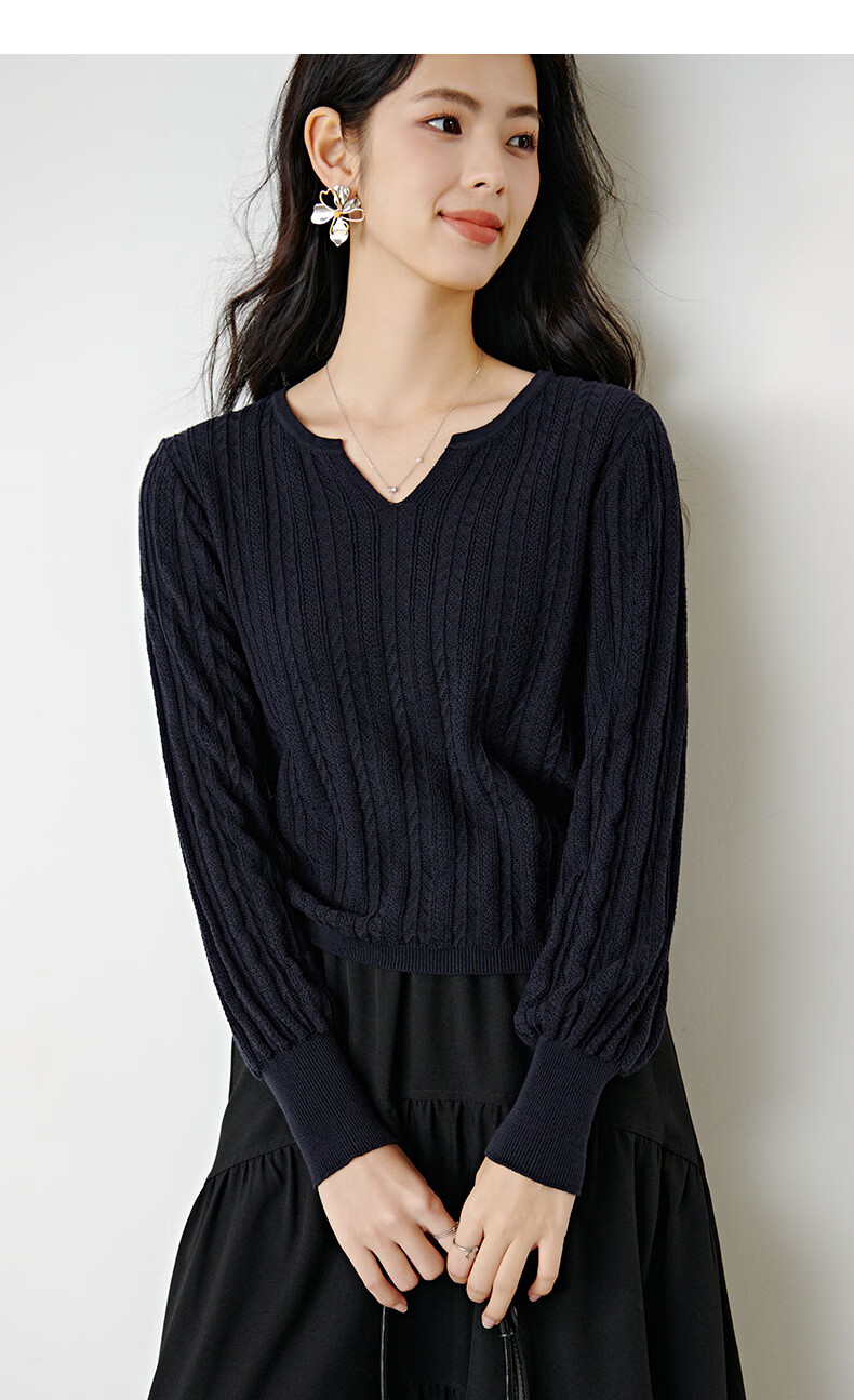 晚白【新品】2026年春款时尚绞花V领棉质毛衣莱赛尔亲肤舒适针织衫女 藏蓝色 L