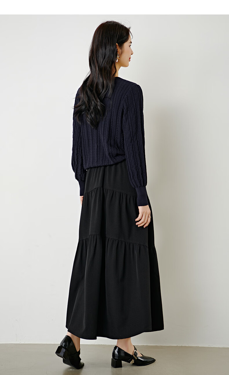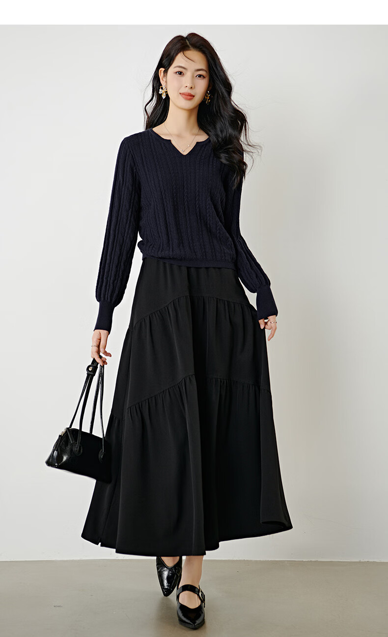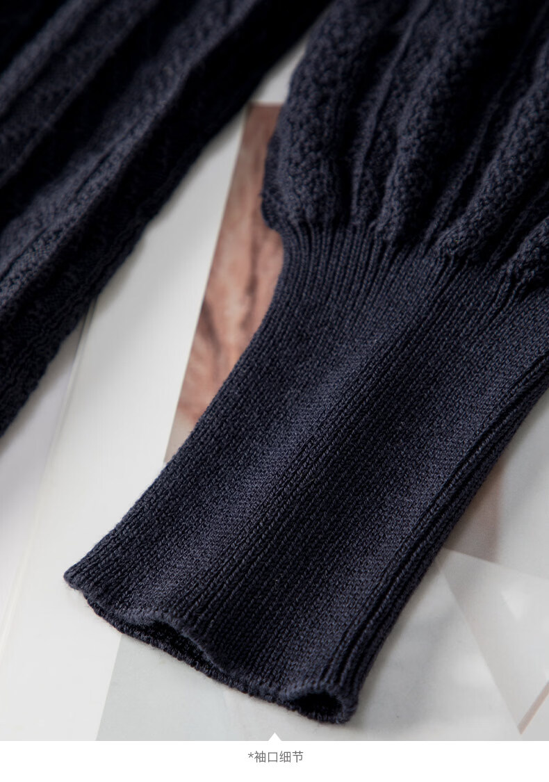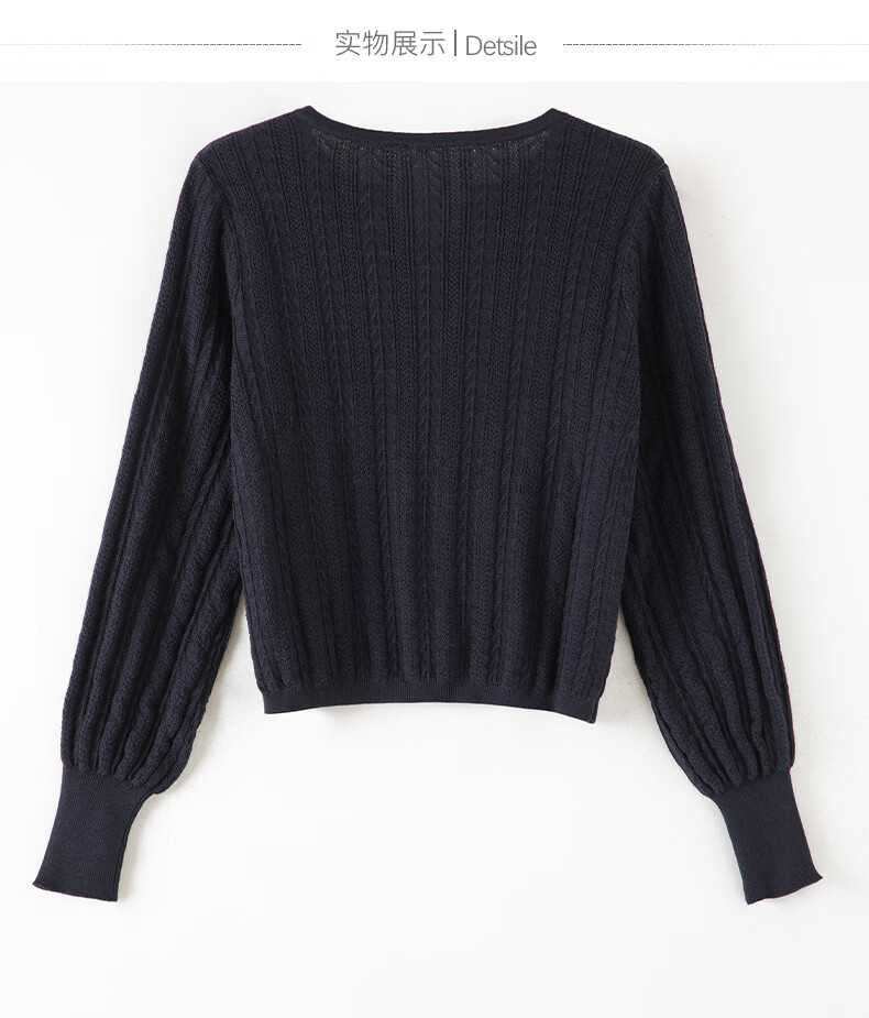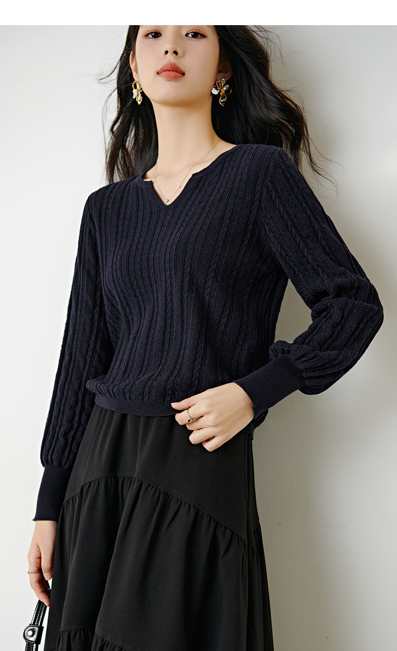 晚白【新品】2026年春款时尚绞花V领棉质毛衣莱赛尔亲肤舒适针织衫女 藏蓝色 L