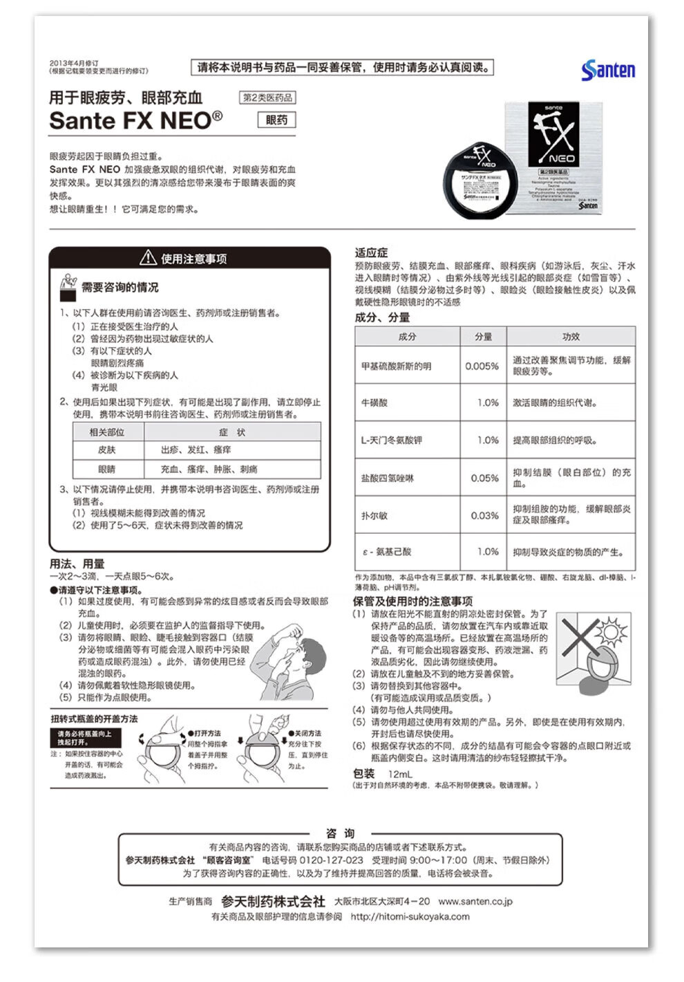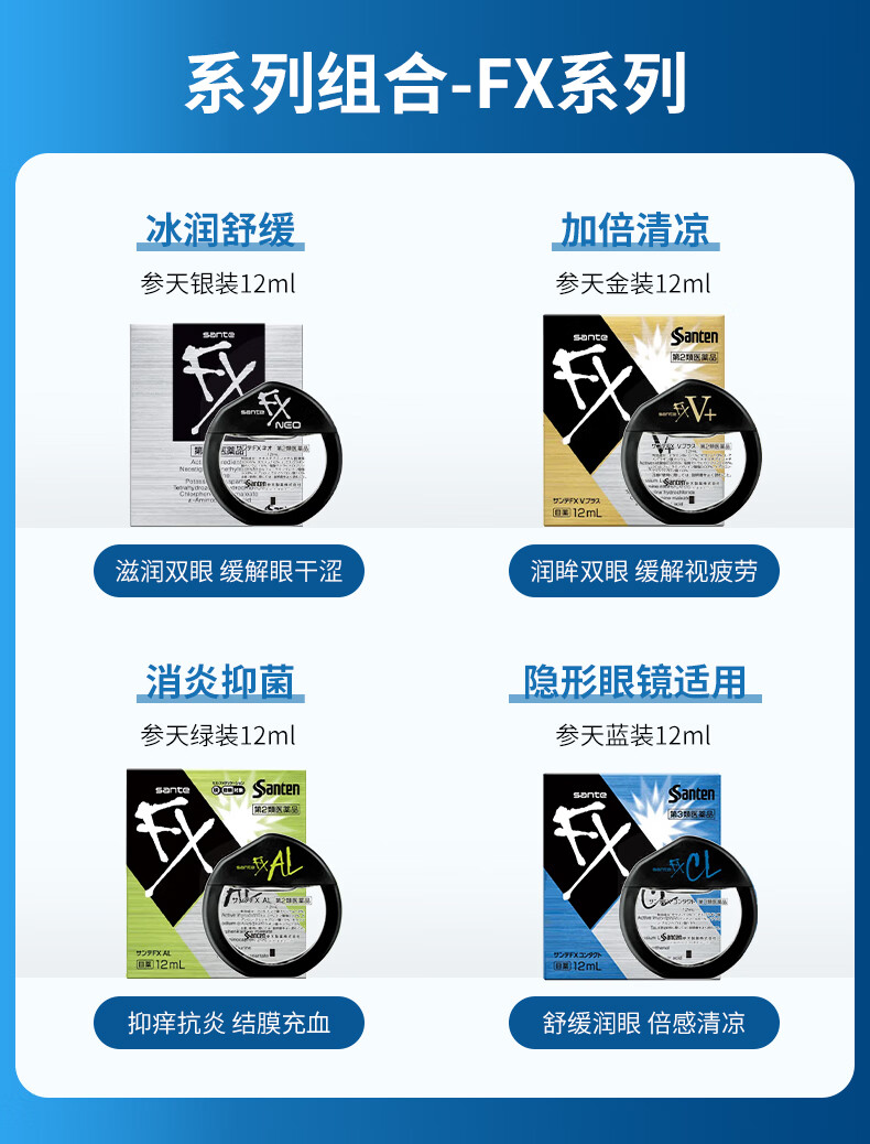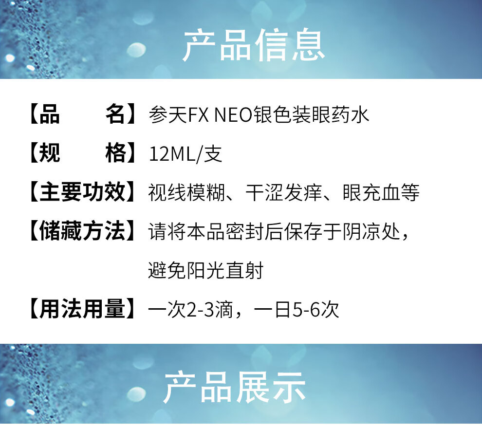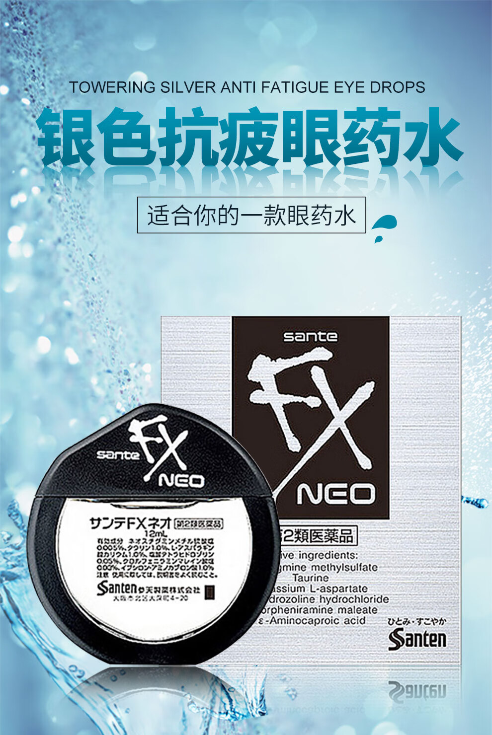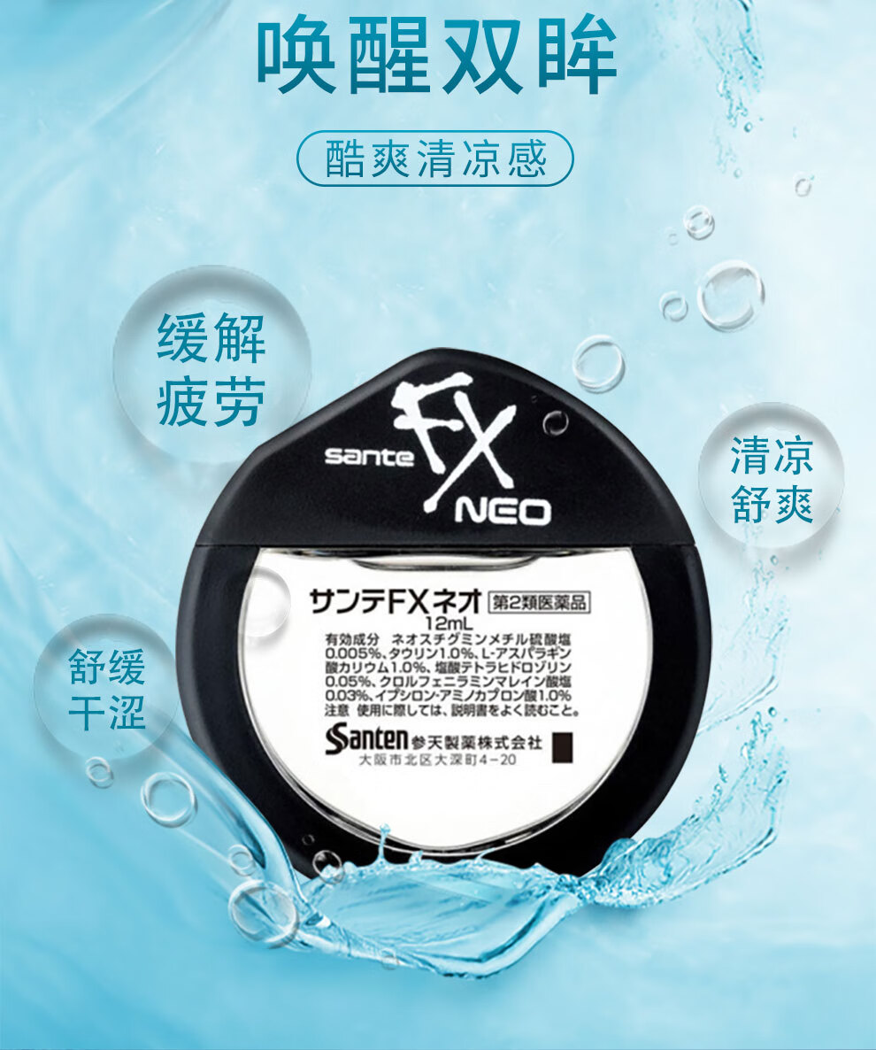 【日本进口3瓶装】参天FX neo银色眼药水12ml 缓解眼疲劳用眼过度眼干眼涩视力模糊滋润双眼滴眼液