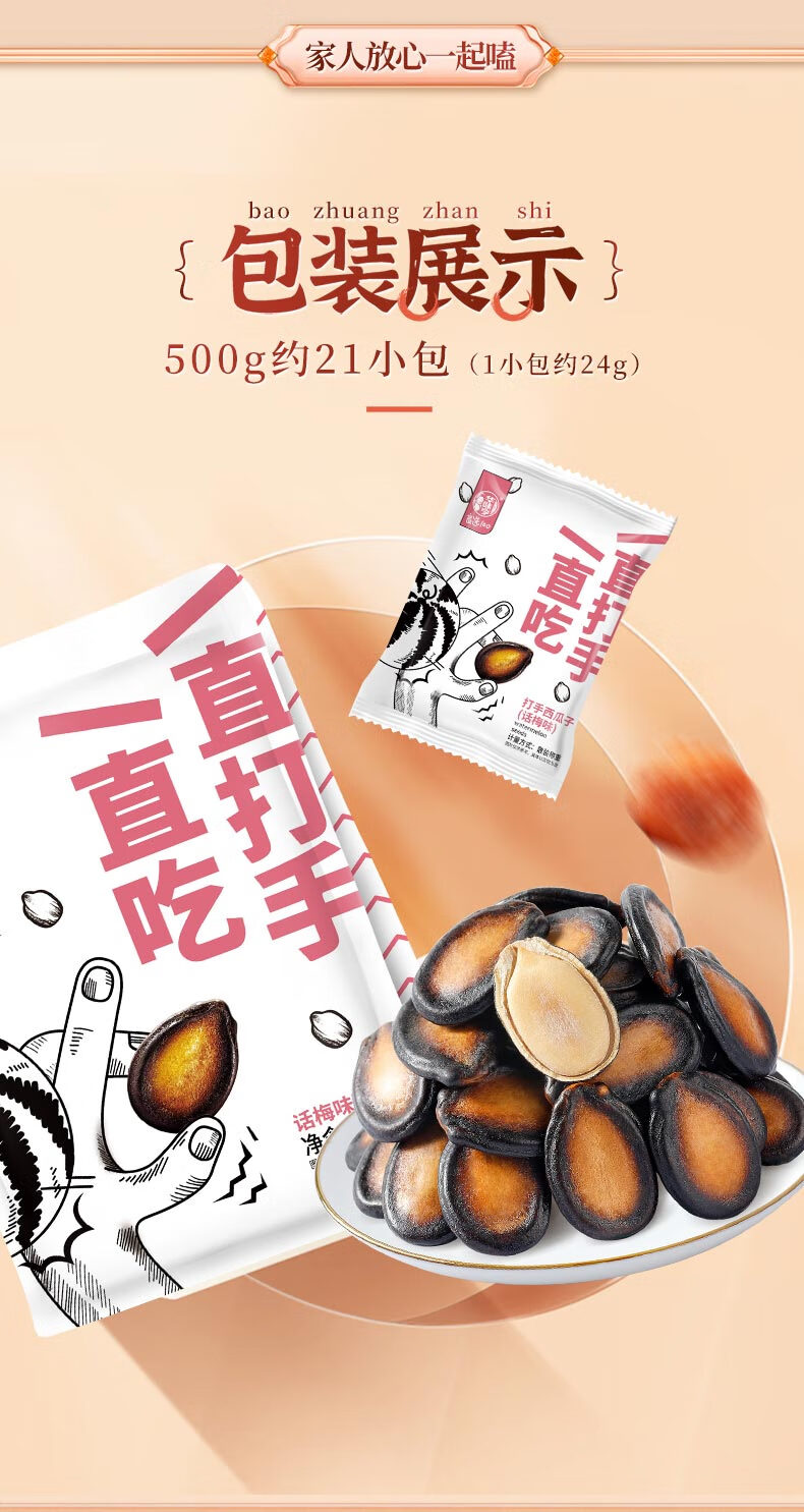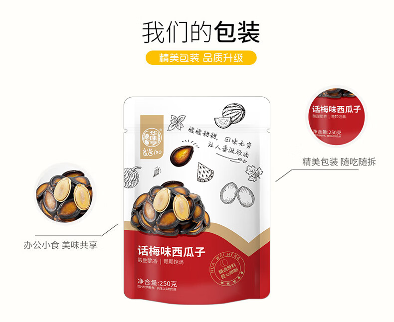 华味亨 话梅味西瓜子袋装甘草味独立小包装会客休闲零食坚果炒货 250g话梅味瓜子*1袋